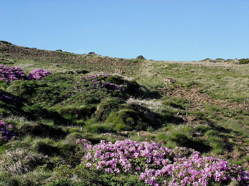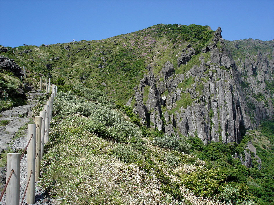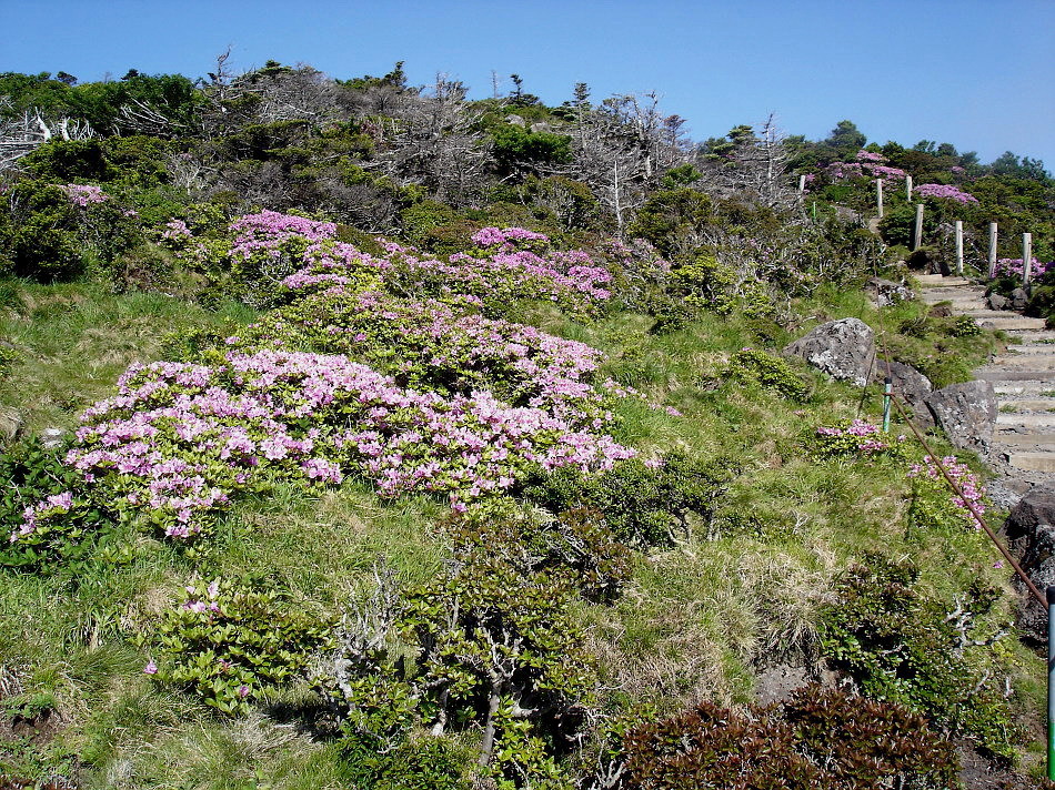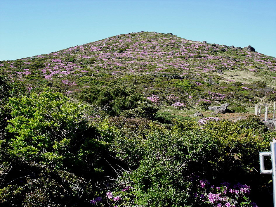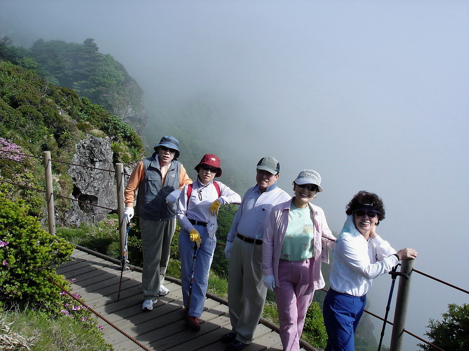 해마다 6월 6일 경에 윗세오름의 철쭉이 장관을 이룬다는 말을 듣고 예정을 바꿔 핀크스 cc에서 아침 일찍 라운드하고 오후에 출발하여 영실 휴계소로 가는데 전국에서 인파가 몰려들어 오전에 왔더라면 휴계소 훨씬 전에 차량을 통제하여 그곳에서부터 산행을 했더라면 정말 힘들었을듯...