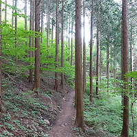 피안교에서 전나무숲이 끝나고 단풍숲으로 바뀐다.