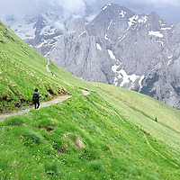 오전에 날씨가 청명하여 Campitello의 콜 로델라(2485m)에 잠깐 올라가서 조망하기로 했다. 사소 룽고(3181m)와 사소 피아토(2950m)를 조망하는 최적의 장소이며 또한 하이킹 코스로는 600m 아래 위치한 아우쿠스트 산장(Rifugio Friedrich August)을 경유하여 산드로 페르티니 산장(Rifugio Sandro Pertini)까지 가는 하이킹 코스