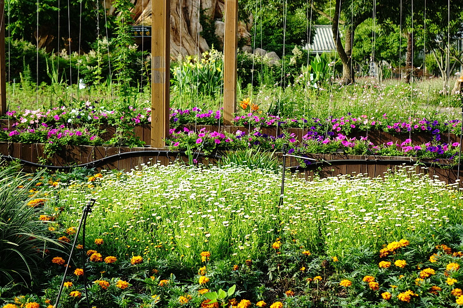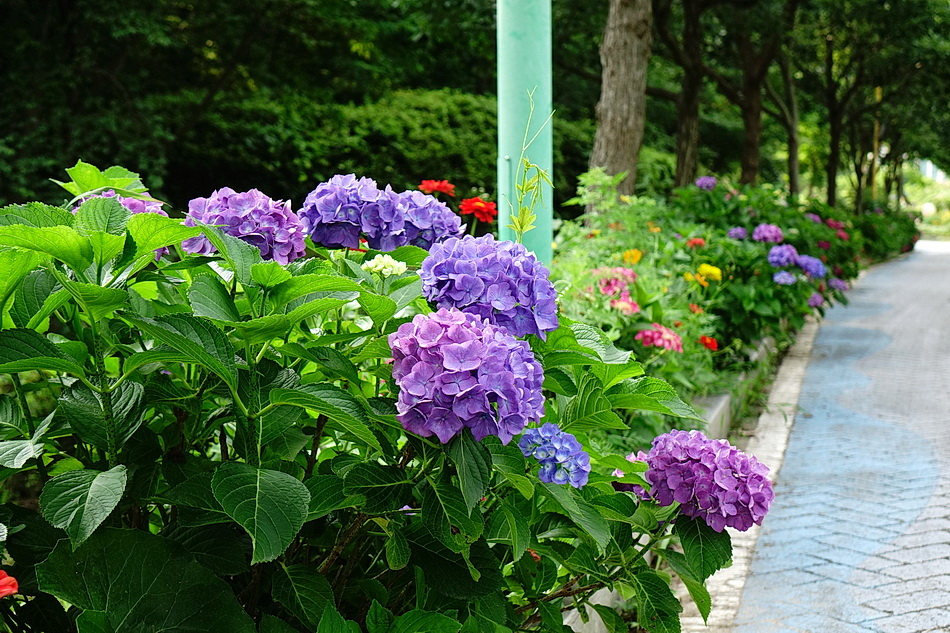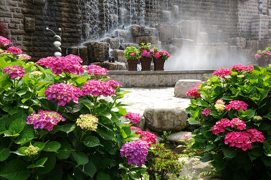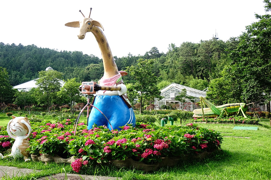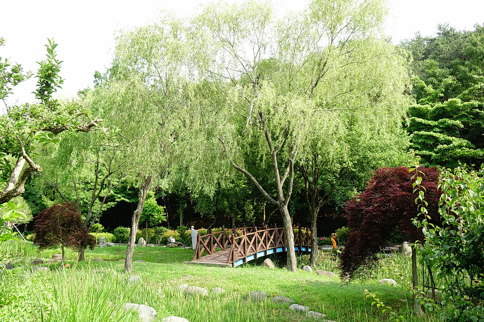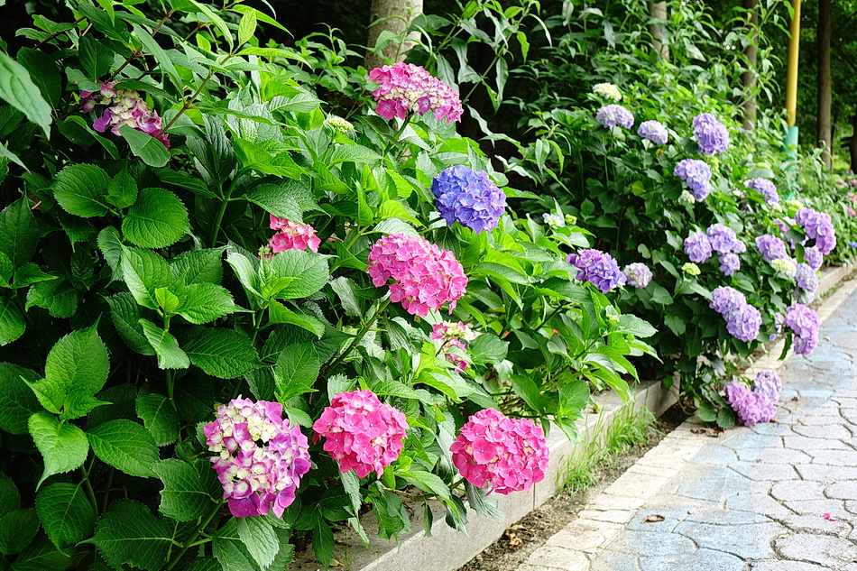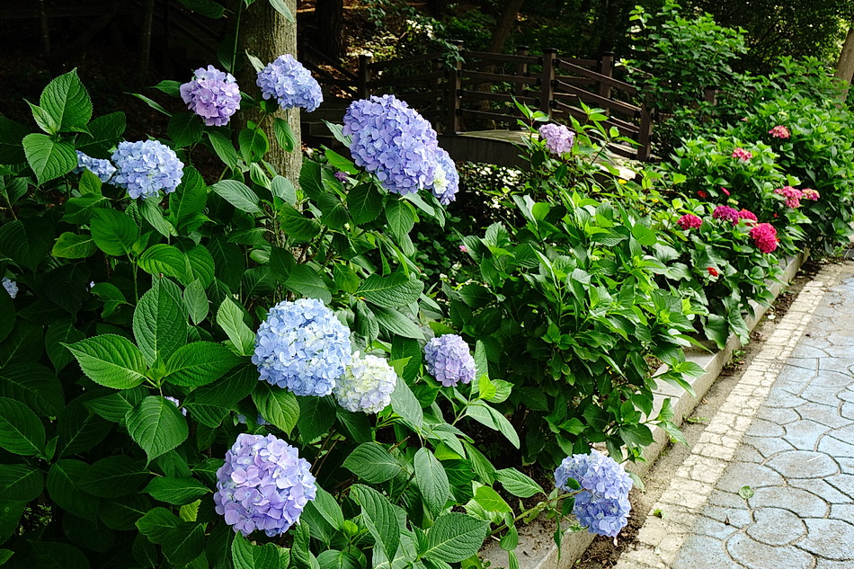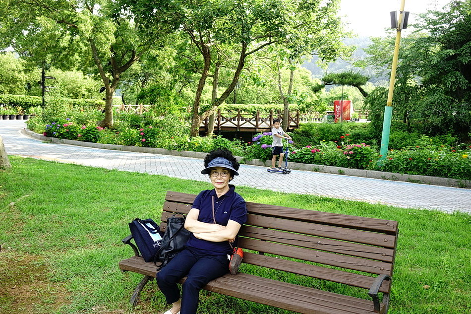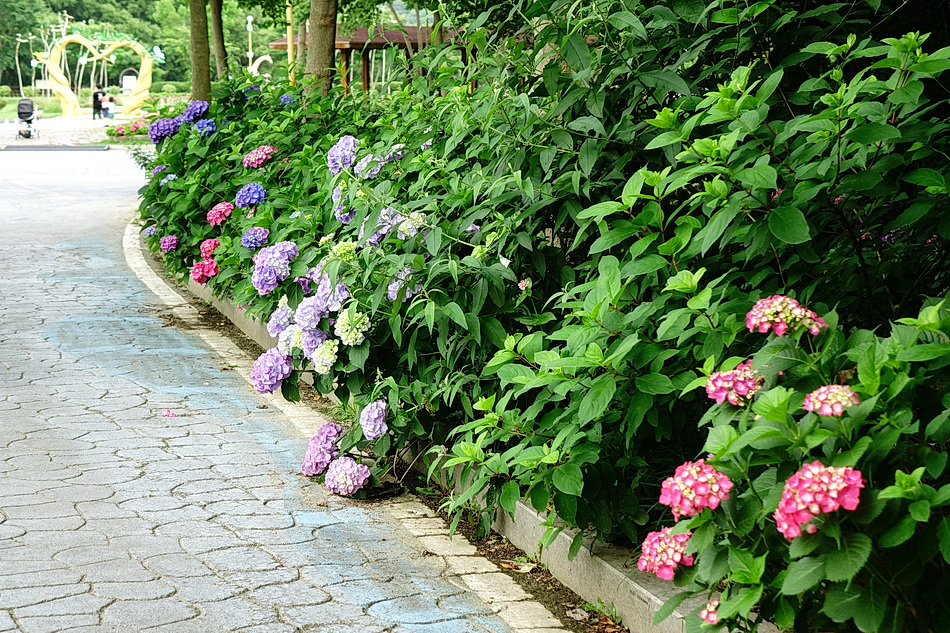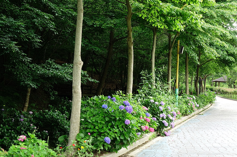 수국이 만개하는 철이라 인터넷으로 가까운 곳을 검색해 보니 해남의 포레스트 수목원과 함평의 자연생태공원의 수국이 유명하다고 해서 토요일 오후에 먼저 가까운 함평 자연생태공원의 수국을 보러 가 보았다. 처음에는 한국 난공원으로 조성되었다가 추후에 나비, 곤충, 수생식물, 물고기 등을 추가하여 사계절 생태체험이 가능한 자연생태공원으로 확대된 곳이라 한다. 광활한 부지에 조성되어 있어서 오늘은 수국이 만개한 우측 산책로를 따라가며 수국 위주로 관람하기로 했다. 아이들을 동반한 가족들이 쉴 수 있는 잔디밭. 벤치, 식사가 가능한 테이블, 놀이 시설 등이 구비된 곳이었다.
