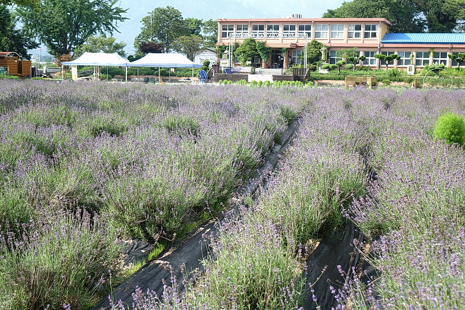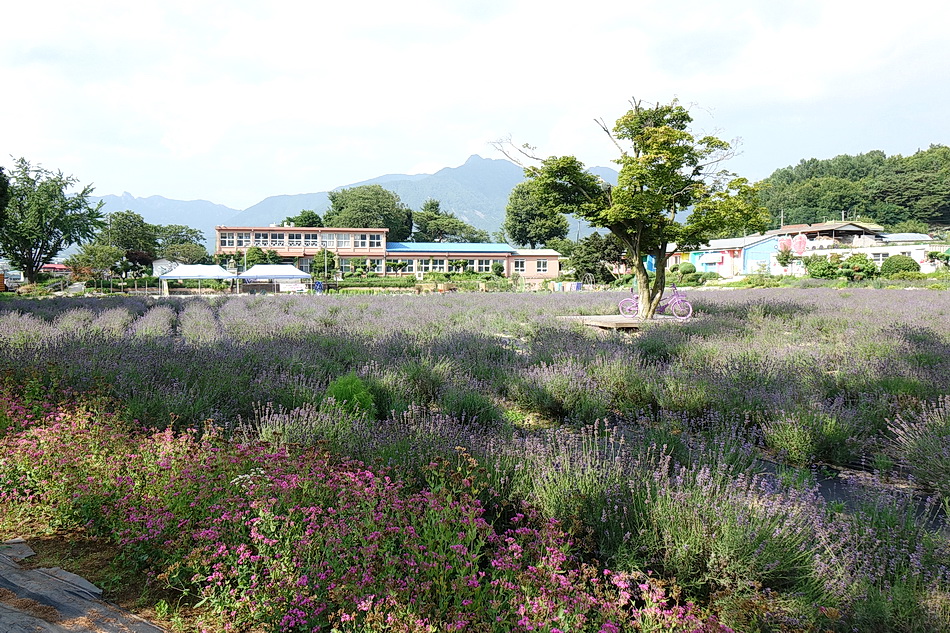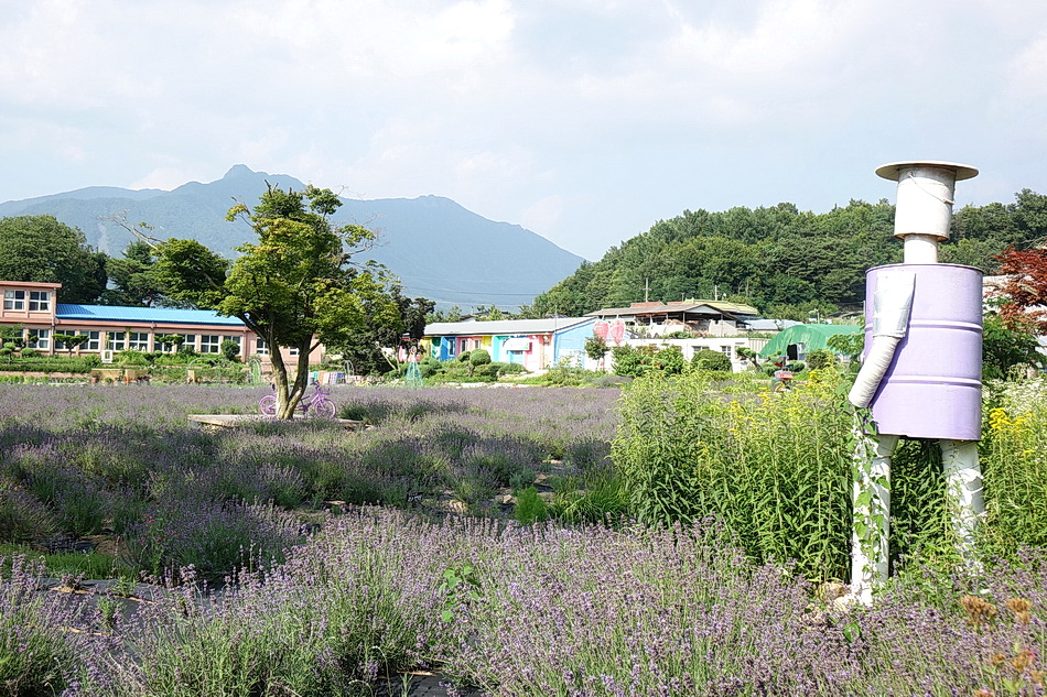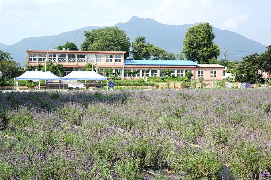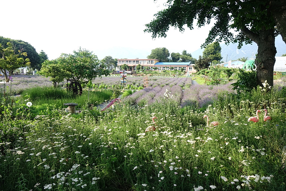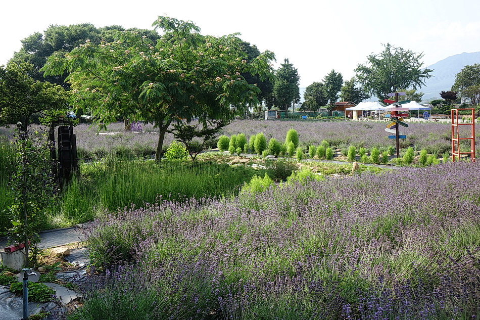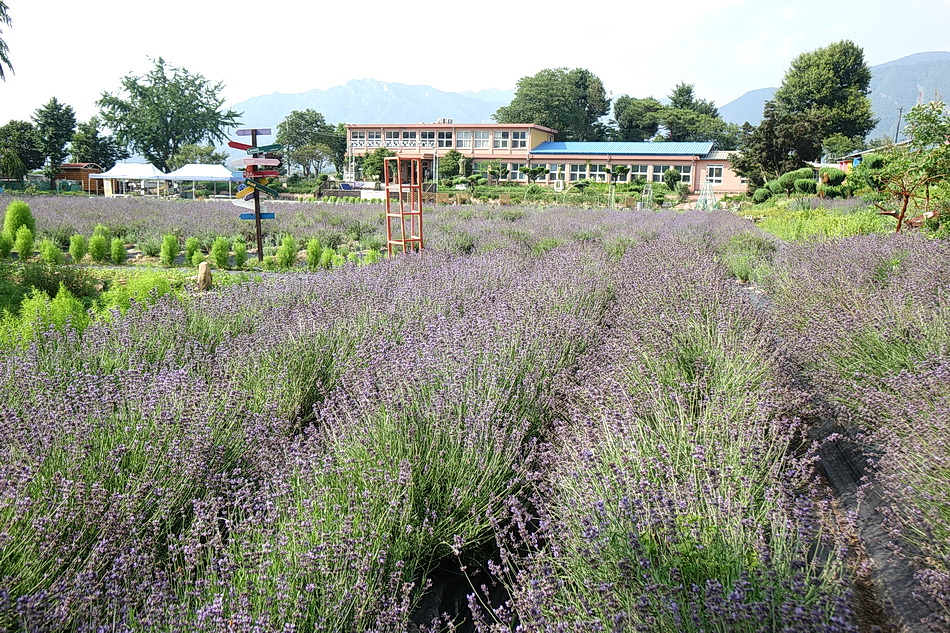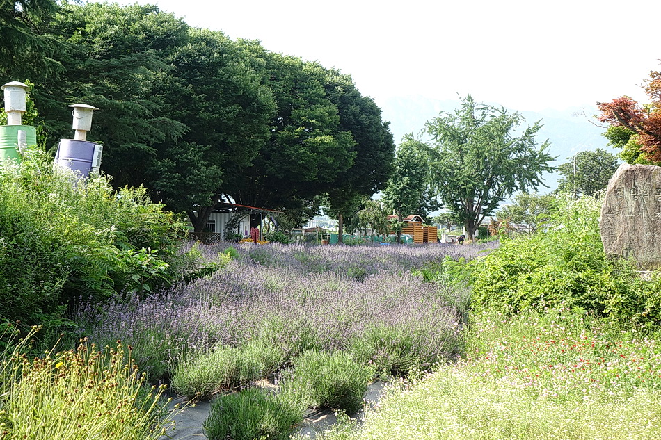만화방초를 구경 후에 어제 정읍의 라벤더에서 보지 못한 보라색이 진한 라벤더를 보기 위해 광양의 사라실 시험재배단지에 가려고 했는데 6월 3주째부터는 라벤더를 베어버린다고 해서 포기하고 조금 멀지만 거창의 허브빌리지에 도착했다. 작은 폐교를 허브농장으로 가꾼 이곳도 모든 꽃들이 절정을 지났고 7월 1일부터는 라벤더를 베어버린다고 한다. 프렌치 라벤더가 아닌 잉글리시 라벤더라 그런지, 또는 포샵을 해서인지 생각보다 사진에서 많이보는 짙은 보라색을 볼 수가 없었다.