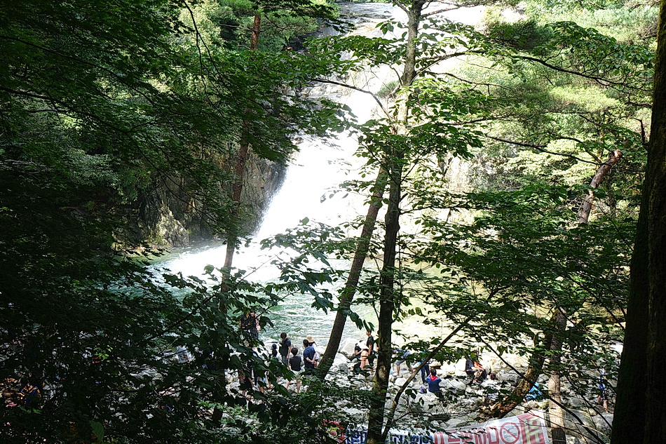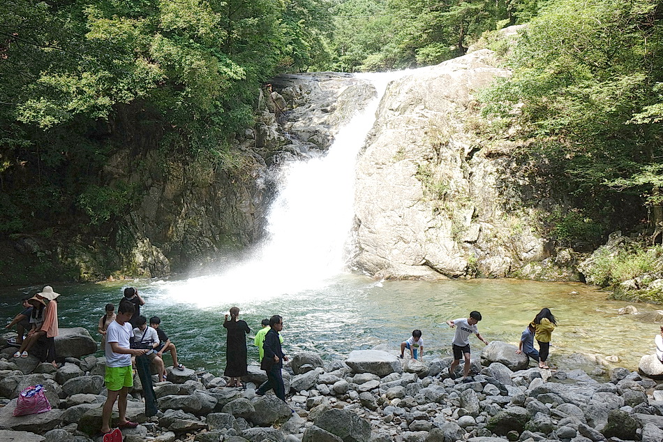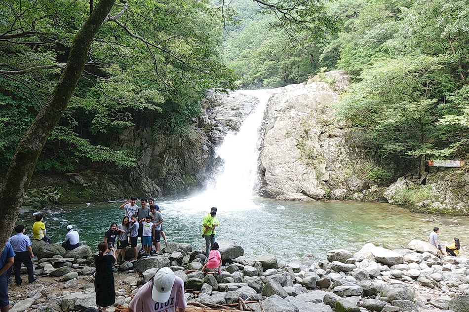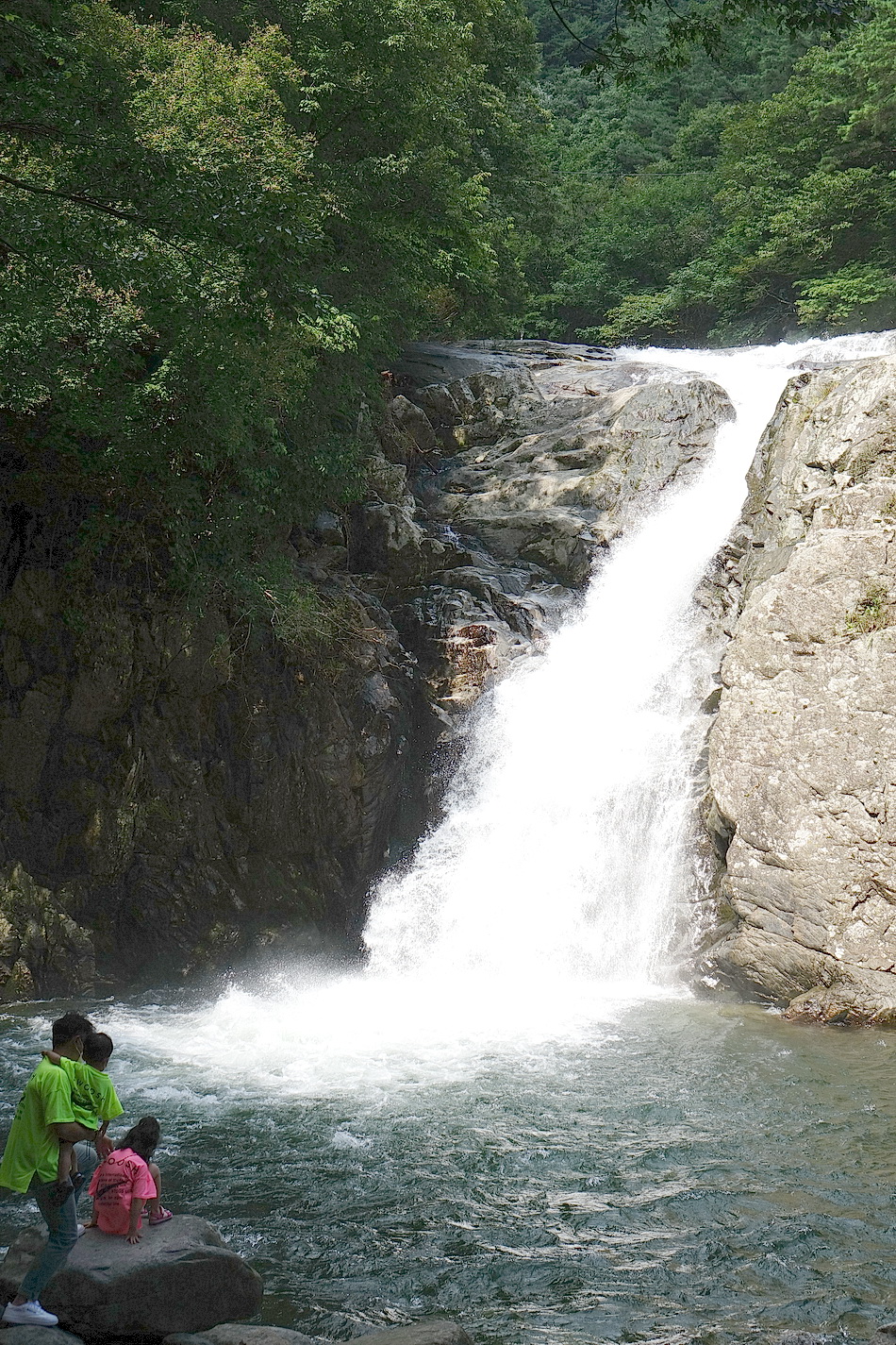 매 년 여름의 피서지는 금원산 자연휴양림의 문바위골로 가는데 그곳에 기기전에 장마철이라 함양 용추폭포의 폭포를 본 후에 가기로 하고 도착해 보니 역시나 폭포의 수량도 엄청나고 소리 또한 장쾌하였다. 그러나 금원산 자연휴양림의 문바위골에는 장마로 골짜기의 수량이 불어나서 우리 부부가 항상 가는 장소가 물에 침수되어서 다른 곳에서 간단히 쉬고 돌아왔다.