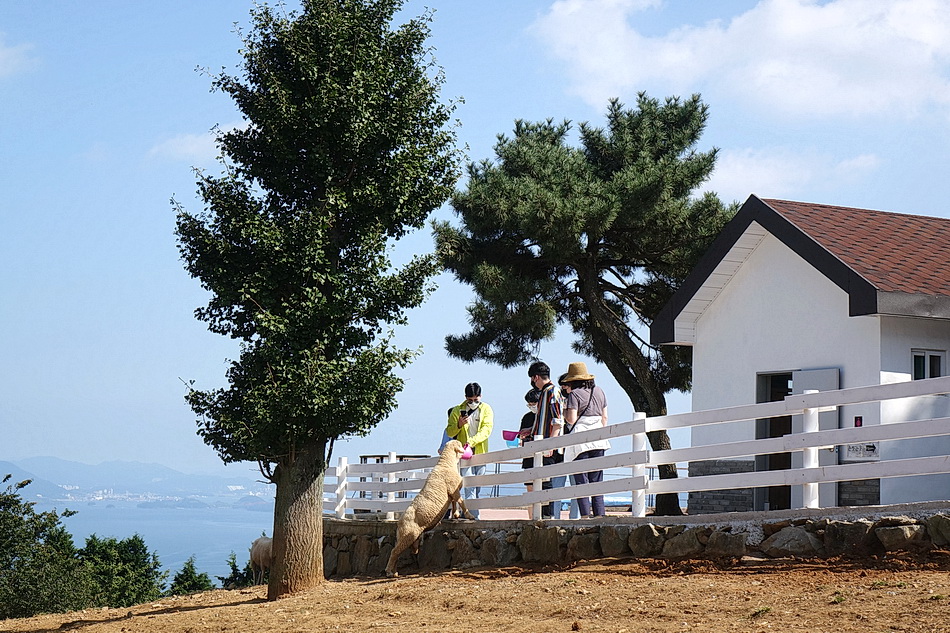 남해 드라이브는 자주 하는데 이번에는 남해의 3개의 양떼목장 중에서 가장 크고 고지에 있다는 상상양떼 목장에 가보았다. 남해바다의 조망은 좋았으나 생각보다 넓지는 않았다. 양들이 더워서 인지 먹이에는 별 관심이 없이 그늘에만 모여있었다.