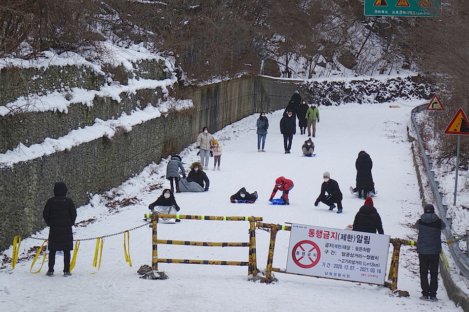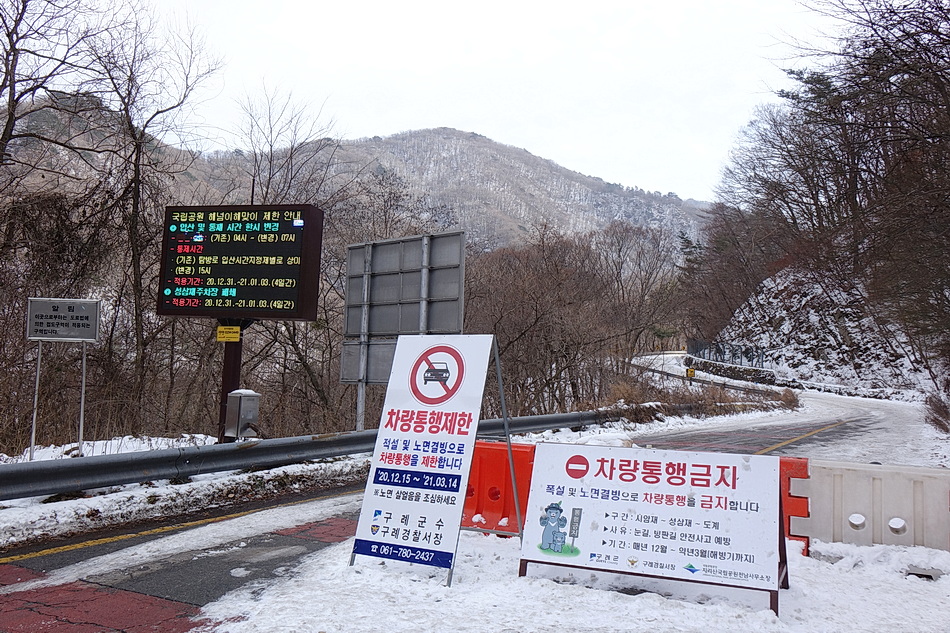 광주에 몇 년 만에 대설경보가 내려져서 모처럼 지리산의 설경을 보려고 지리산 뱀사골 계곡 방향으로 진입해 보니 의외로 눈이 많이 오지 않았는지 눈이 많이 쌓여있지 않았다.