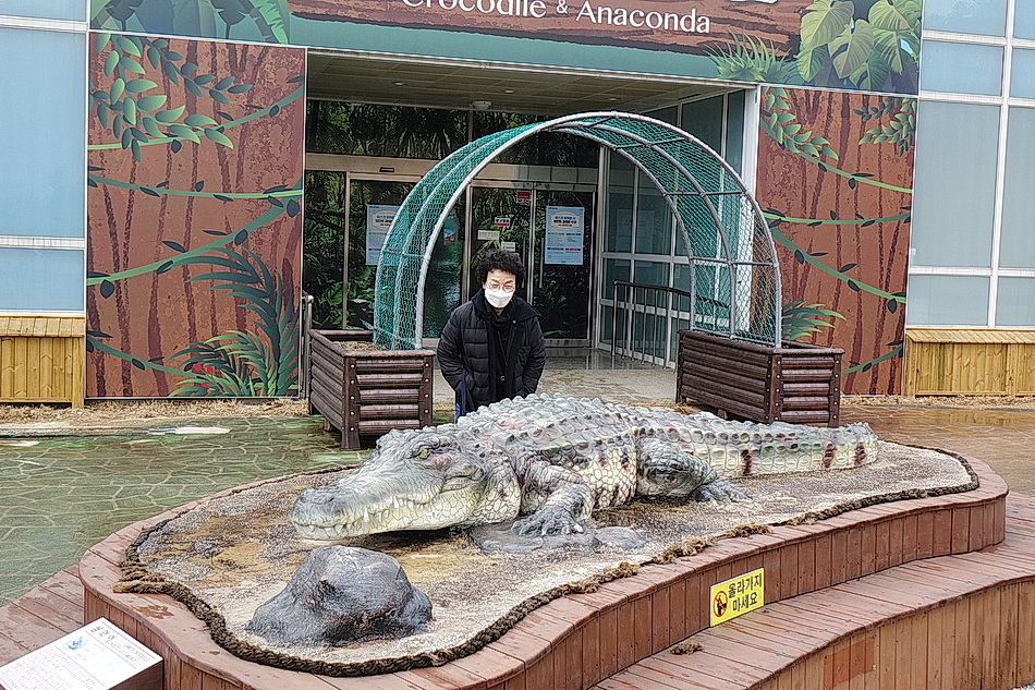 양서파충류 전시관에서는 악어, 작은 아나콘다와 다양한 뱀들과 거북이 등을 볼 수 있다..