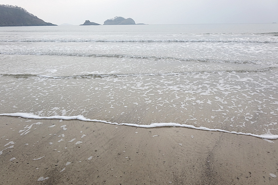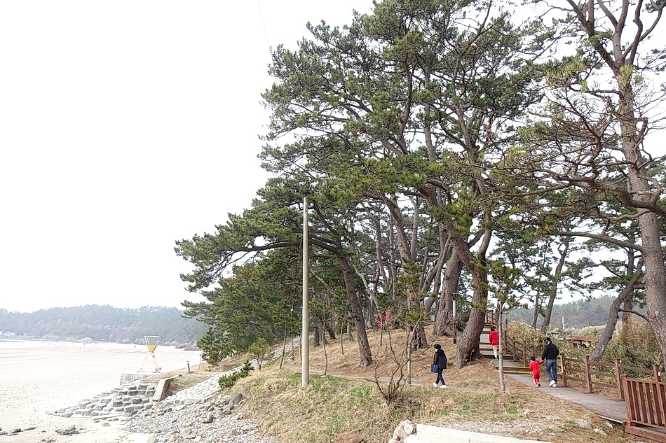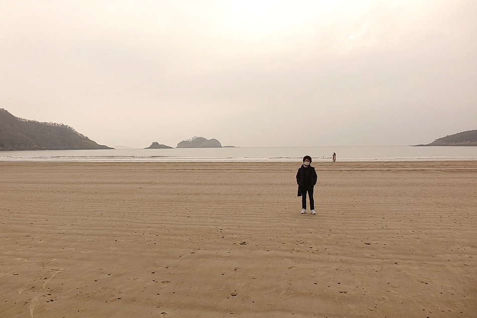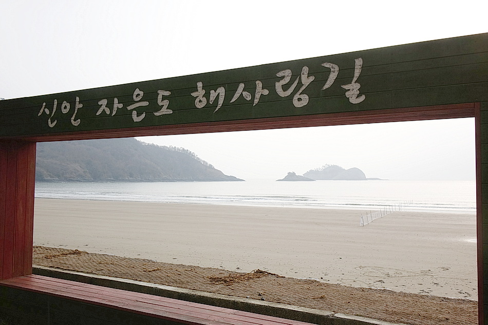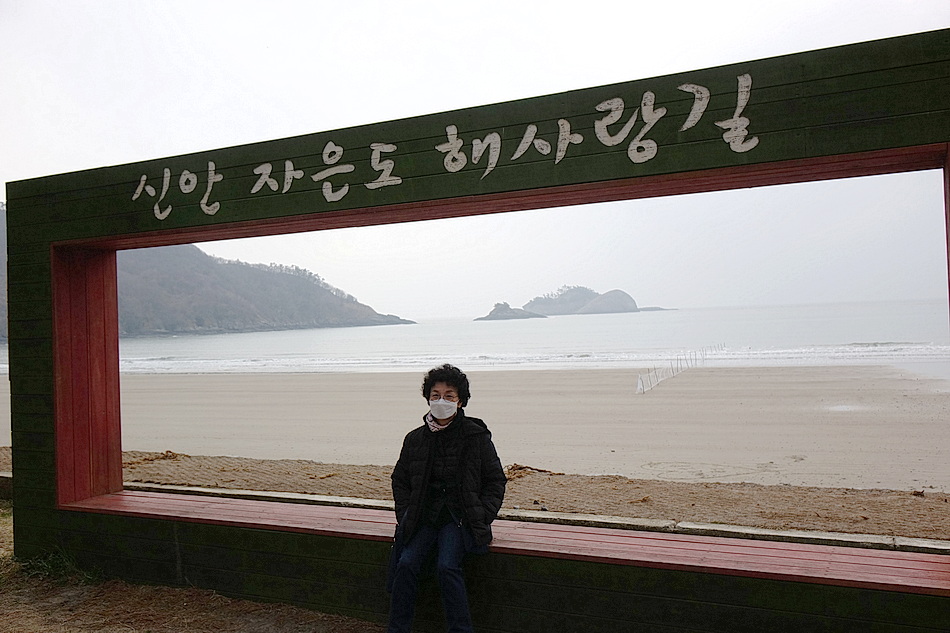 퍼플교의 산책을 끝내고 일몰까지는 시간 여유가 있어서 자은도의 분계해변에 있는 송림과 여인송을 보기 위해 가는데 생각보다 시간이 많이 걸렸다(약 40분). 분계해변의 모래는 아주 가는 모래여서 모래사장을 걸어도 발자국이 남지 않을 단단한 모래사장이었다. 구름 때문에 일몰은 포기했으나 해변에서 바라보는 풍광은 작은 섬들과 어우러져 멋졌다.