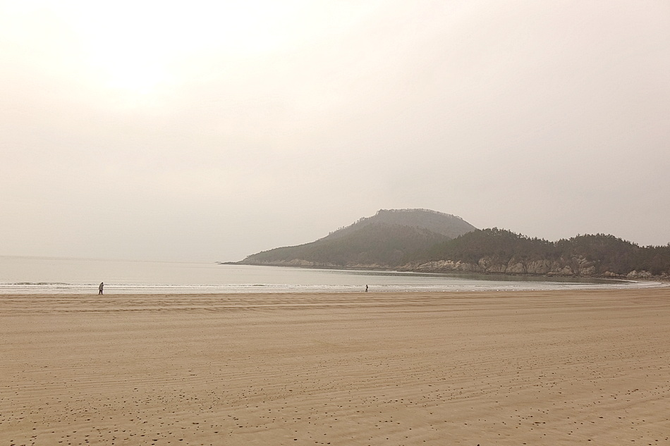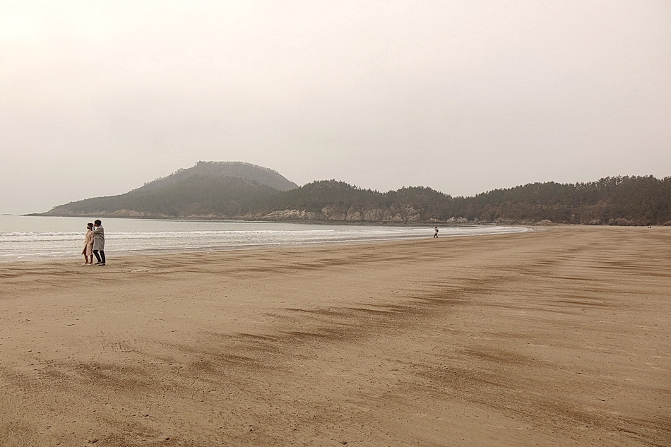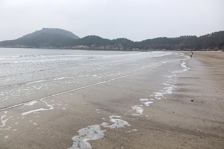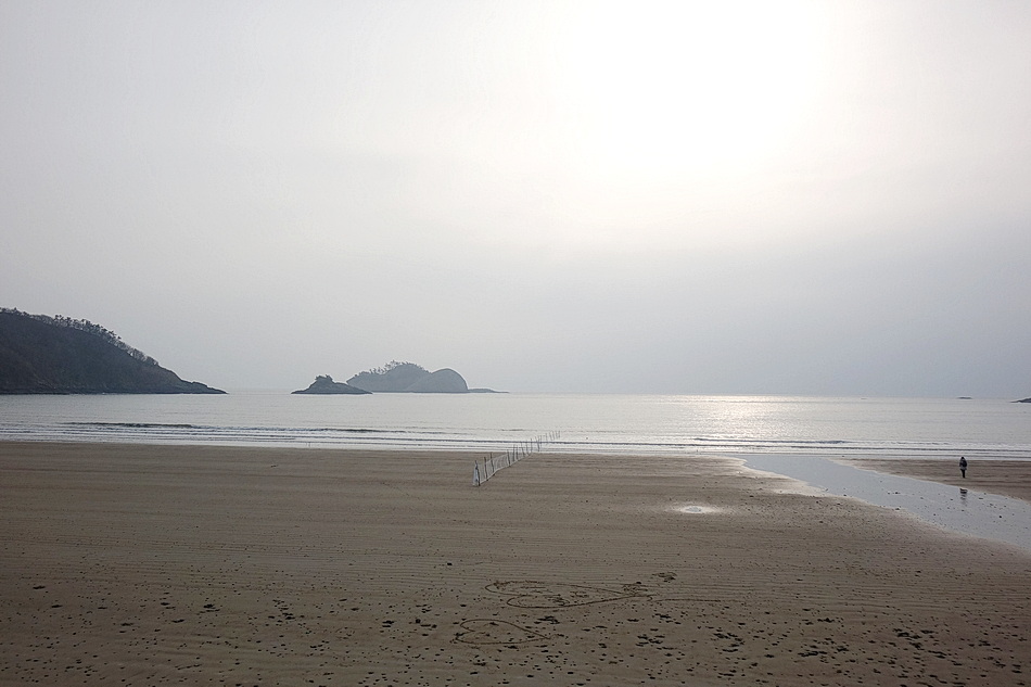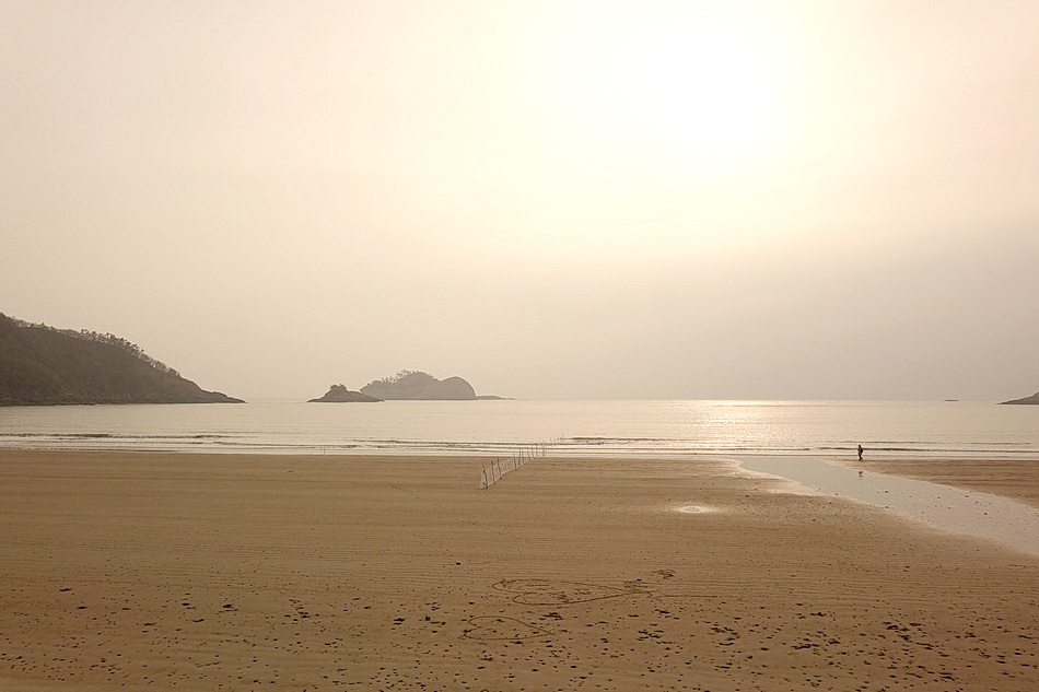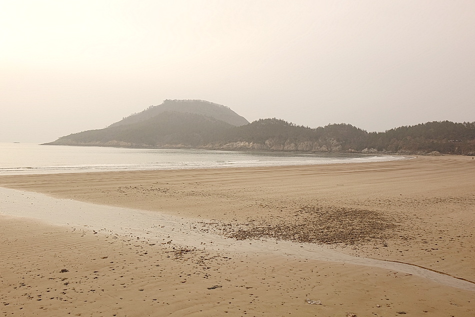 퍼플교의 산책을 끝내고 일몰까지는 시간 여유가 있어서 자은도의 분계해변에 있는 송림과 여인송을 보기 위해 가는데 생각보다 시간이 많이 걸렸다(약 40분). 분계해변의 모래는 아주 가는 모래여서 모래사장을 걸어도 발자국이 남지 않을 단단한 모래사장이었다. 구름 때문에 일몰은 포기했으나 해변에서 바라보는 풍광은 작은 섬들과 어우러져 멋졌다.