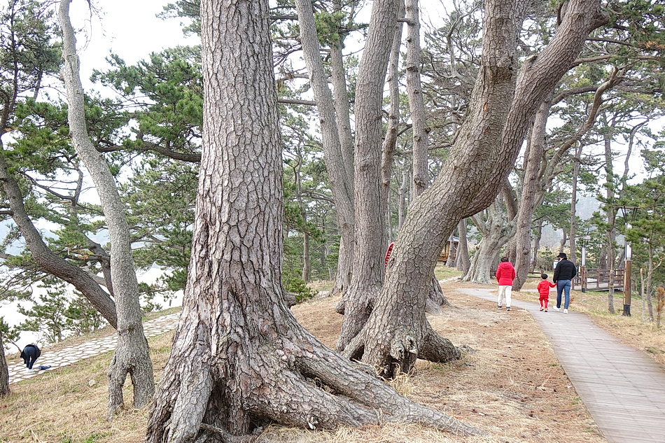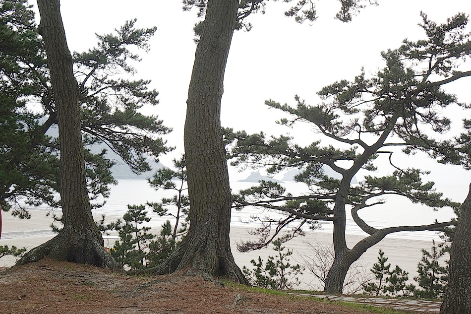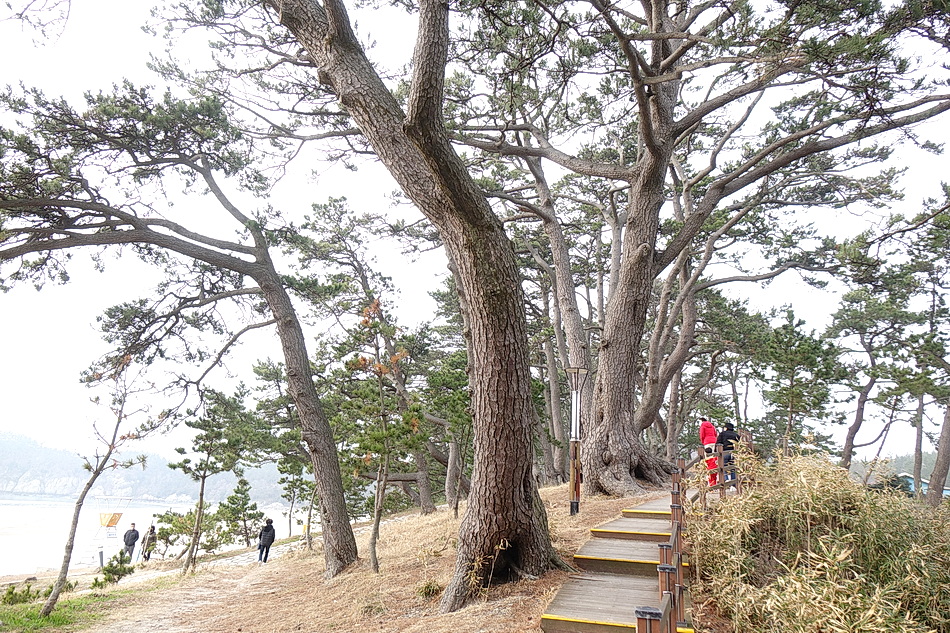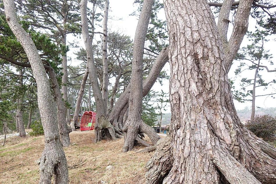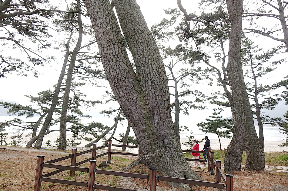해변을 따라 높이 서있는 고목의 송림들 중에 물구나무선 여인송도 있었다.