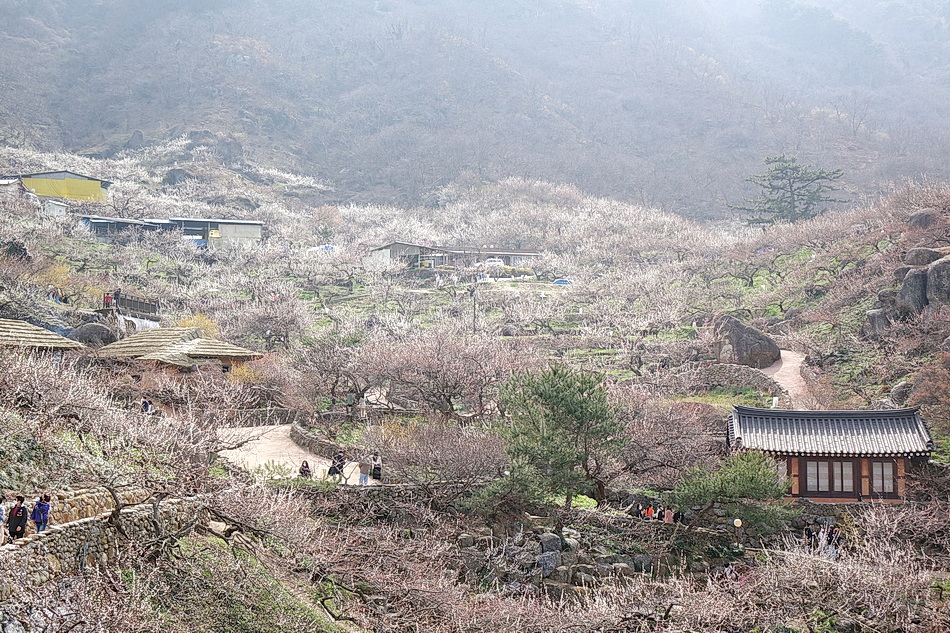 전날 밤새 비가 내리고 강풍이 불어서 조금 불안했으나 광양 청매실농원에 교통체증이 없이 도착해 보니 예상대로 매화꽃잎들이 거의 져버려서 매우 실망했다. 그러나 간간이 아직도 피어있는 매화꽃들이 있었으나 팔각정 전망대에서 바라본 전망은 아쉬운 마음을 달래주기에 충분한 아주 멋진 풍경을 보여줬다.