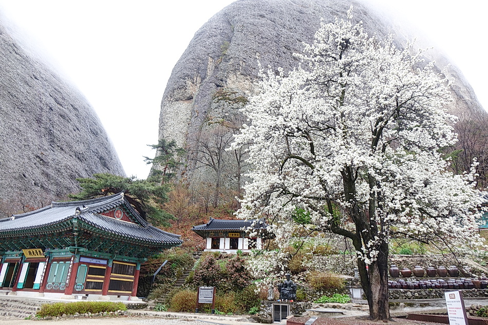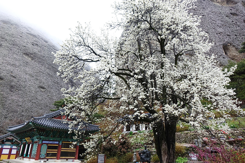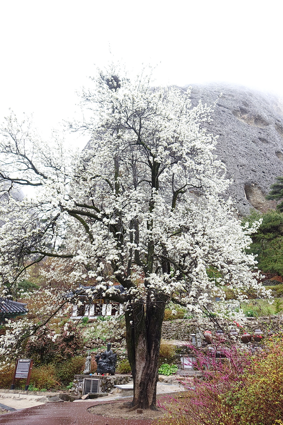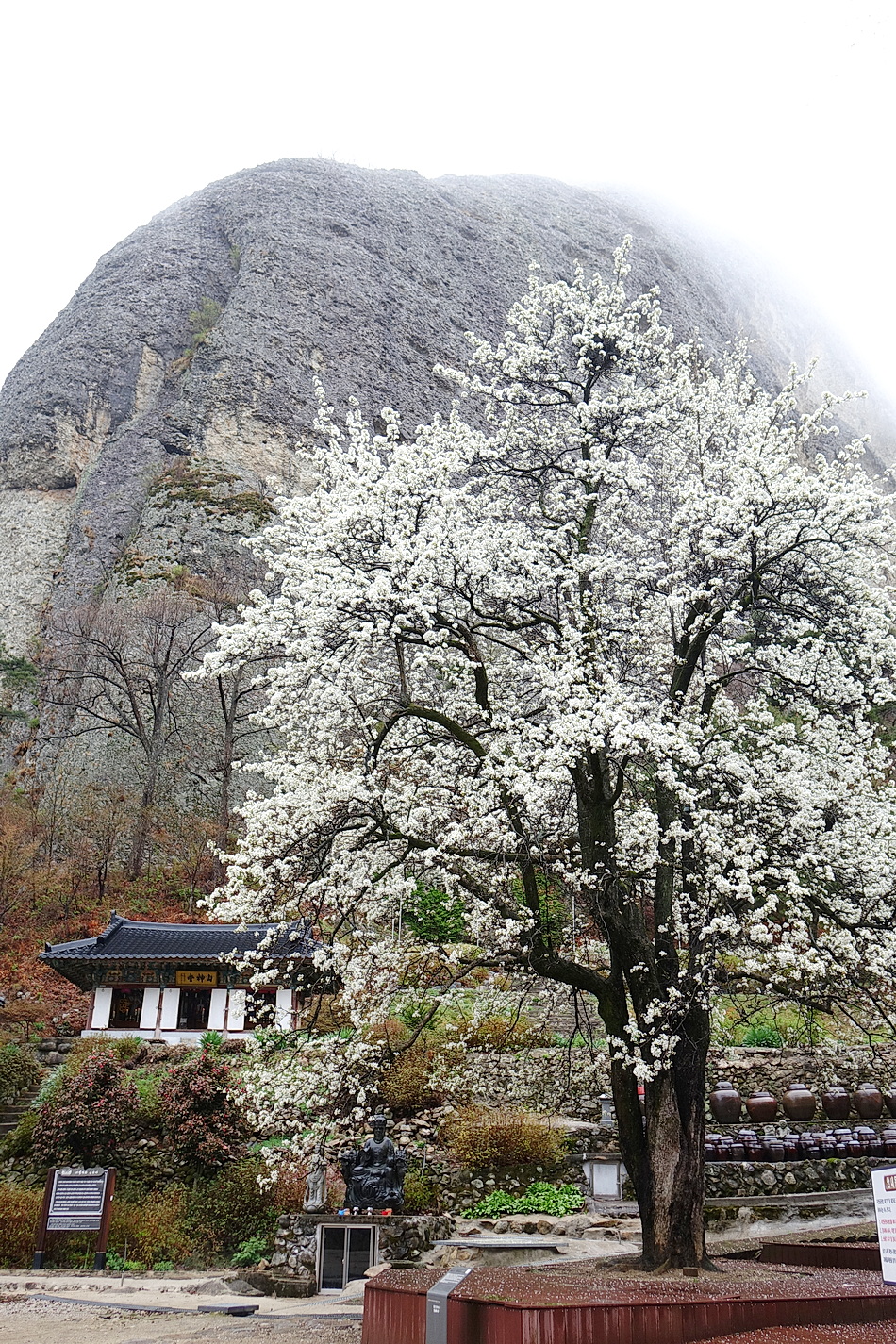 마이산의 벚꽃을 보러 올 때에는 꼭 탑사를 지나 숫마이봉(681m)과 암마이봉(687m) 사이에 위치한 은수사에 있는 수령 650여 년인 만개한 청실배나무를 보는 기대감이 있다. 약간 푸른빛을 띠는 하얀 꽃들이 만개한 청실배나무는 숫마이봉과 함께 어우러져 멋진 장관을 보여준다