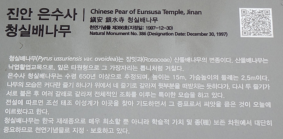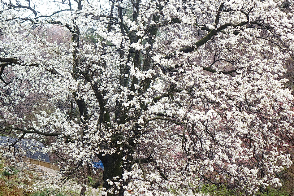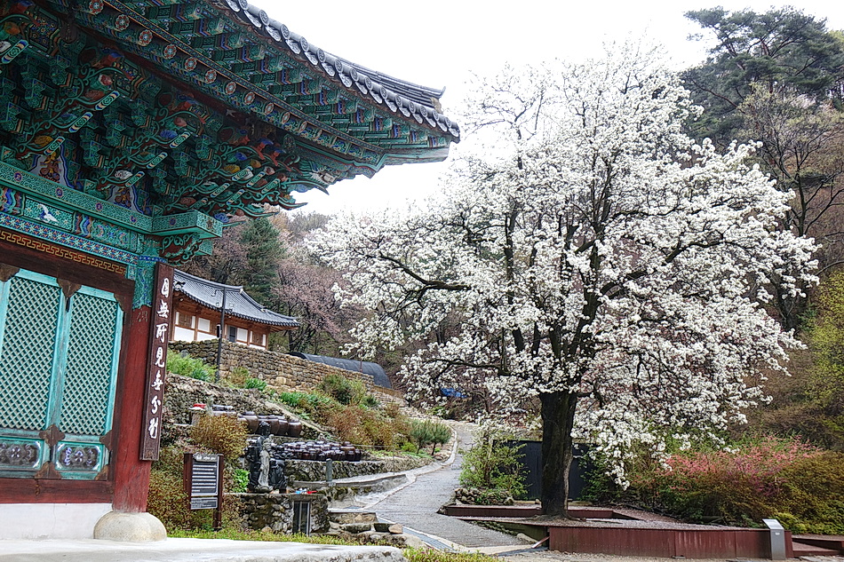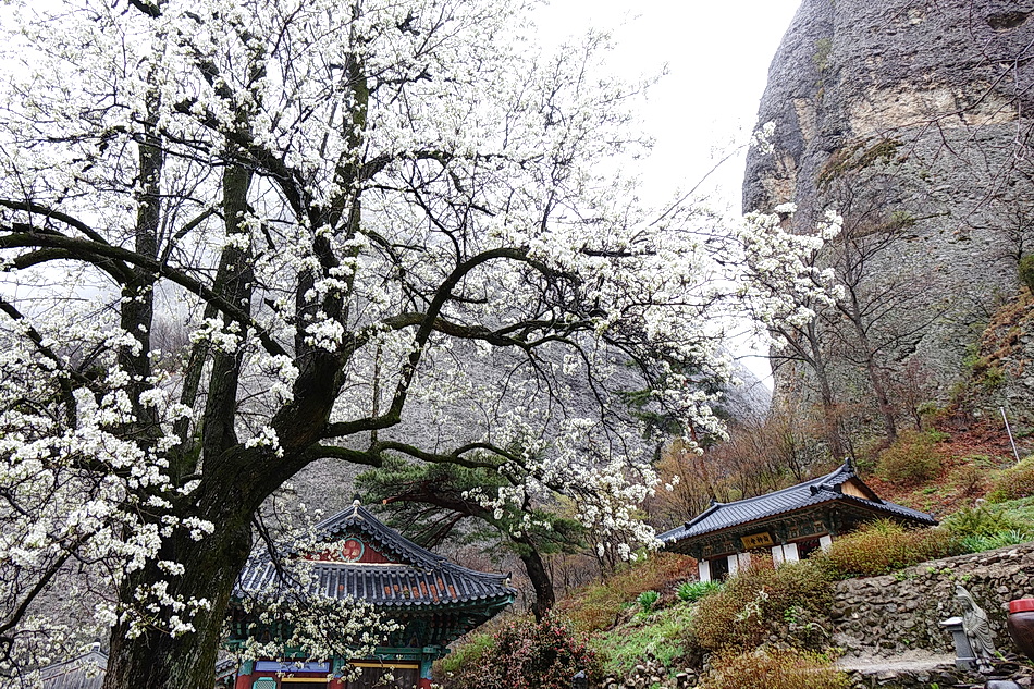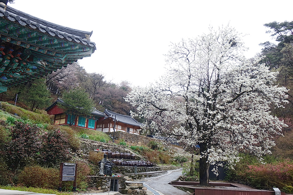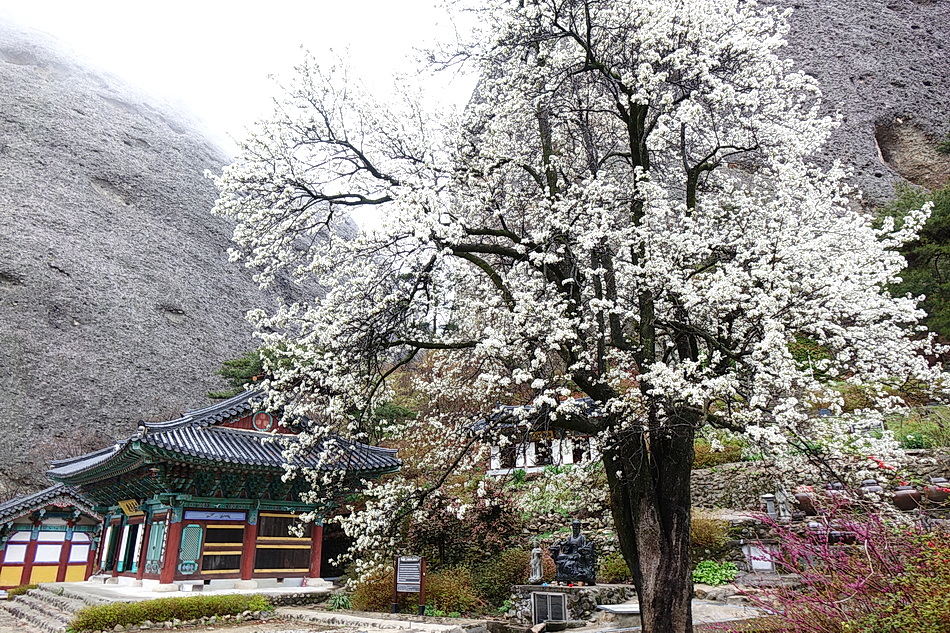 마이산의 벚꽃을 보러 올 때에는 꼭 탑사를 지나 숫마이봉(681m)과 암마이봉(687m) 사이에 위치한 은수사에 있는 수령 650여 년인 만개한 청실배나무를 보는 기대감이 있다. 약간 푸른빛을 띠는 하얀 꽃들이 만개한 청실배나무는 숫마이봉과 함께 어우러져 멋진 장관을 보여준다