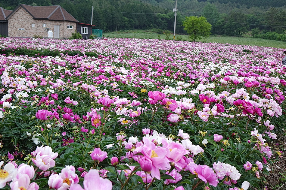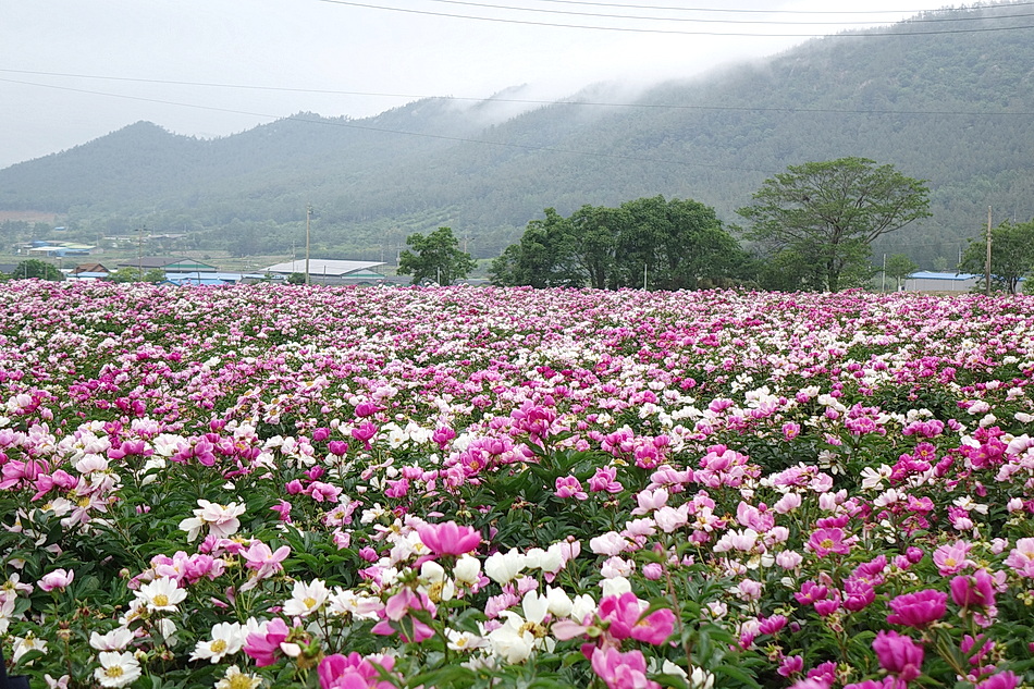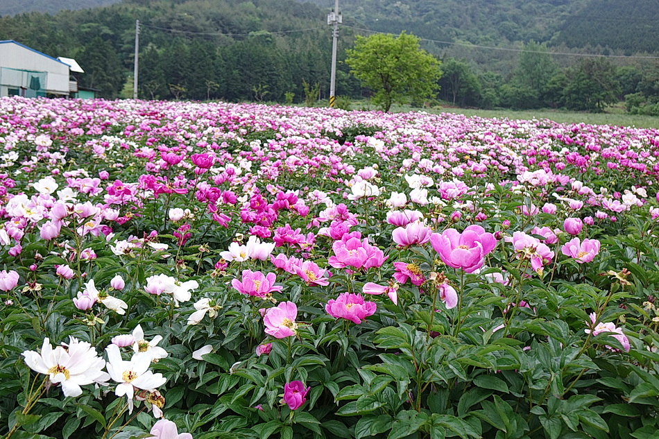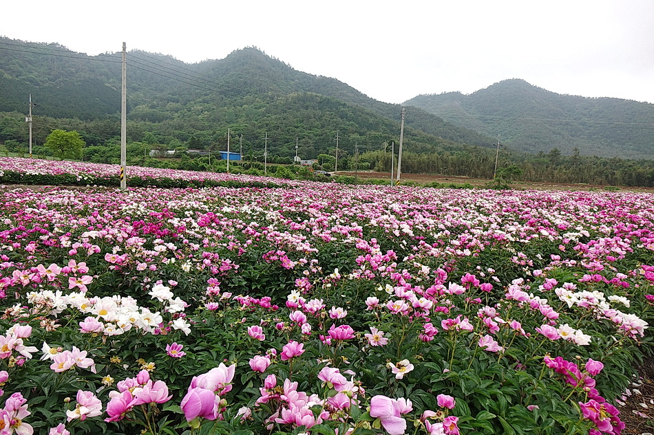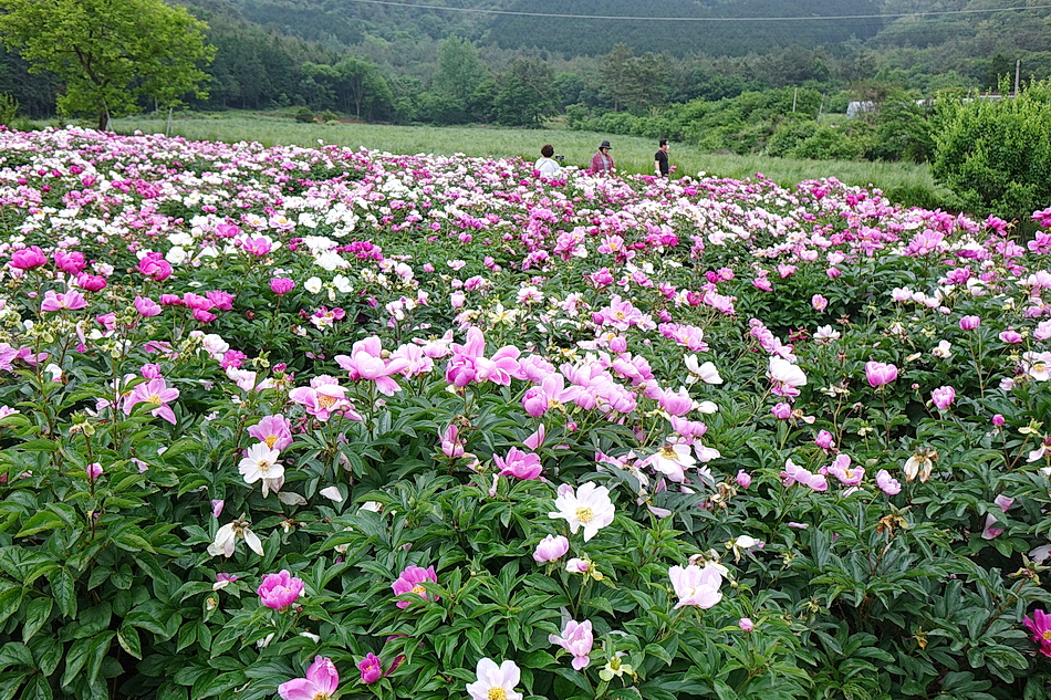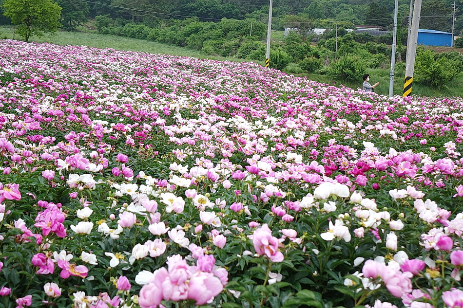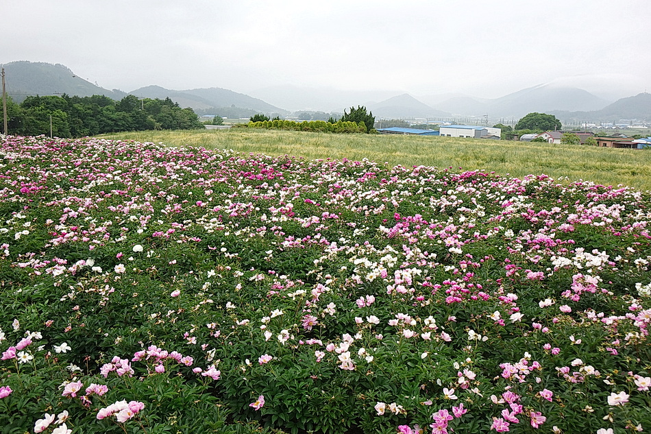 선학동 유채꽃을 구경하며 산책 후에 집으로 가는 도중에 장흥군 용산면 상금리 산 61-1에 있는 작약꽃(함박꽃)을 보러 갔는데 전날 내린 폭우로 상한 꽃잎들이 조금 많았다. 그러나 항상 함박꽃을 보면 꽃이 크고 색깔이 다양하고 화려해서 다른 꽃들보다 더 애착이 가는데, 특히 아내에게 어린 시절에 희망을 줬던 꽃이라 더욱더 정이 가는 꽃이다.