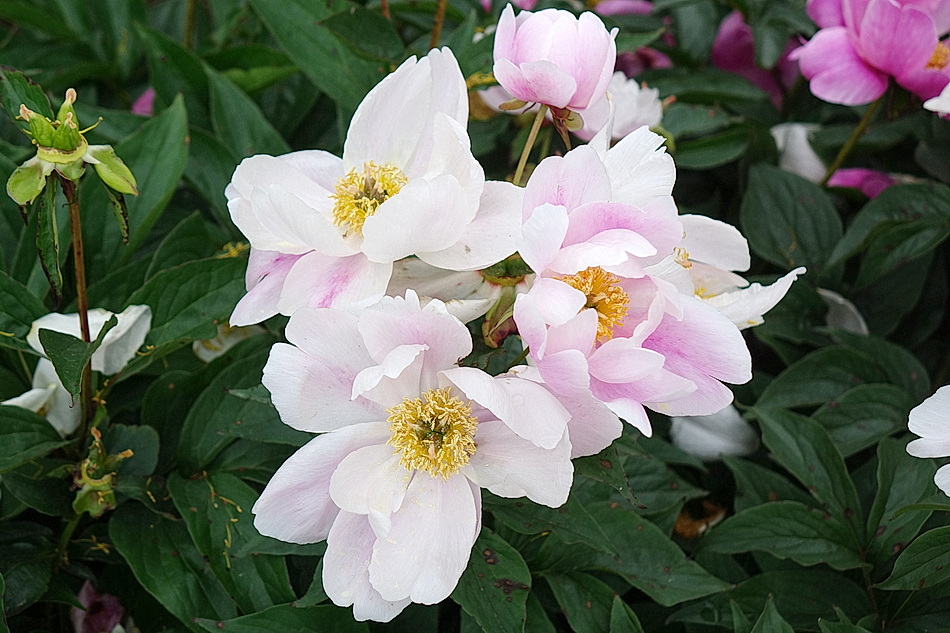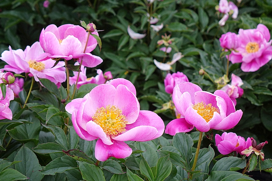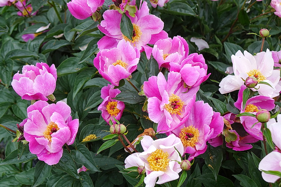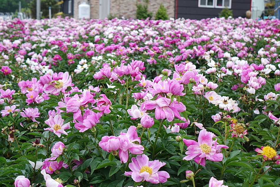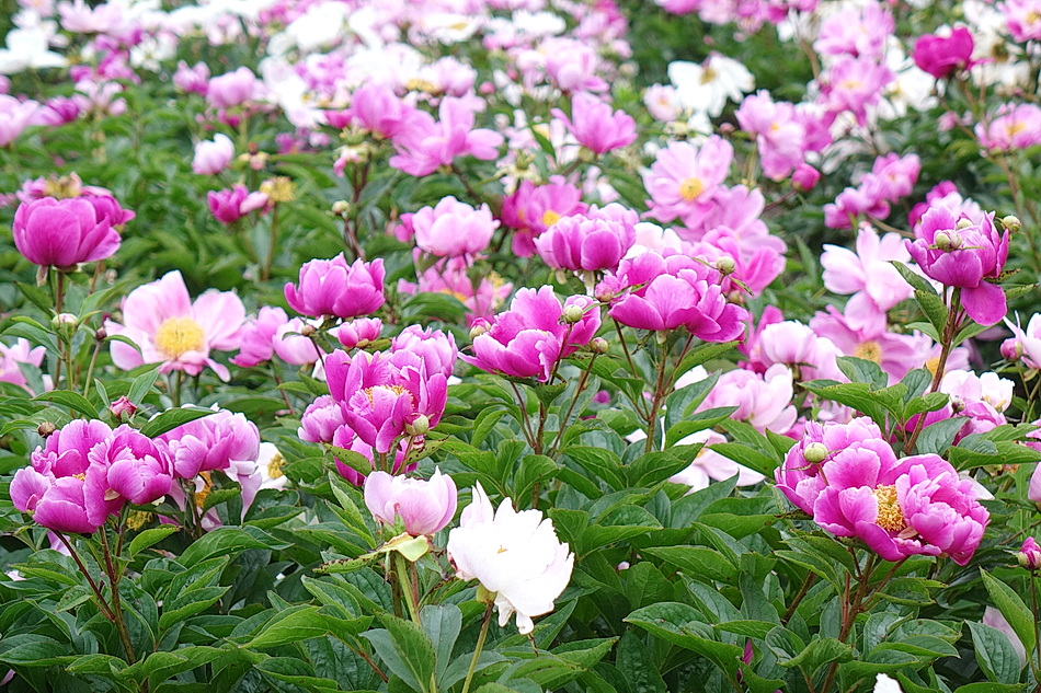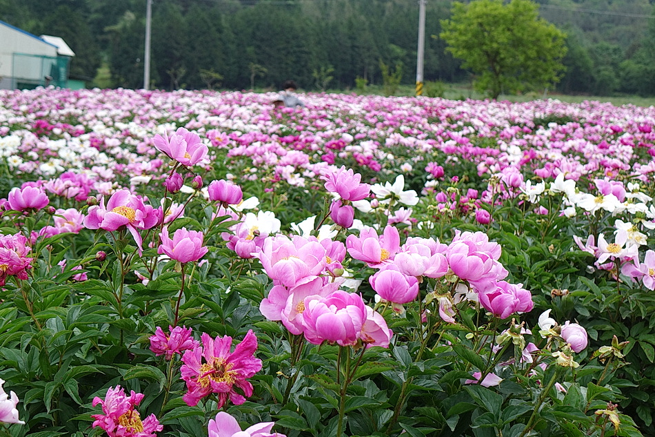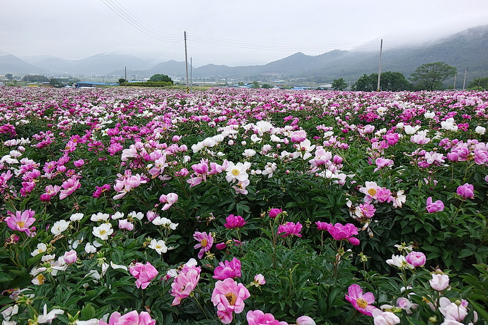 선학동 유채꽃을 구경하며 산책 후에 집으로 가는 도중에 장흥군 용산면 상금리 산 61-1에 있는 작약꽃(함박꽃)을 보러 갔는데 전날 내린 폭우로 상한 꽃잎들이 조금 많았다. 그러나 항상 함박꽃을 보면 꽃이 크고 색깔이 다양하고 화려해서 다른 꽃들보다 더 애착이 가는데, 특히 아내에게 어린 시절에 희망을 줬던 꽃이라 더욱더 정이 가는 꽃이다.