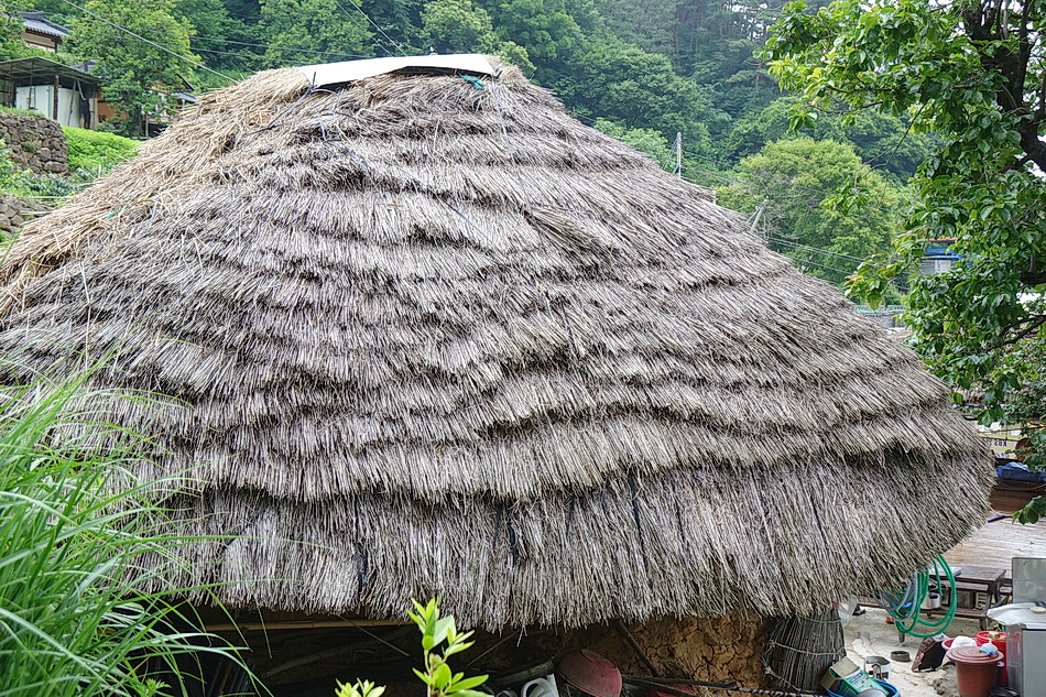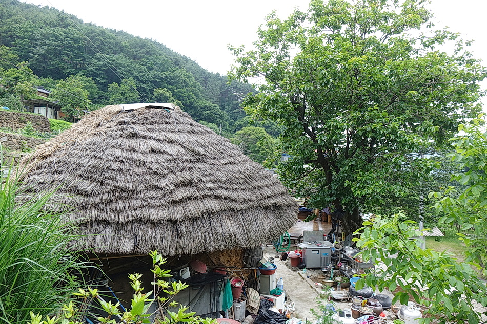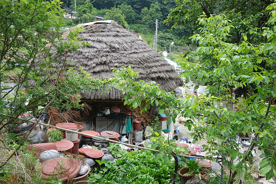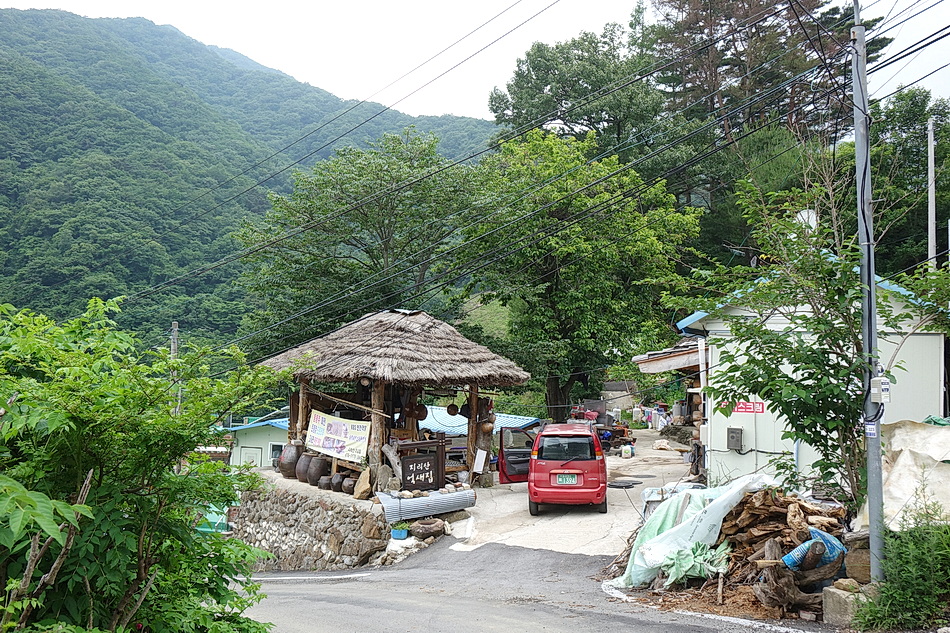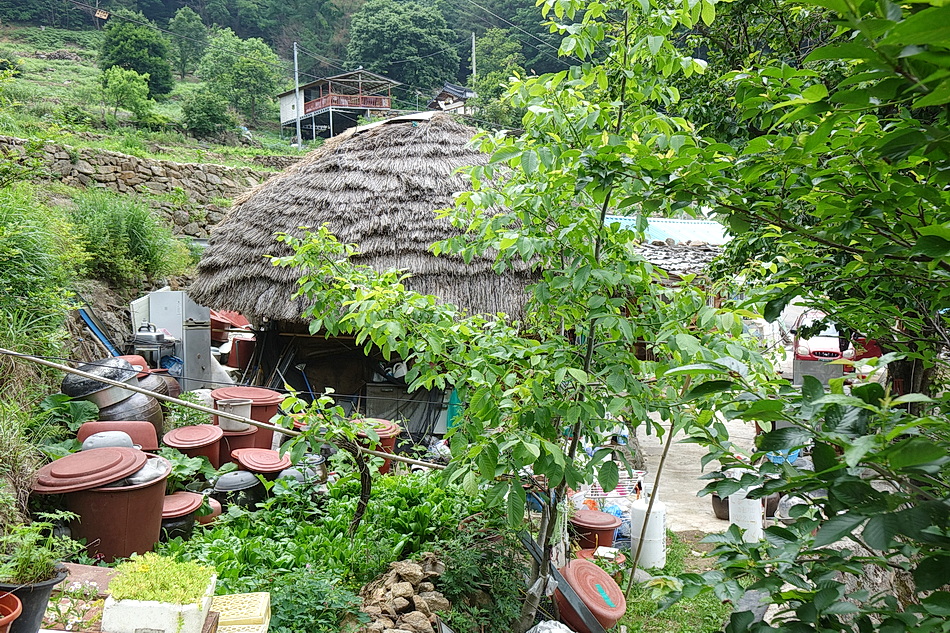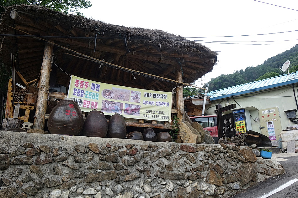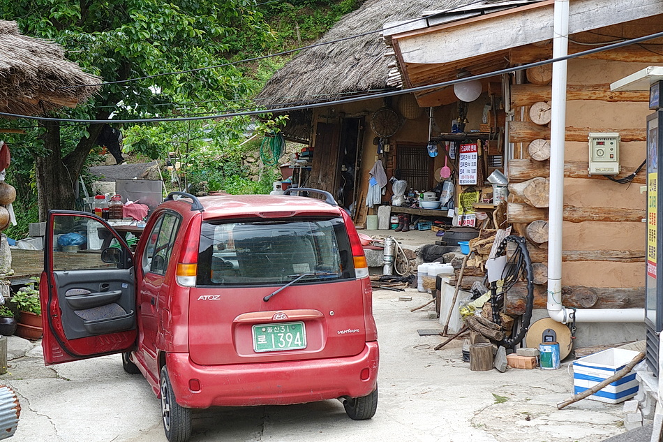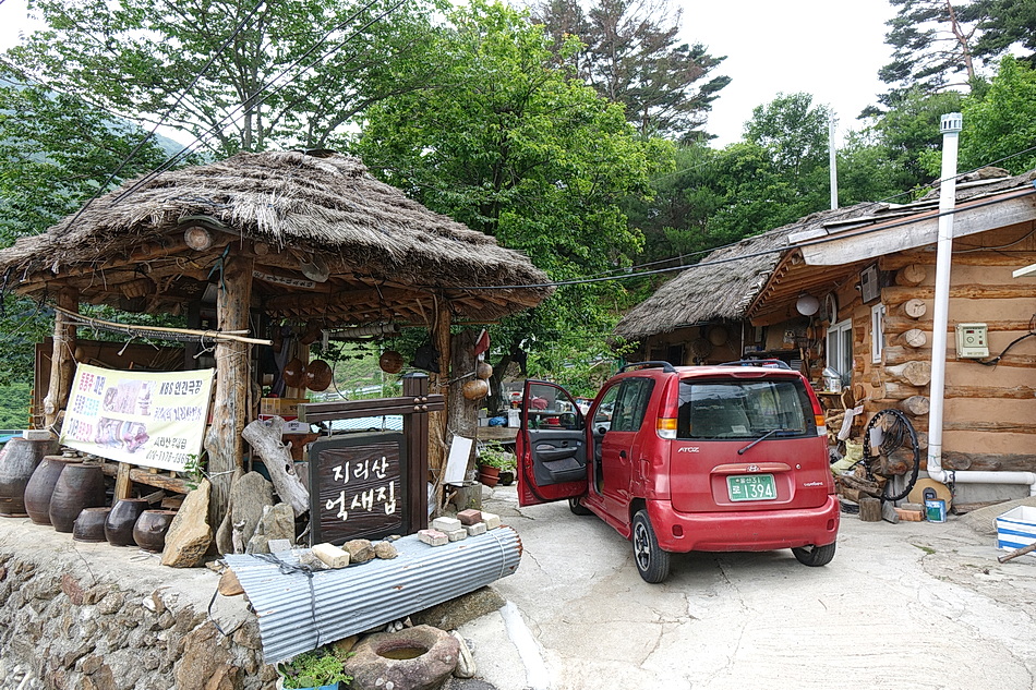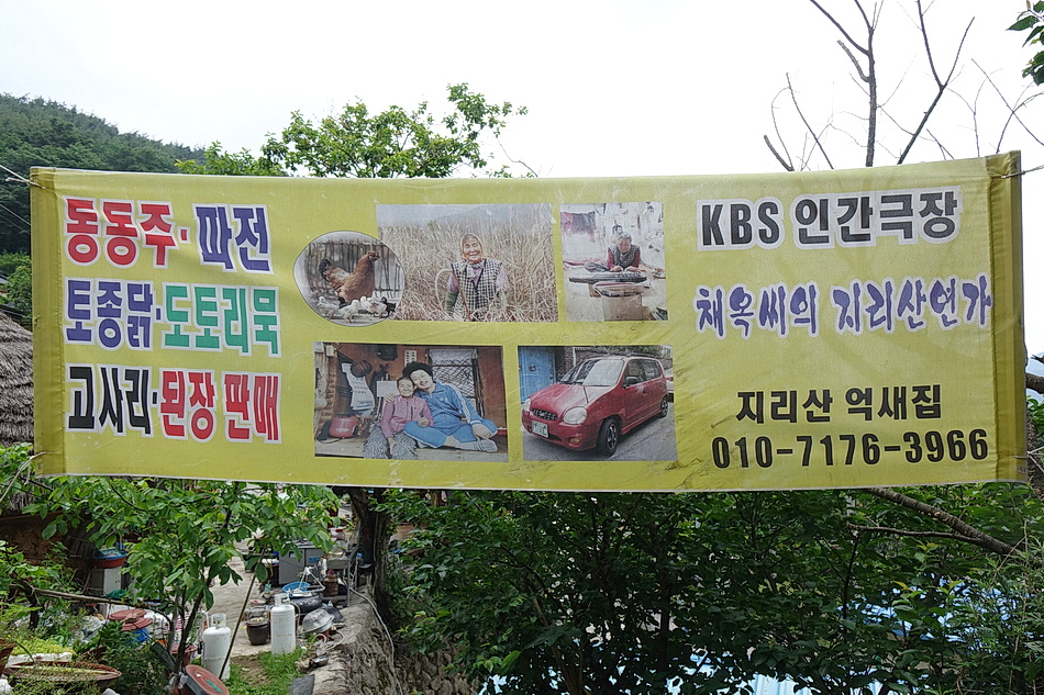 봄이면 철쭉으로 유명한 지리산 바래봉(1167m) 남쪽 사면에 위치한 오지마을인 팔랑마을(700m)에 KBS 인간극장과 EBS 한국기행 등으로 여러 차례 방송되어 많이 알려진 200년 된 지리산 억새집과 그곳에 살고 있는 김채옥 할머니가 있다. 작년 겨울에 아내가 가보자고 해서 가보았으나 사람들도 없고 식당을 운영하지 않은 것 같아서 그냥 돌아왔었다. 이번에 다시 가봤는데 할머니의 자가용만 주차되어있고 영업을 하지 않는 것 같았다. 휴대폰 전화번호가 적혀있는 걸 보니 예약 손님만 받는가 보다.