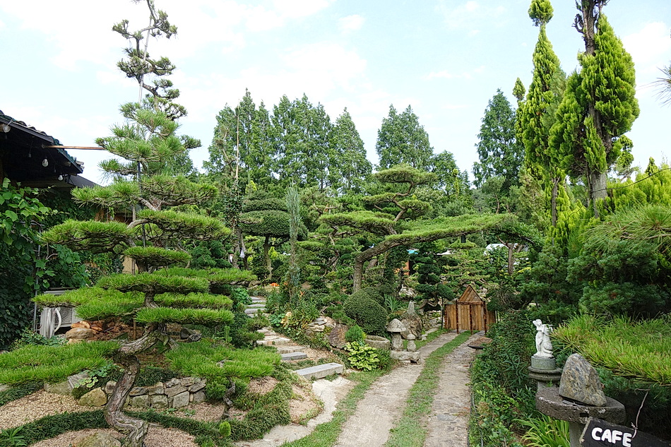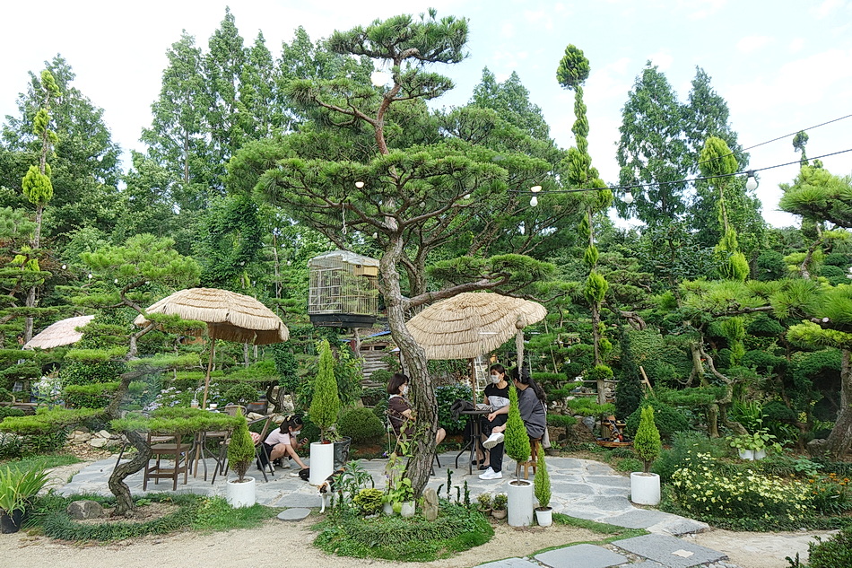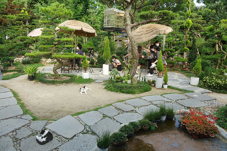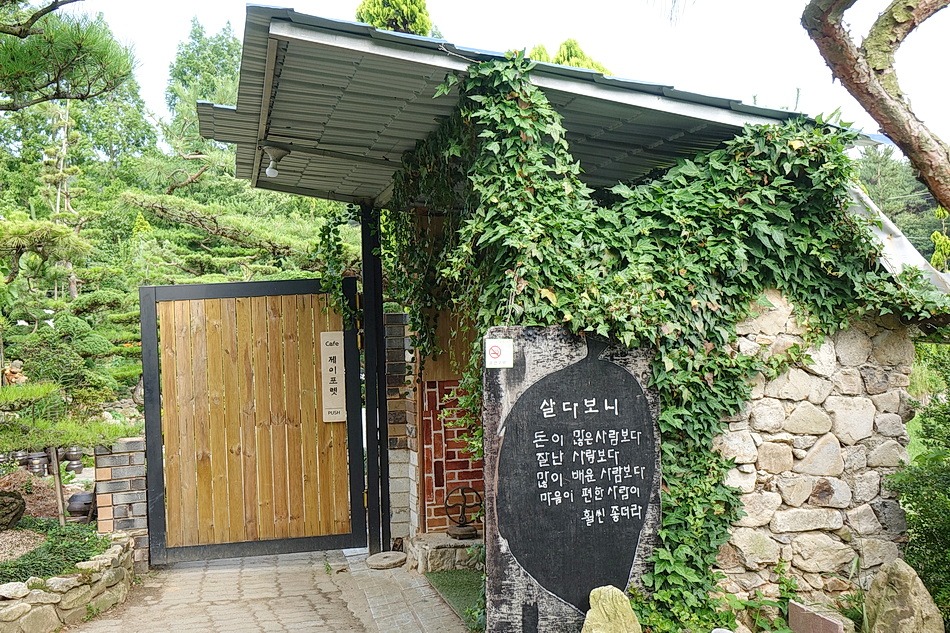 전라북도 민간정원 3호인 제이 포렛( J Forest)은 분제 된 소나무들, 황금 편백들과 동물 모양을 형상화한 토피어리들을 위주로 배치한 수목원 같은 정원인데 좁은 면적에 너무 많은 나무들이 식제되어 있고 관람로가 너무 좁아서 서로 교행하기가 힘들어서 일방통행으로 관람을 해야 했다. 젊은 연인들이 많이 방문하는 곳이나 차분하게 머물며 쉬기에는 조금 아쉬운 곳이었다. 입구에서 차를 주문한 후에 입장이 가능하다.