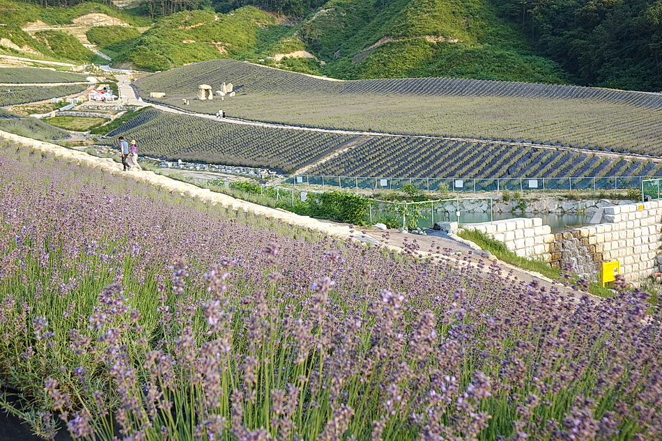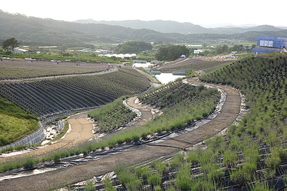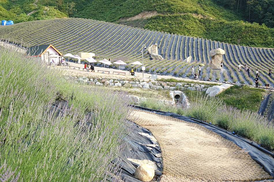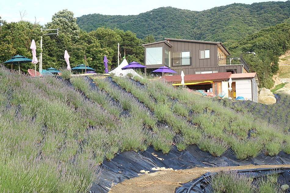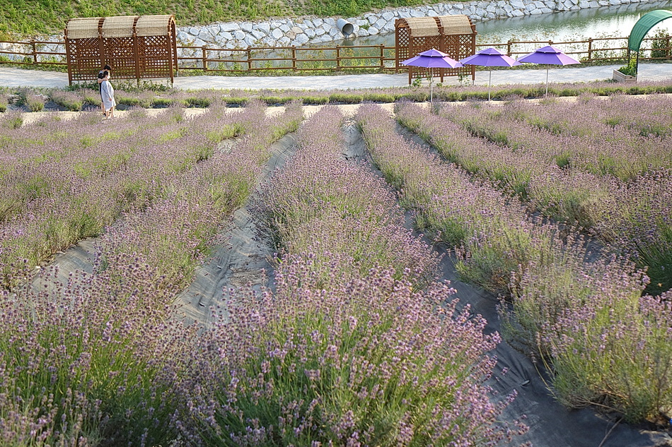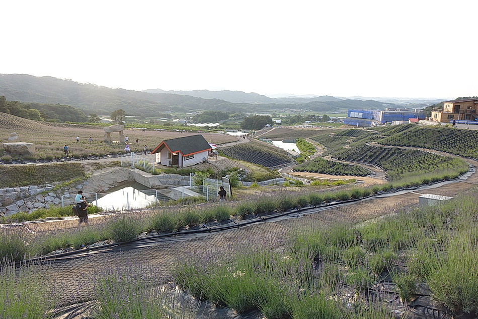 정읍 제이 포렛을 관광 후 태인의 떡갈비집으로 가는데 시간이 조금 있어서 오후 6시가 넘었지만 라벤더가 핀 정읍 허브원에 가보았다. 작년에는 무료입장이었는데 3년째가 된 올해부터는 입장료를 받고 있었다. 아직도 편의 시설인 카페 등이 건축 중이어서 주변이 어수선하고 황량하기까지 했다. 또한 국내 최대의 잉글리시 라벤더 농장인데도 벌써 베어버린 곳도 많아서 인지 라벤더가 풍성하지 않아서 기대했던 짙은 보랏빛의 라벤더를 볼 수 없어서 조금 실망을 했다. 라벤더의 보랏빛 색상을 조절하는 사진들 때문에 막상 와보고 실망하는 사람들이 많은 것 같다.