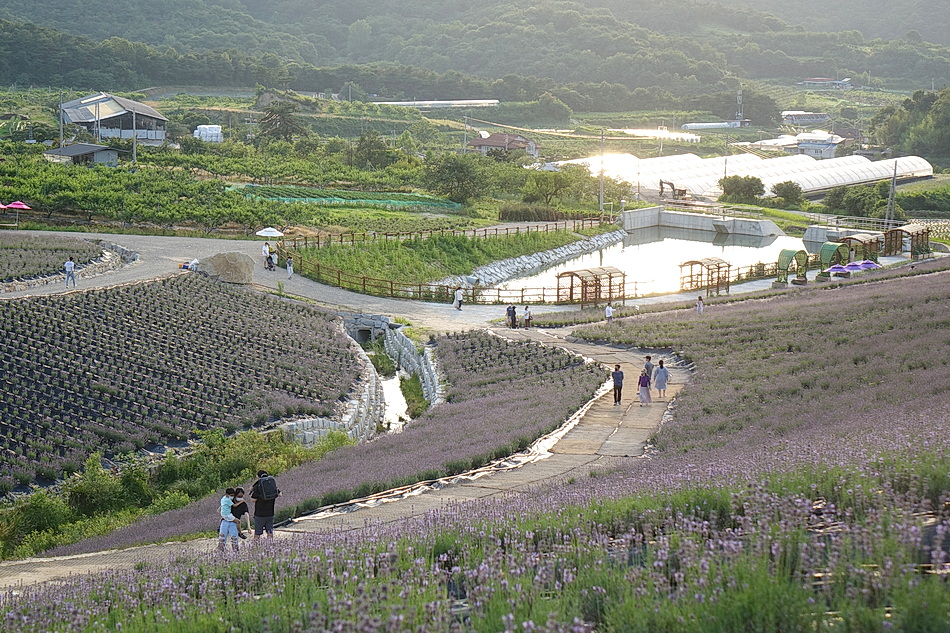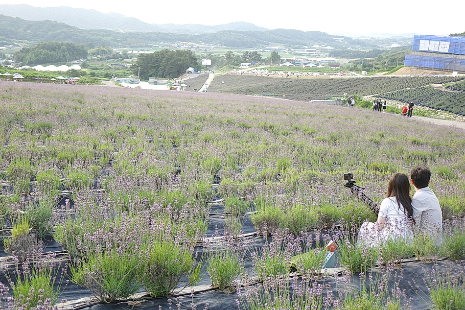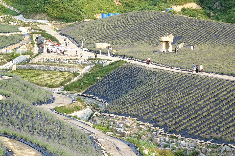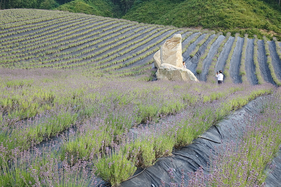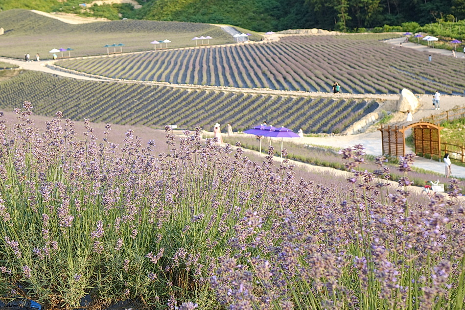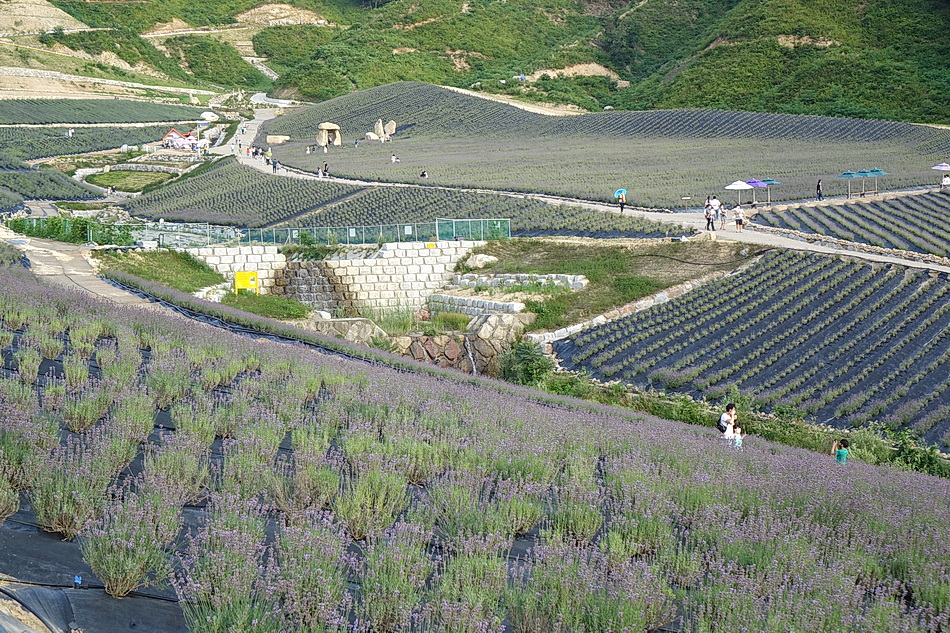 정읍 제이 포렛을 관광 후 태인의 떡갈비집으로 가는데 시간이 조금 있어서 오후 6시가 넘었지만 라벤더가 핀 정읍 허브원에 가보았다. 작년에는 무료입장이었는데 3년째가 된 올해부터는 입장료를 받고 있었다. 아직도 편의 시설인 카페 등이 건축 중이어서 주변이 어수선하고 황량하기까지 했다. 또한 국내 최대의 잉글리시 라벤더 농장인데도 벌써 베어버린 곳도 많아서 인지 라벤더가 풍성하지 않아서 기대했던 짙은 보랏빛의 라벤더를 볼 수 없어서 조금 실망을 했다. 라벤더의 보랏빛 색상을 조절하는 사진들 때문에 막상 와보고 실망하는 사람들이 많은 것 같다.