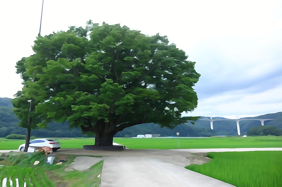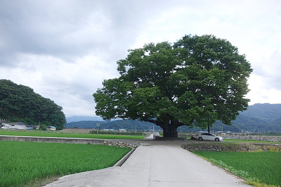 코로나 19의 4차 유행 기를 맞게 되니 에어컨이 있는 실내 카페에서 쉴 수도 없고 해서 주로 드라이브 위주로 관광을 할 수밖에 없게 되었다. 이번에는 며칠 전에 비가 와서 합천군의 황계폭포에 가봤는데 의외로 폭포의 수량이 많지 않았다. 집으로 돌아오는 길에 야로면 구정리의 논길 한가운데 서있는 500년 된 유명한 느티나무에 가보았다.