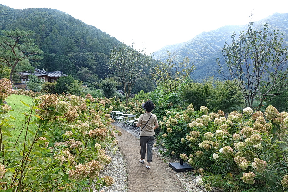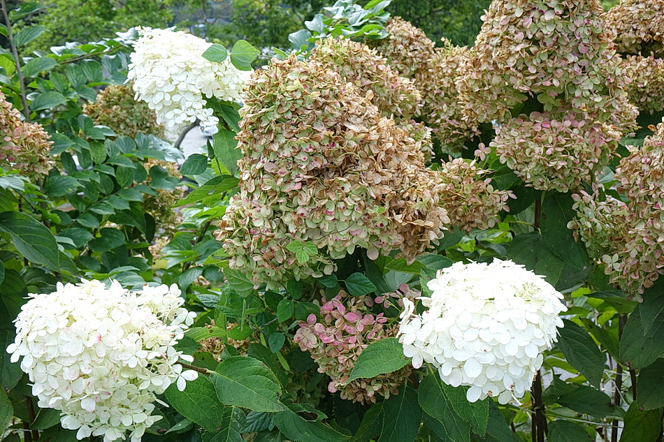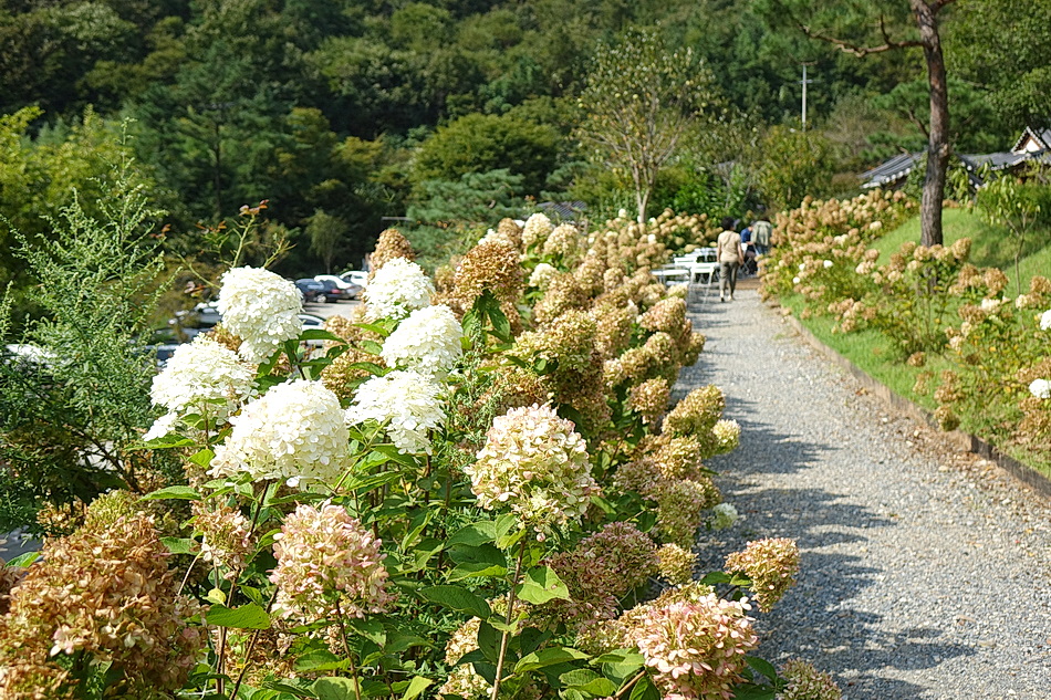 아쉽게 하얀 수국들이 이미 시들어 버렸다.