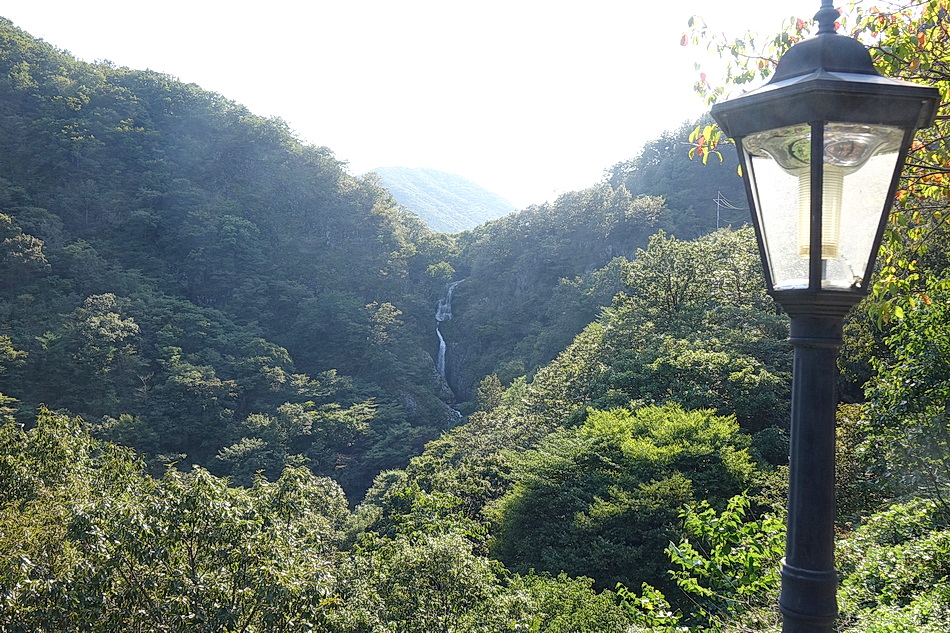대아수목원으로 가는 도중에 본 위봉폭포. 이단 폭포로 높이는 60m.
