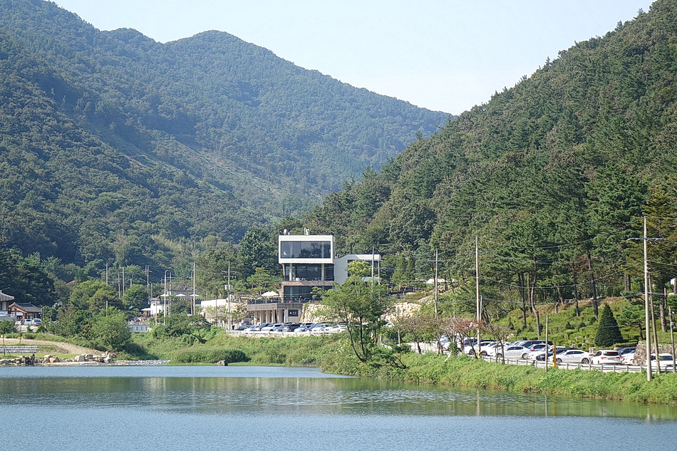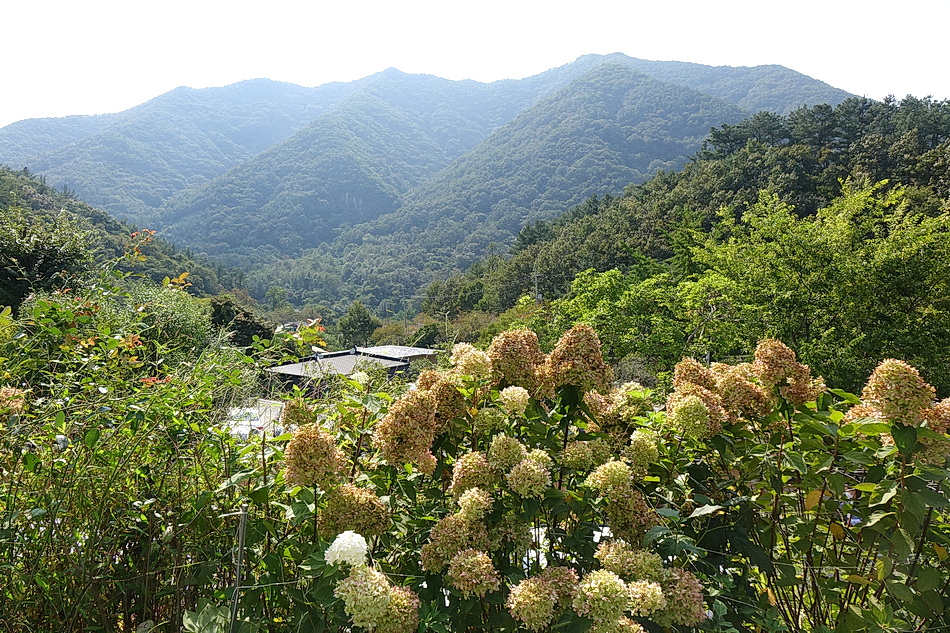 멀리 보이는 곳이 유명한 카페 라온으로 좁은 길을 차로 가야 하는데 차들이 너무 몰려서 포기 한 곳.