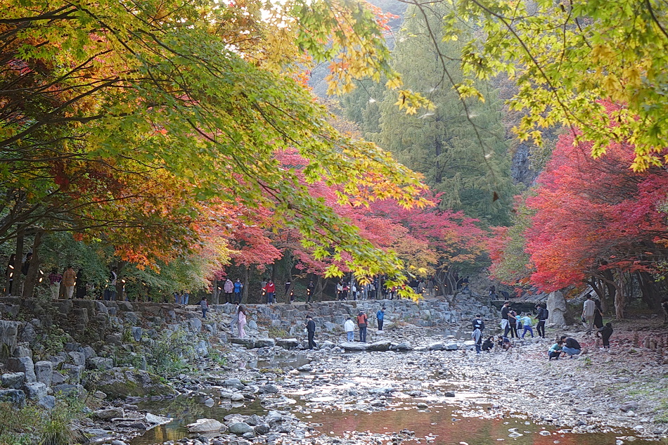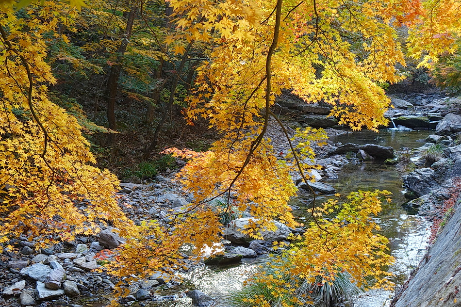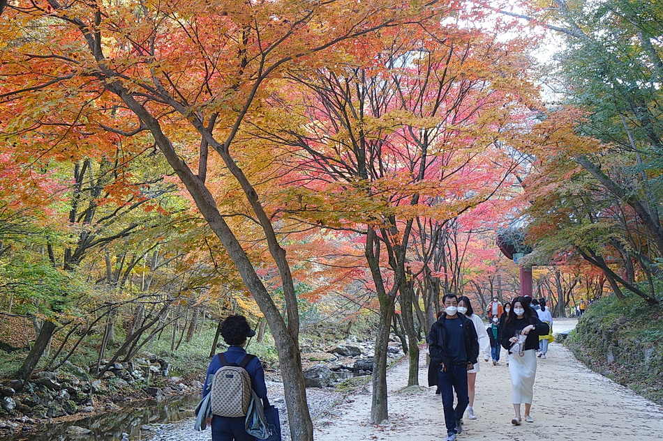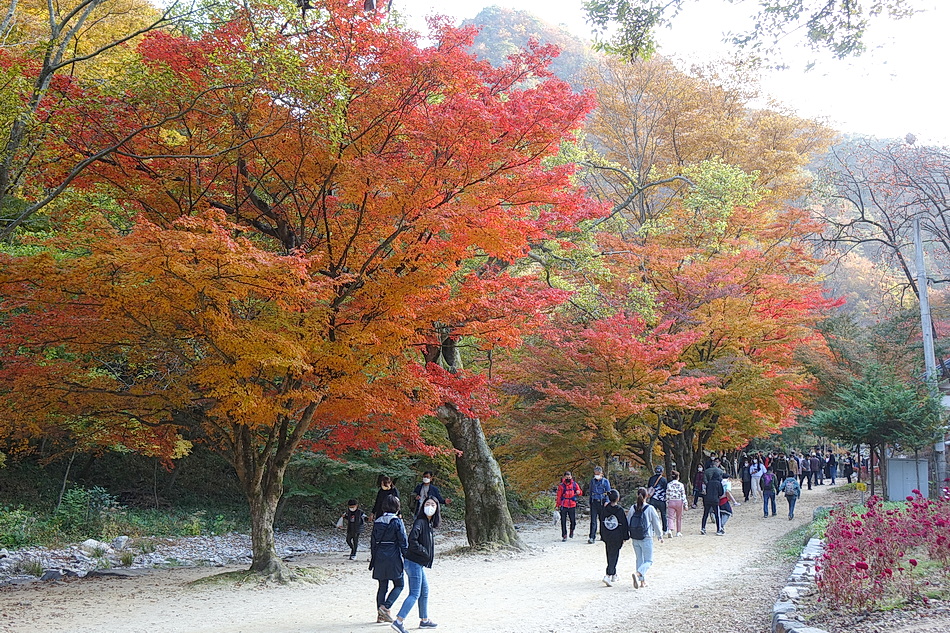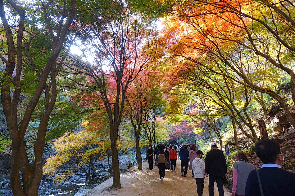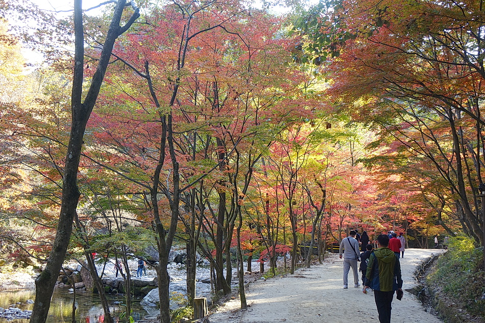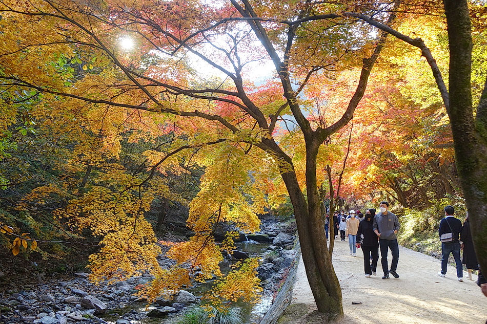 몇 년 만에 강천사의 단풍을 보려고 갔는데 교통체증 때문에 간신히 오후 3시경에 주차장에 도착하였다. 주차장을 전에 보다 몇 배를 넓혔는데도 주차할 곳을 찾느라 애를 먹었다. 오후 3시 30경에 매표소에 도착하니 벌써 해가 지면서 구름다리까지 가는 동안 내내 역광이어서 밝고 맑은 사진을 찍기가 어려웠다. 단풍은 등산로 초반에는 붉은 단풍보다는 노란 단풍잎들이 많았으나 강천사 부근부터는 붉은 단풍을 볼 수 있었다. 단풍이 예쁘게 든 해는 아닌 것 같으나 이번 주까지는 단풍이 절정일 것 같다.