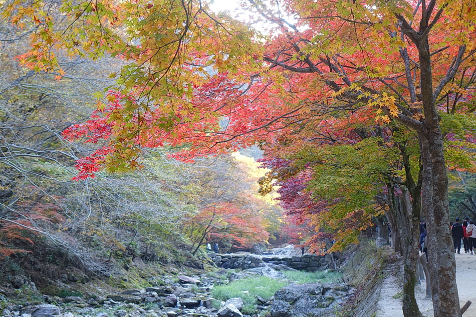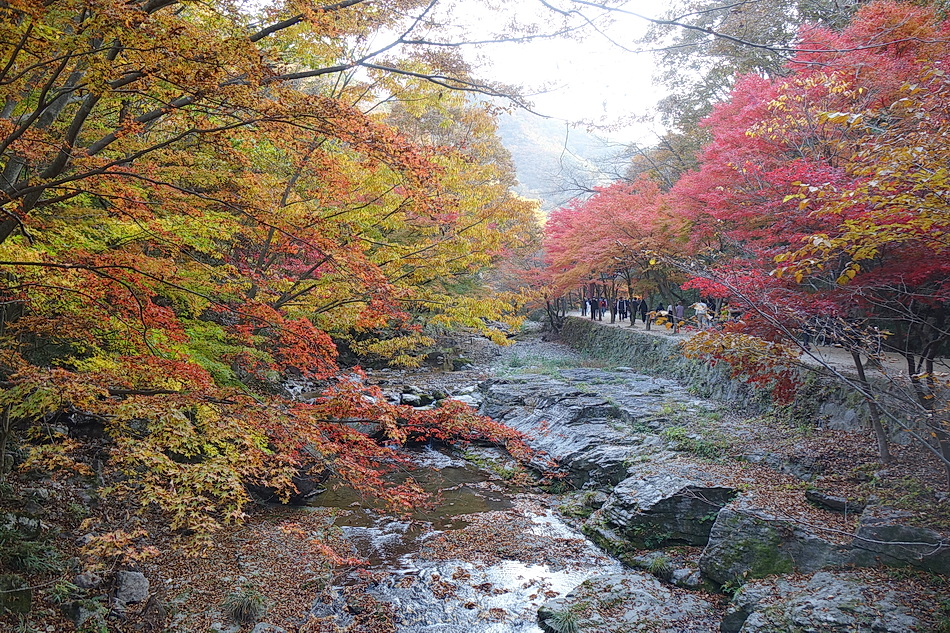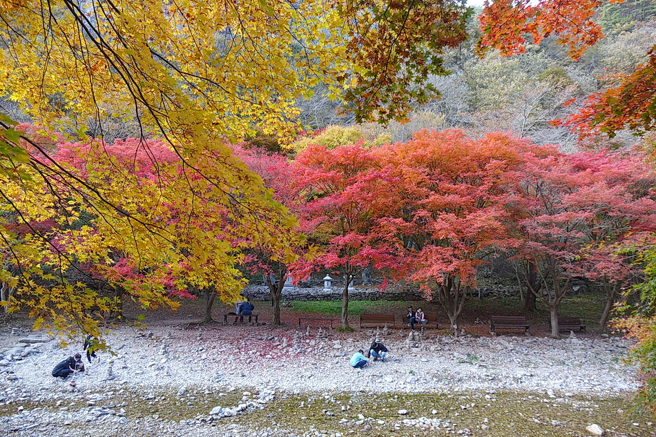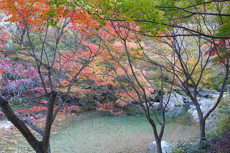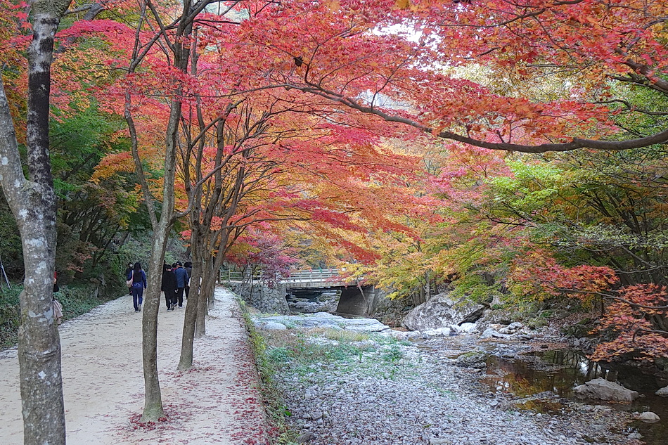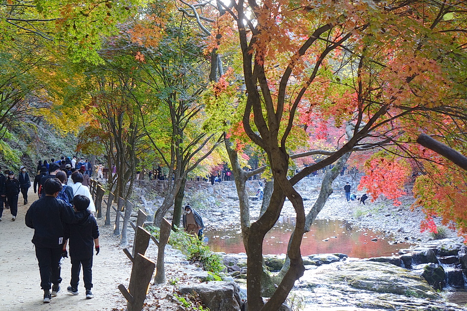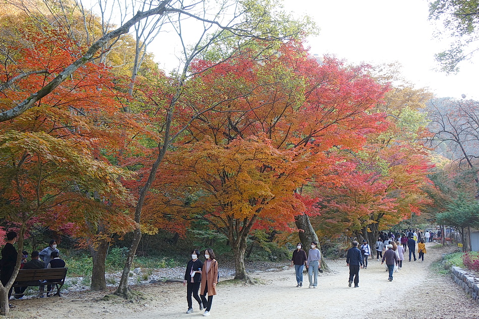 몇 년 만에 강천사의 단풍을 보려고 갔는데 교통체증 때문에 간신히 오후 3시경에 주차장에 도착하였다. 주차장을 전에 보다 몇 배를 넓혔는데도 주차할 곳을 찾느라 애를 먹었다. 오후 3시 30경에 매표소에 도착하니 벌써 해가 지면서 구름다리까지 가는 동안 내내 역광이어서 밝고 맑은 사진을 찍기가 어려웠다. 단풍은 등산로 초반에는 붉은 단풍보다는 노란 단풍잎들이 많았으나 강천사 부근부터는 붉은 단풍을 볼 수 있었다. 단풍이 예쁘게 든 해는 아닌 것 같으나 이번 주까지는 단풍이 절정일 것 같다.