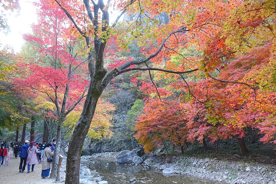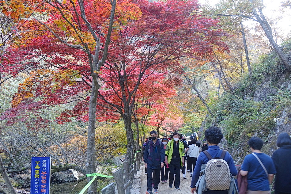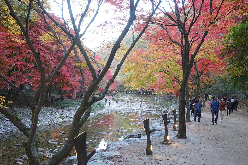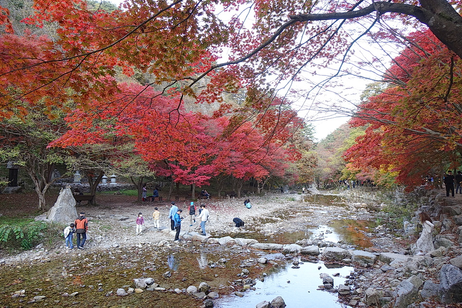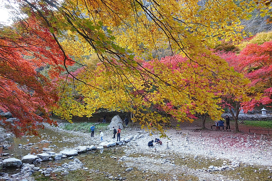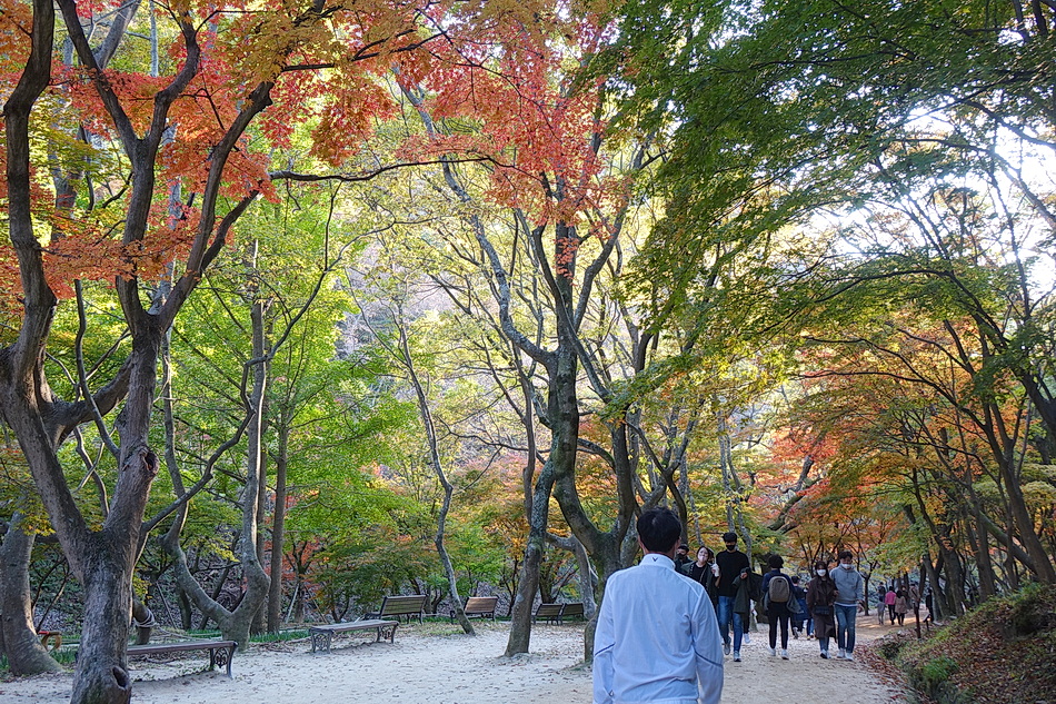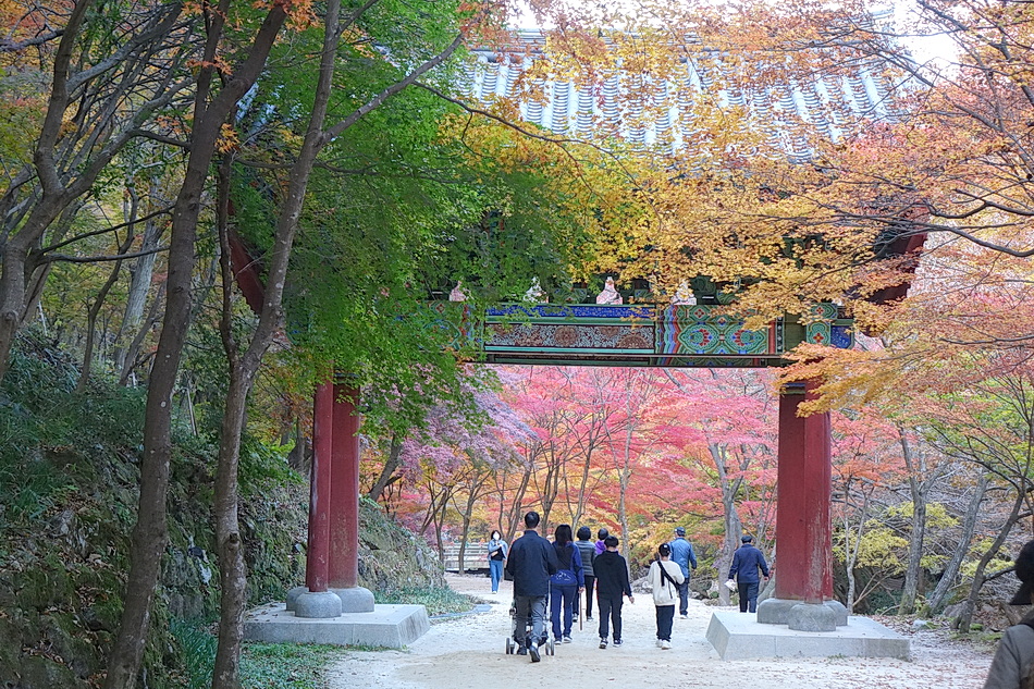 몇 년 만에 강천사의 단풍을 보려고 갔는데 교통체증 때문에 간신히 오후 3시경에 주차장에 도착하였다. 주차장을 전에 보다 몇 배를 넓혔는데도 주차할 곳을 찾느라 애를 먹었다. 오후 3시 30경에 매표소에 도착하니 벌써 해가 지면서 구름다리까지 가는 동안 내내 역광이어서 밝고 맑은 사진을 찍기가 어려웠다. 단풍은 등산로 초반에는 붉은 단풍보다는 노란 단풍잎들이 많았으나 강천사 부근부터는 붉은 단풍을 볼 수 있었다. 단풍이 예쁘게 든 해는 아닌 것 같으나 이번 주까지는 단풍이 절정일 것 같다.