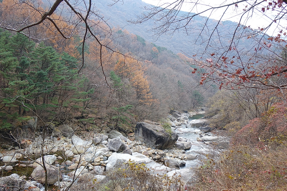 단풍 인파가 붐비는 단풍철을 피해 낙엽이 진 남원시 산내면 뱀사골 방면과 함양군 마천면 백부동 방면을 드라이브하는데 이 날따라 심한 미세먼지와 짙은 구름 때문에 높이 치솟은 지리산 연봉들의 활엽 수목들의 황갈색 낙엽들과 상록수의 멋진 어우러짐을 볼 수 없었다. 내년을 다시 기대해 본다.