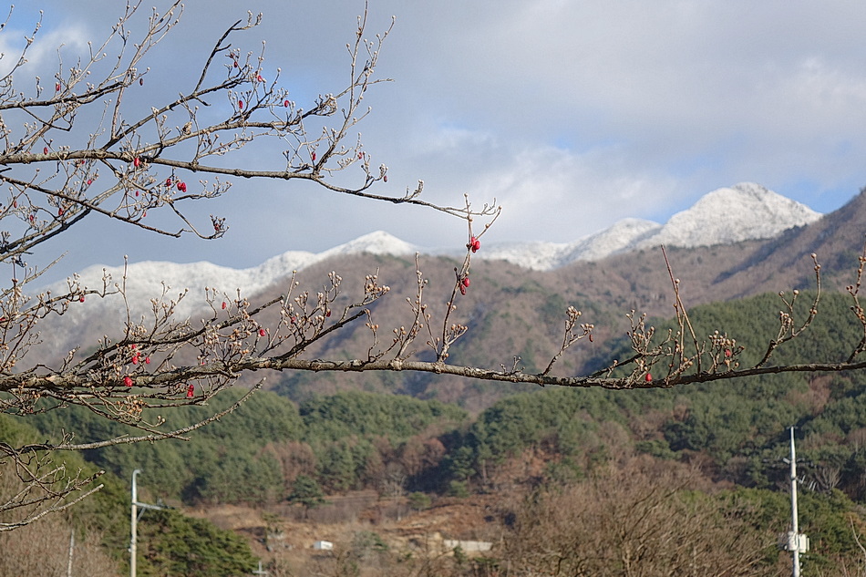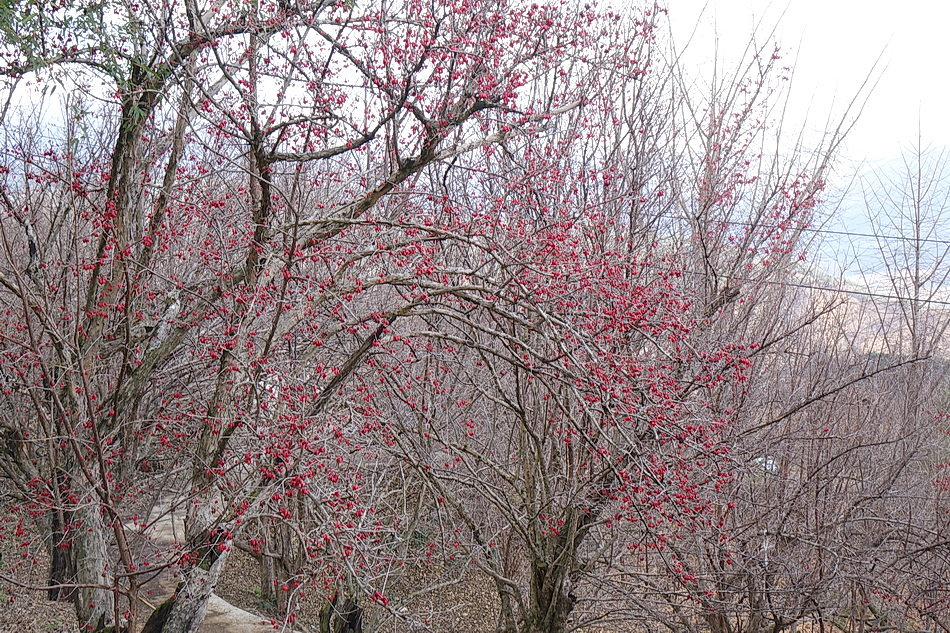 코로나 19가 맹위를 떨치고 있는 때라 눈 덮인 지리산 봉우리들을 조망하기 좋은 언택트 관광지인 구례군 산동면 산수유마을들에 가보았다. 3월이면 산수유꽃들이 피는데도 아직도 붉은 산수유 열매들이 많이 달려 있었다. 우리 부부가 가장 좋아하는 곳이 현천마을이다. 산수유 계절에는 물론이고 사시사철 산책하기도 좋고 시야도 확 띄어서 조망 또한 뛰어난 곳이다.