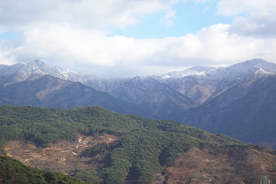 새로운 시멘트 포장도로가 생겨서 더욱 확 트인 지리산 조망이 가능해졌다.