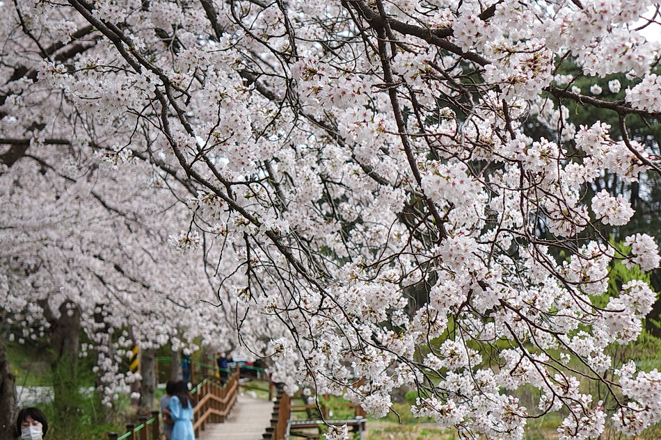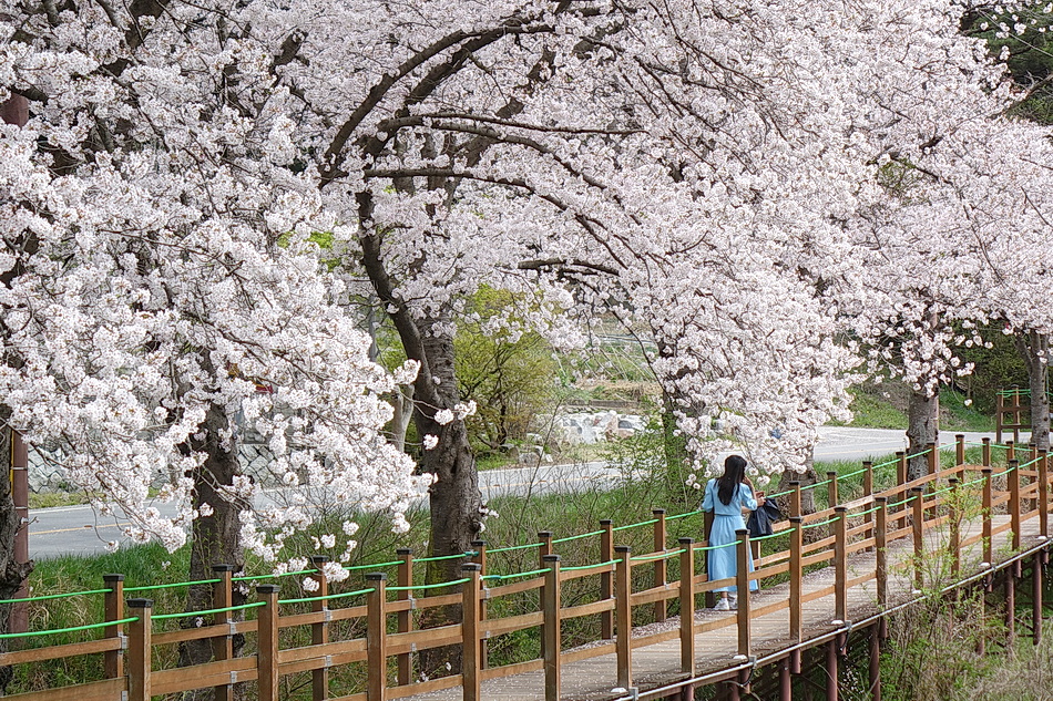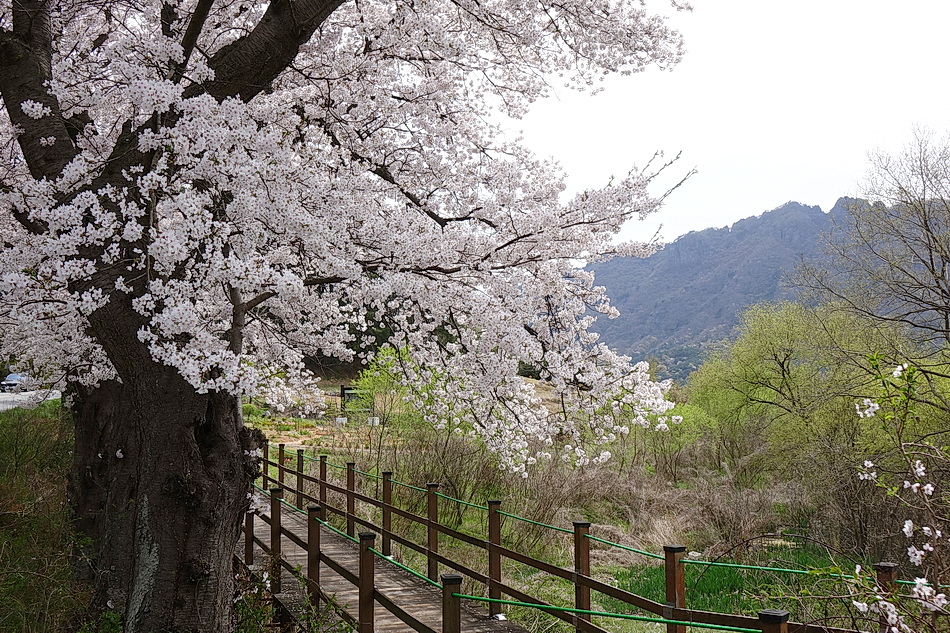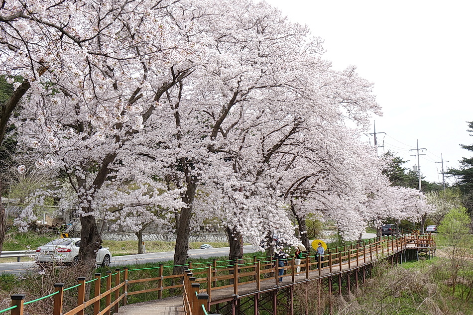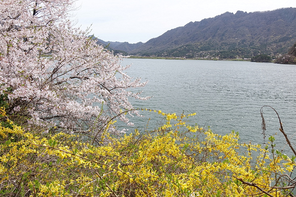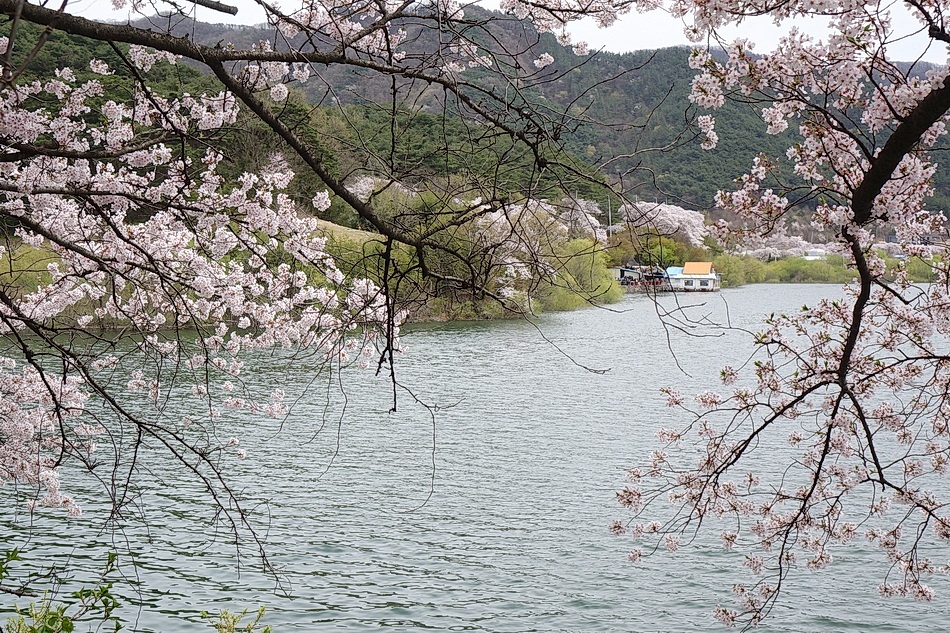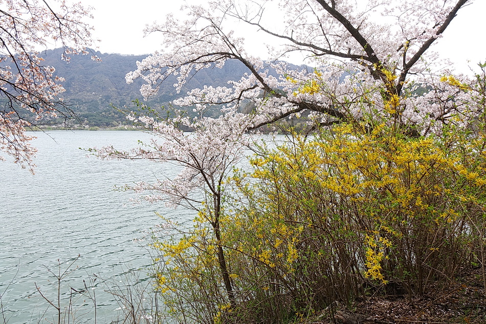김제 모악산 도립공원의 금산사 벚꽃을 보기 위해 백양사에서 내장사를 경유하여 가다 보니 내장저수지의 벚꽃이 화려하게 만개해 있어서 잠시 쉬면서 수변 데크를 걸어보았다. 내장저수지가 굉장히 크기는 하나 인공으로 조성된 곳이라 호수라는 명칭을 쓰지 못하는 것 같다.