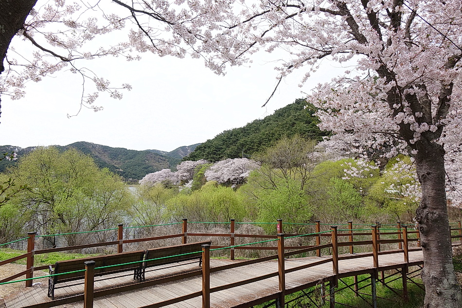 김제 모악산 도립공원의 금산사 벚꽃을 보기 위해 백양사에서 내장사를 경유하여 가다 보니 내장저수지의 벚꽃이 화려하게 만개해 있어서 잠시 쉬면서 수변 데크를 걸어보았다. 내장저수지가 굉장히 크기는 하나 인공으로 조성된 곳이라 호수라는 명칭을 쓰지 못하는 것 같다.