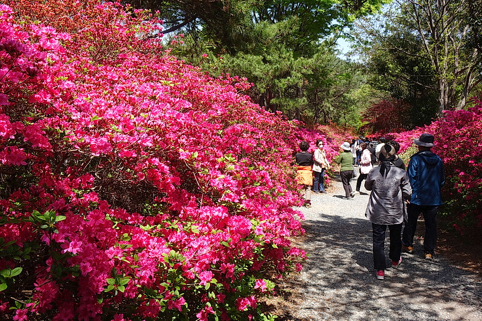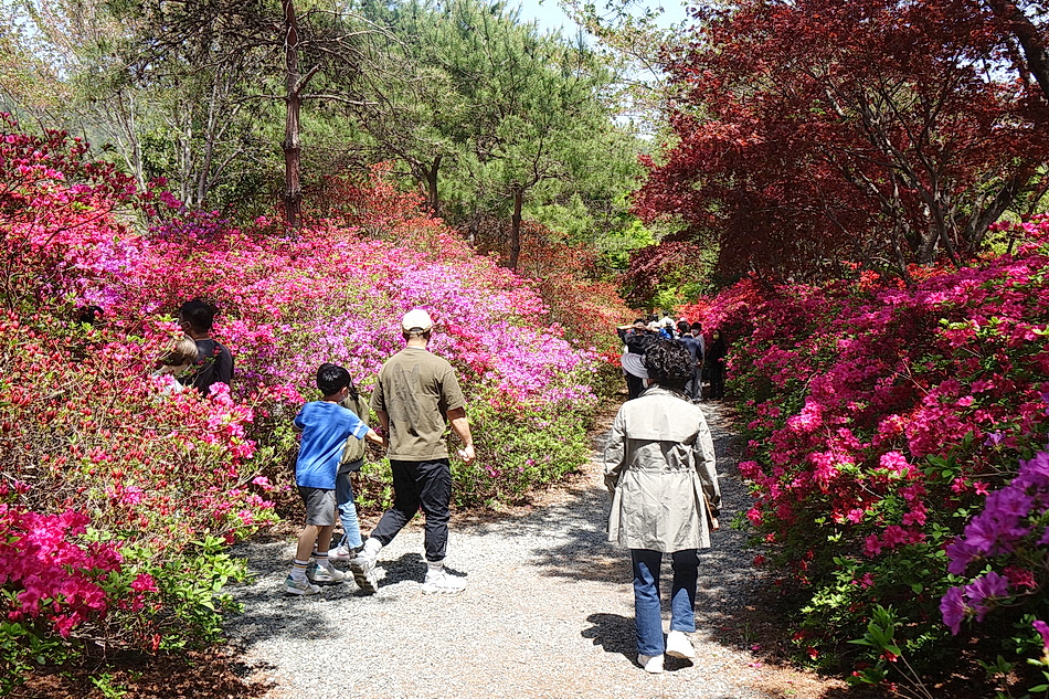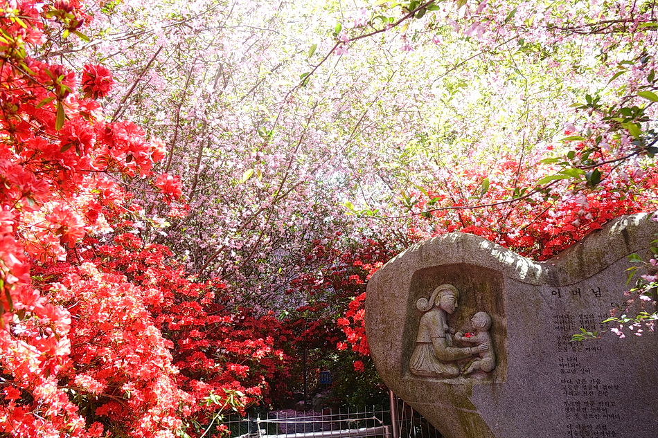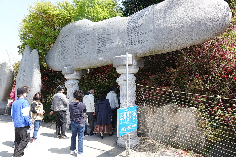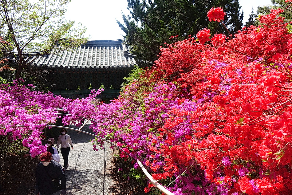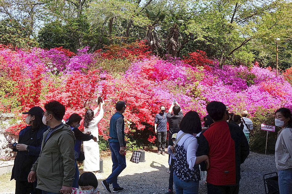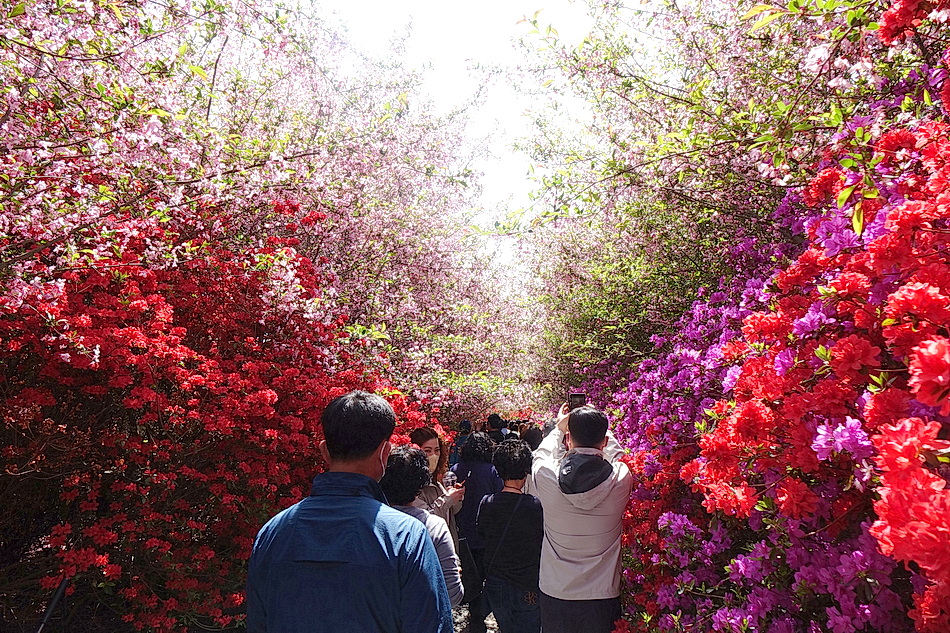 작년에 강진 남미륵사의 서부해당화 꽃의 만개 시기를 놓쳐서 올해에는 꼭 만개한 서부해당화 꽃을 보려고 남미륵사를 향해가는데 절 1km 전방부터 엄청난 차량들이 몰려서 주차장에 도착하는데만 1시간 이상의 시간이 소요되었다. 몇 년 만에 처음인 심한 체증과 엄청난 인파들을 경험하였다. 남미륵사는 좀 특이해서 미로처럼 다양한 색깔의 철쭉꽃 울타리로 만들어진 좁은 관람로를 따라 일방통행으로만 갈 수 있어서 인파에 시달려서 되돌아 나오고 싶어도 되돌아 나올 수가 없는 구조였다. 보고 싶었던 일주문 근처의 서부해당화 꽃들은 이미 절정을 지나 꽃들이 퇴색되었고 많이 떨어져 본래의 자태를 잃어버렸었다. 취향에 따라 다르겠지만 다시는 가고 싶지 않은 곳이었다.