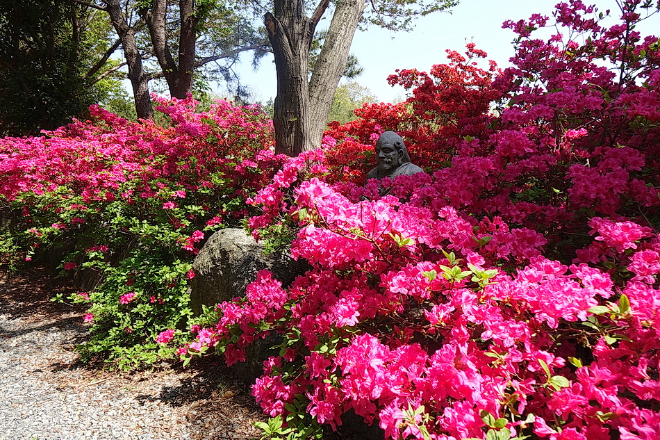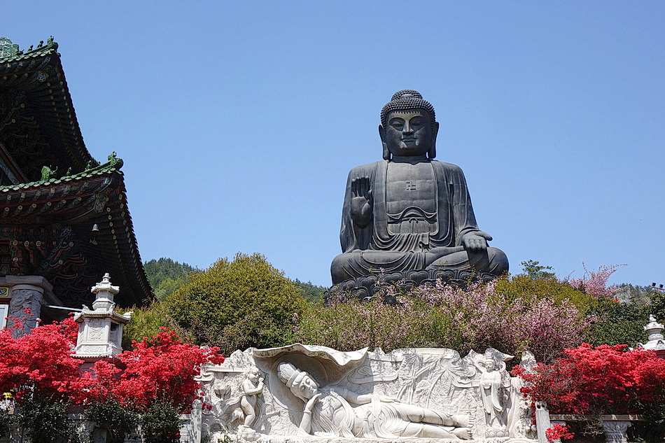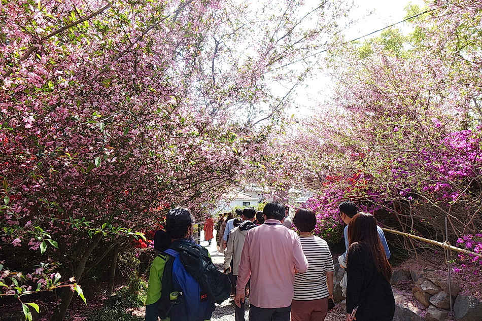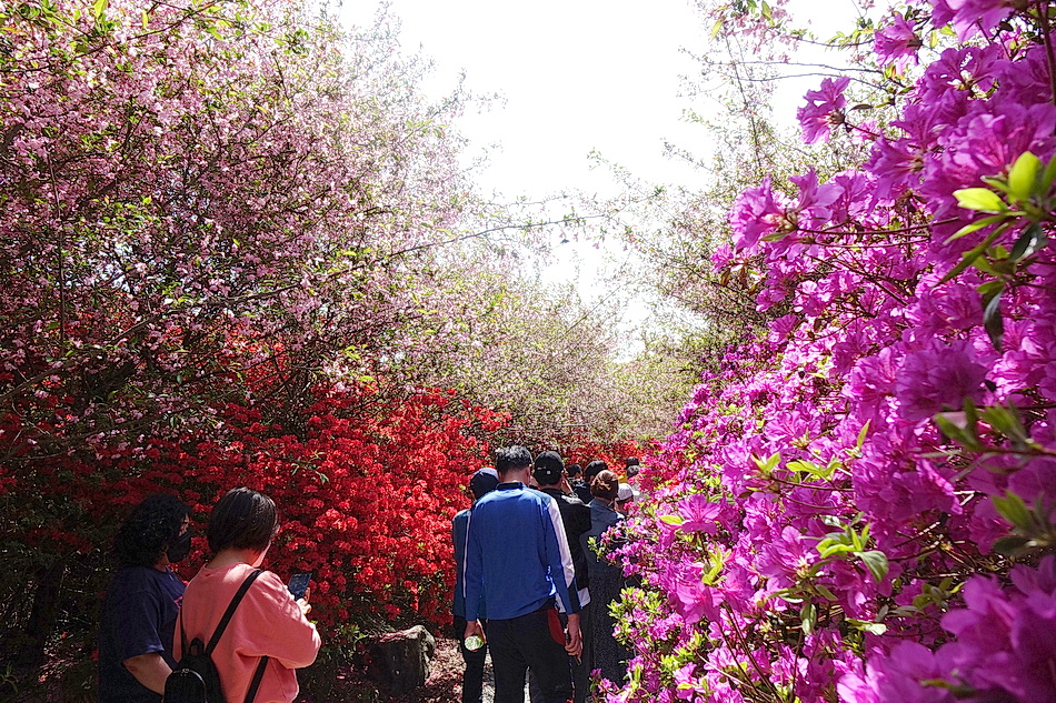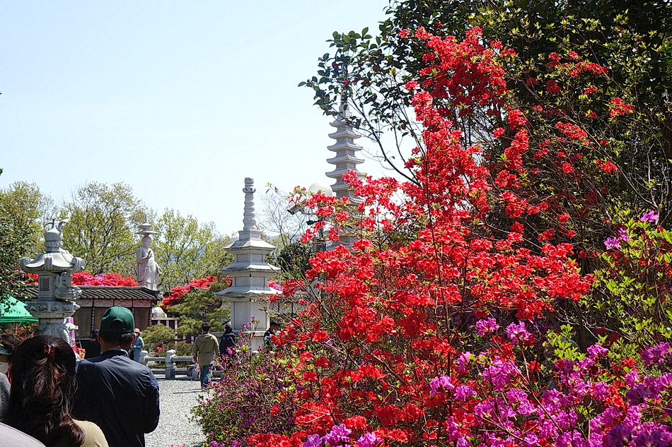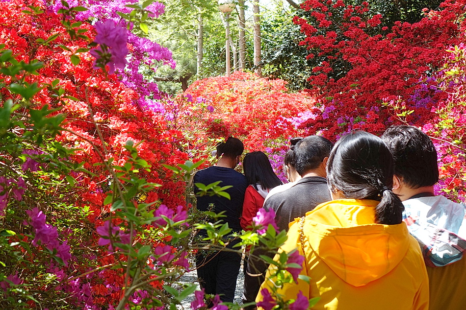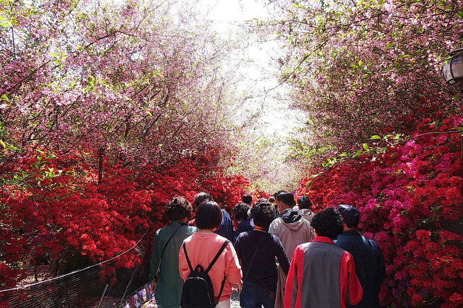 작년에 강진 남미륵사의 서부해당화 꽃의 만개 시기를 놓쳐서 올해에는 꼭 만개한 서부해당화 꽃을 보려고 남미륵사를 향해가는데 절 1km 전방부터 엄청난 차량들이 몰려서 주차장에 도착하는데만 1시간 이상의 시간이 소요되었다. 몇 년 만에 처음인 심한 체증과 엄청난 인파들을 경험하였다. 남미륵사는 좀 특이해서 미로처럼 다양한 색깔의 철쭉꽃 울타리로 만들어진 좁은 관람로를 따라 일방통행으로만 갈 수 있어서 인파에 시달려서 되돌아 나오고 싶어도 되돌아 나올 수가 없는 구조였다. 보고 싶었던 일주문 근처의 서부해당화 꽃들은 이미 절정을 지나 꽃들이 퇴색되었고 많이 떨어져 본래의 자태를 잃어버렸었다. 취향에 따라 다르겠지만 다시는 가고 싶지 않은 곳이었다.