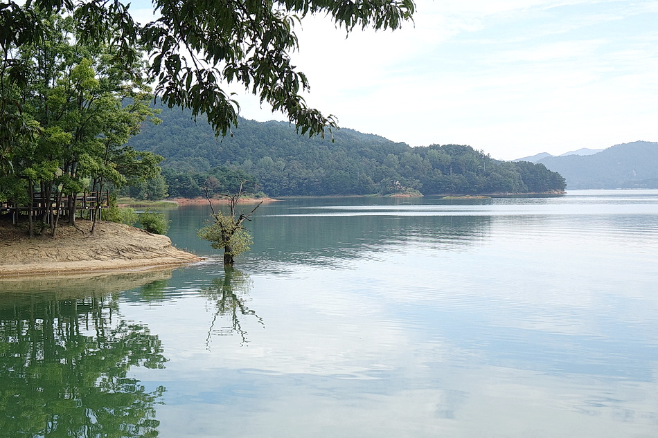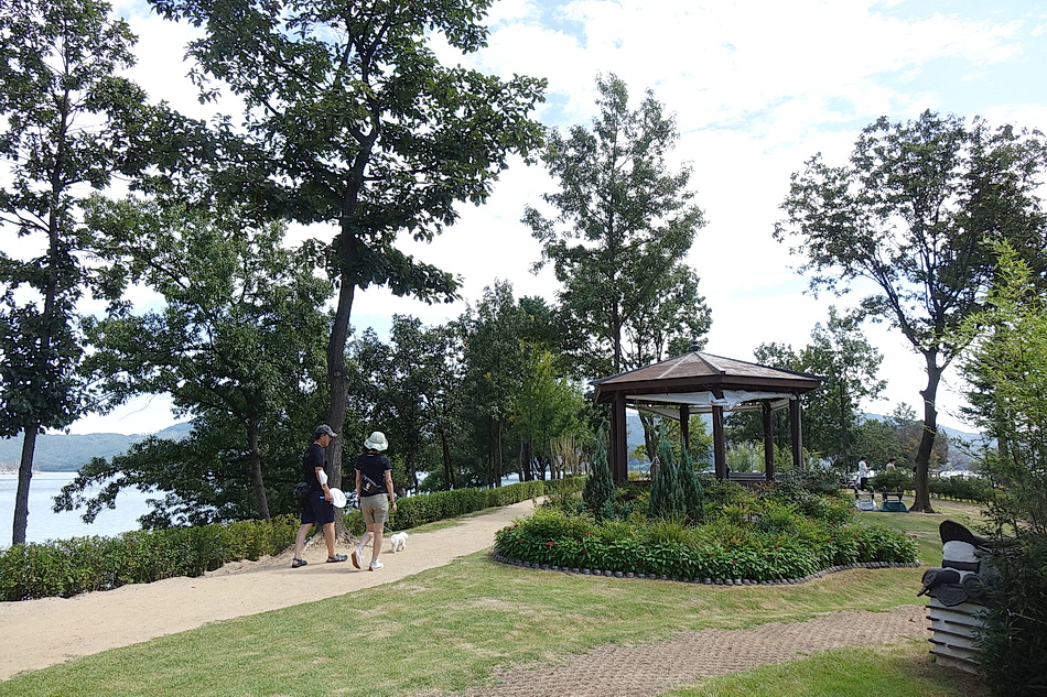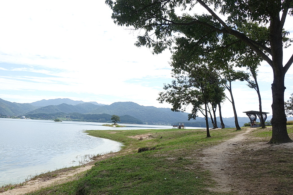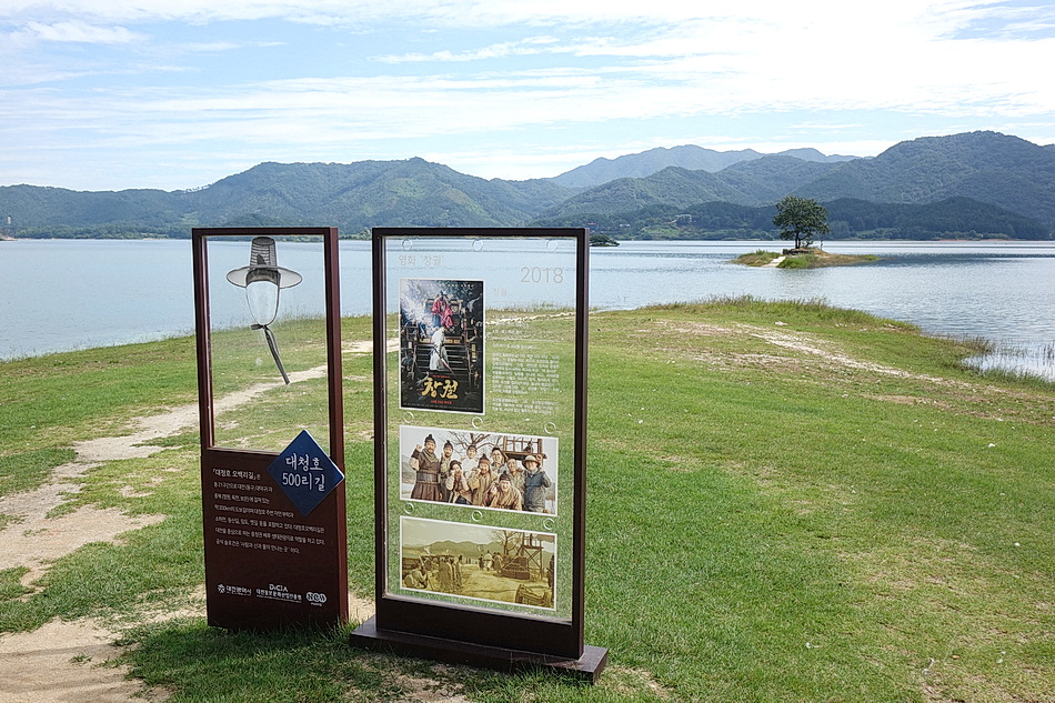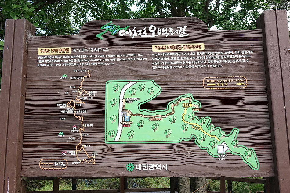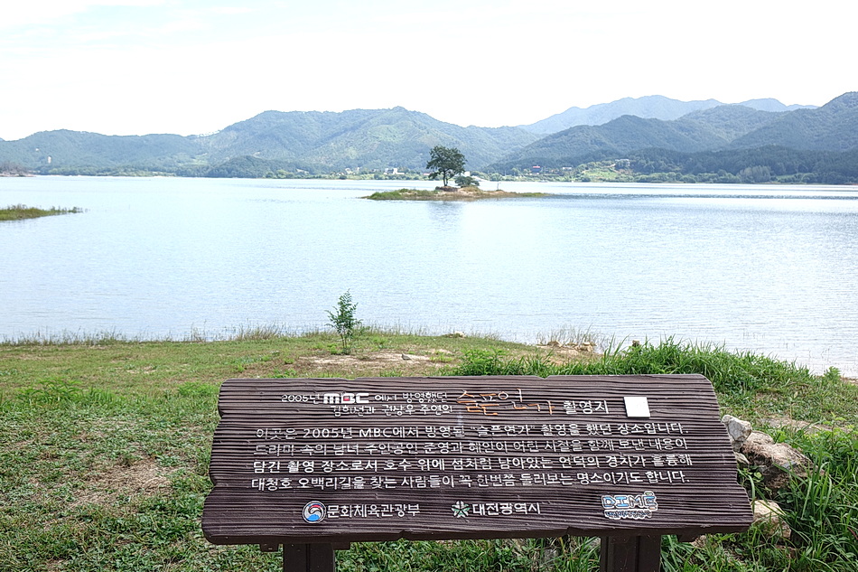 대청호 오 백 리 길 중에서 가장 아름답다고 하는 명상정원과 슬픈 연가 촬영지를 호숫가에 설치된 나무데크와 탐방로를 따라 구경하고 되돌아오는 코스(편도:1.1km).