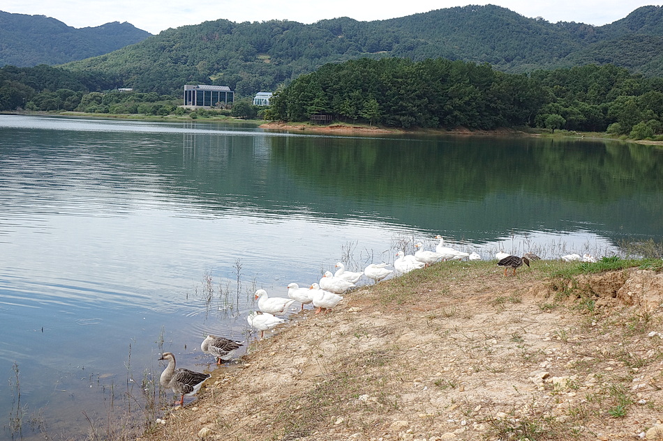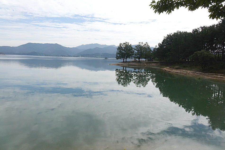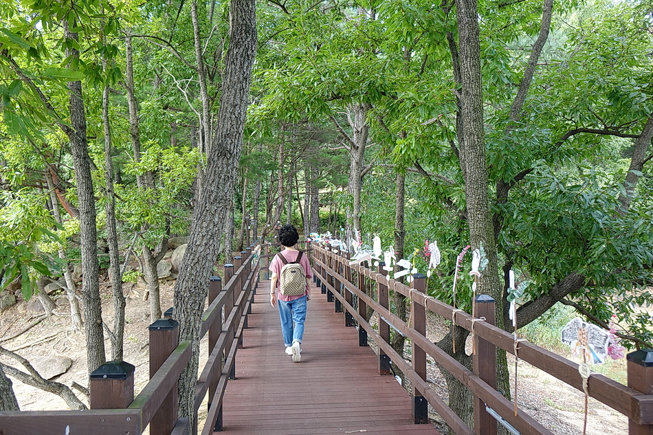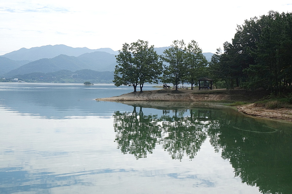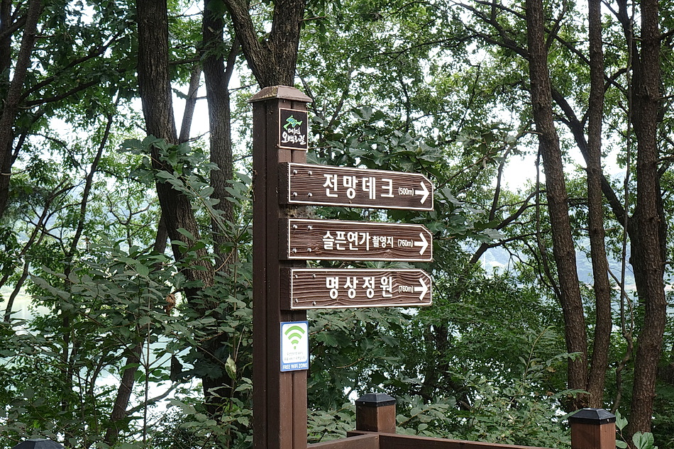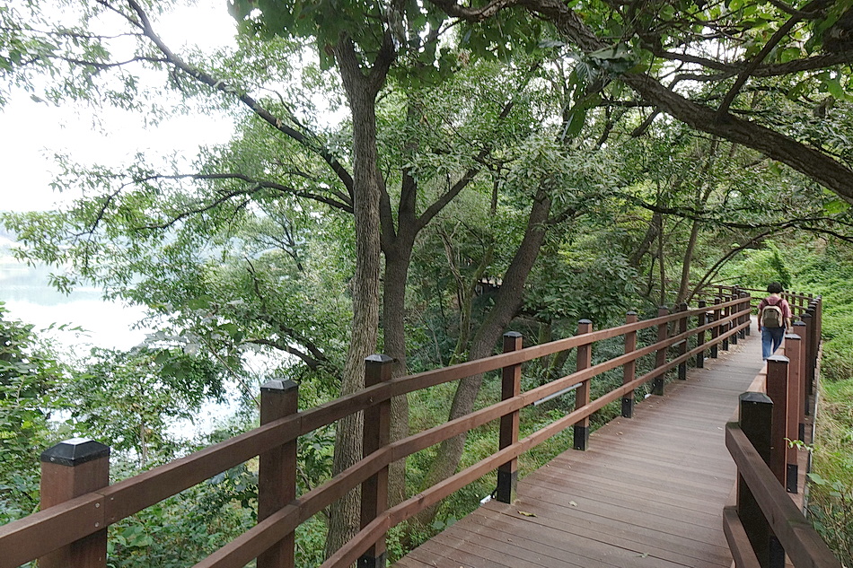 대청호 오 백 리 길 중에서 가장 아름답다고 하는 명상정원과 슬픈 연가 촬영지를 호숫가에 설치된 나무데크와 탐방로를 따라 구경하고 되돌아오는 코스(편도:1.1km).