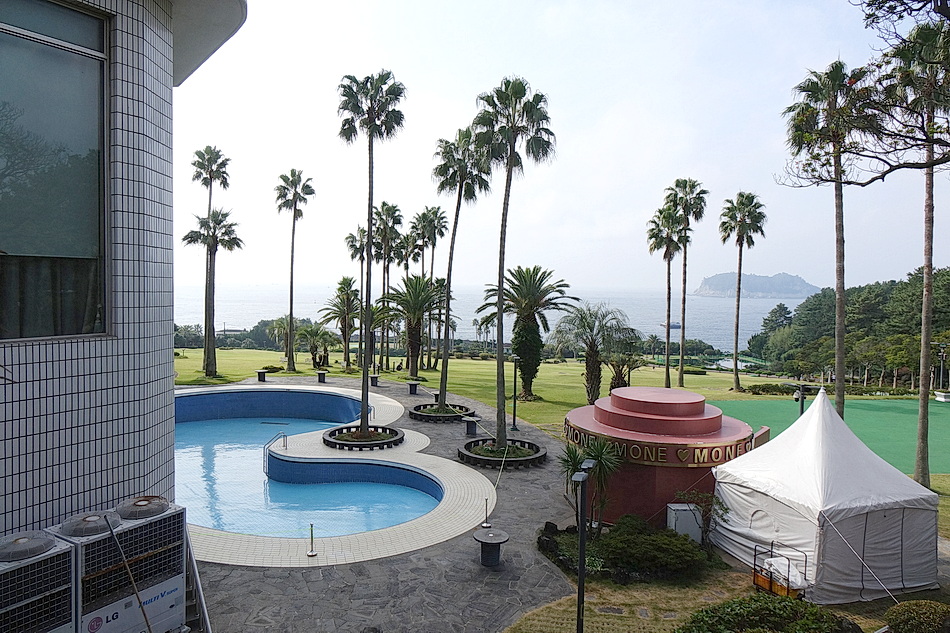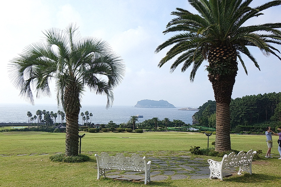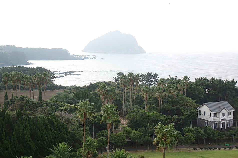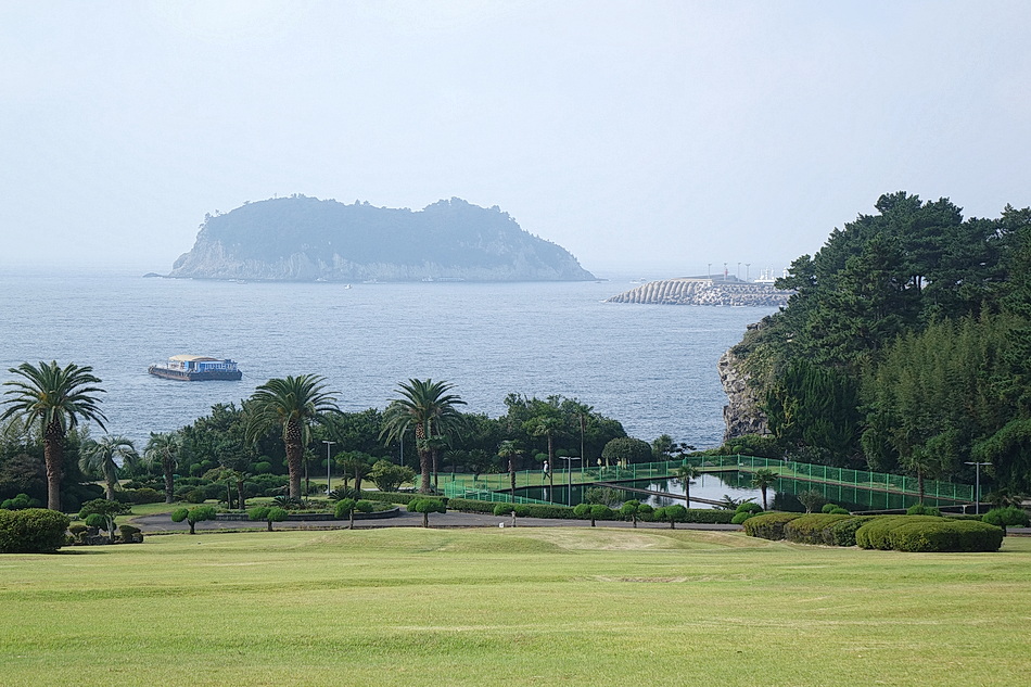 서귀포칼호텔에서의 풍경. 이곳의 아침 뷔페는 종류도 다양하고 아주 좋았다. 섶섬이 보인다.