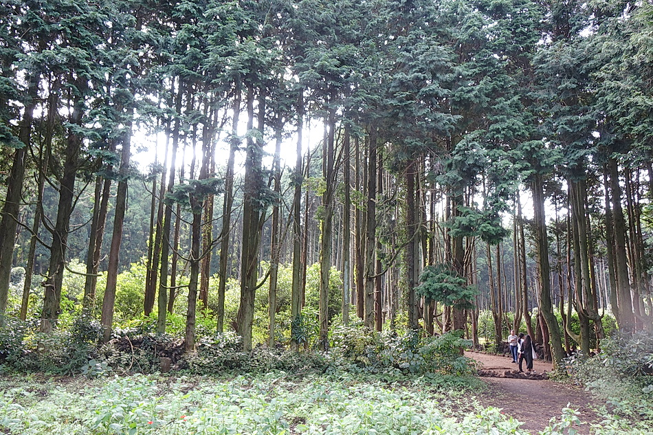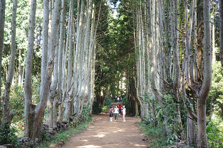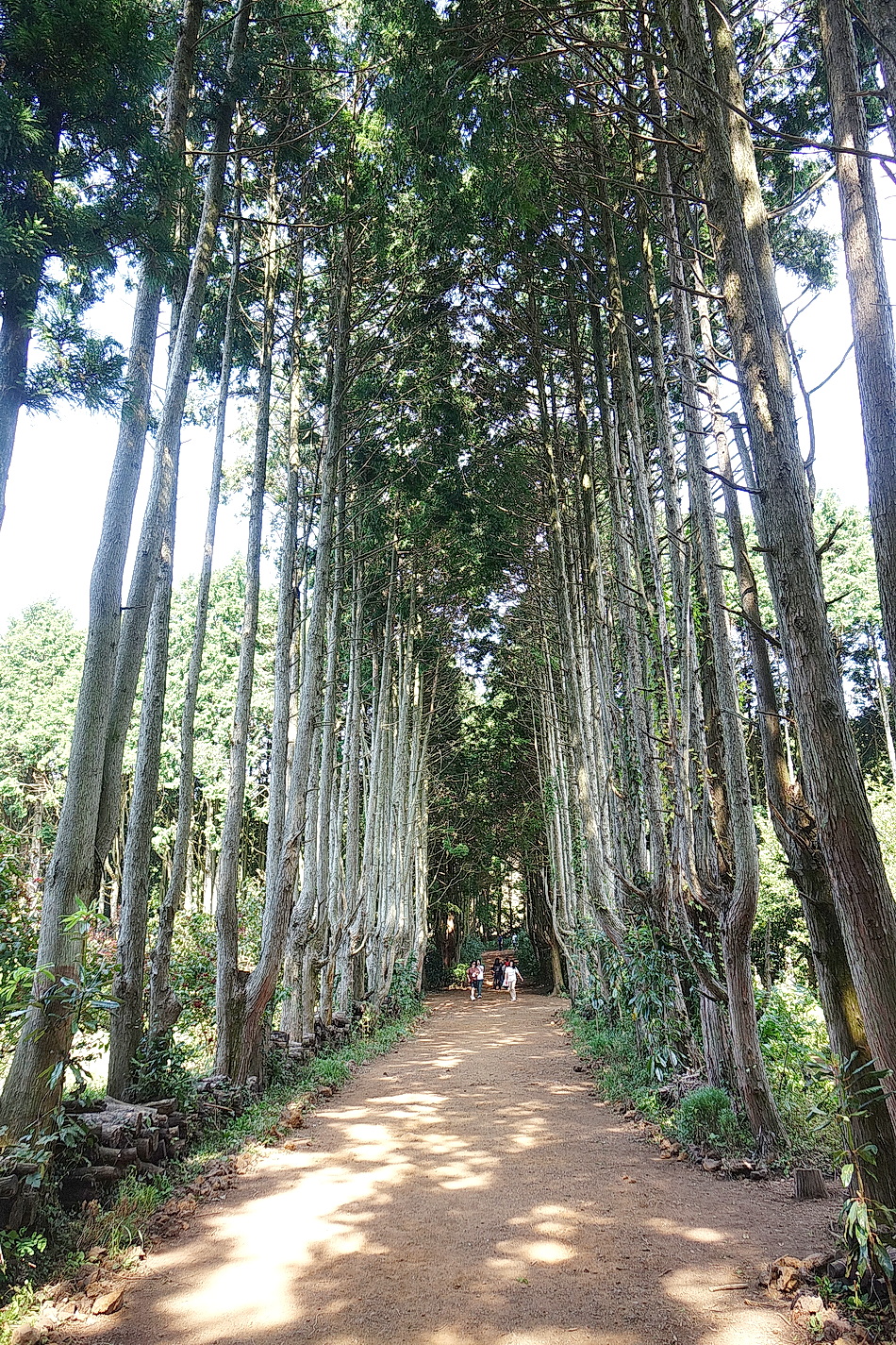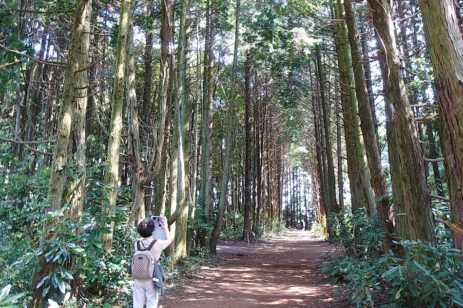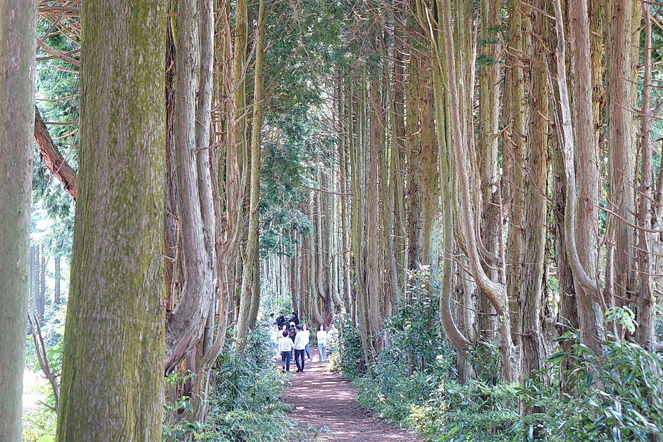 최근에 인기가 있는 제주 비밀의 숲은 특이한 Y자 형태의 키가 큰 편백나무들이 양옆으로 늘어서 있는 미로 같은 좁은 산책로를 따라 시계 반대 방향으로 환상으로 간 후 원점으로 돌아오는 작은 산림욕장(3-~40분 소요) 같은 곳이었다. 아쉬운 점은 쉴 수 있는 공간이나 벤치들이 입구 외에는 거의 없다는 점이다.
