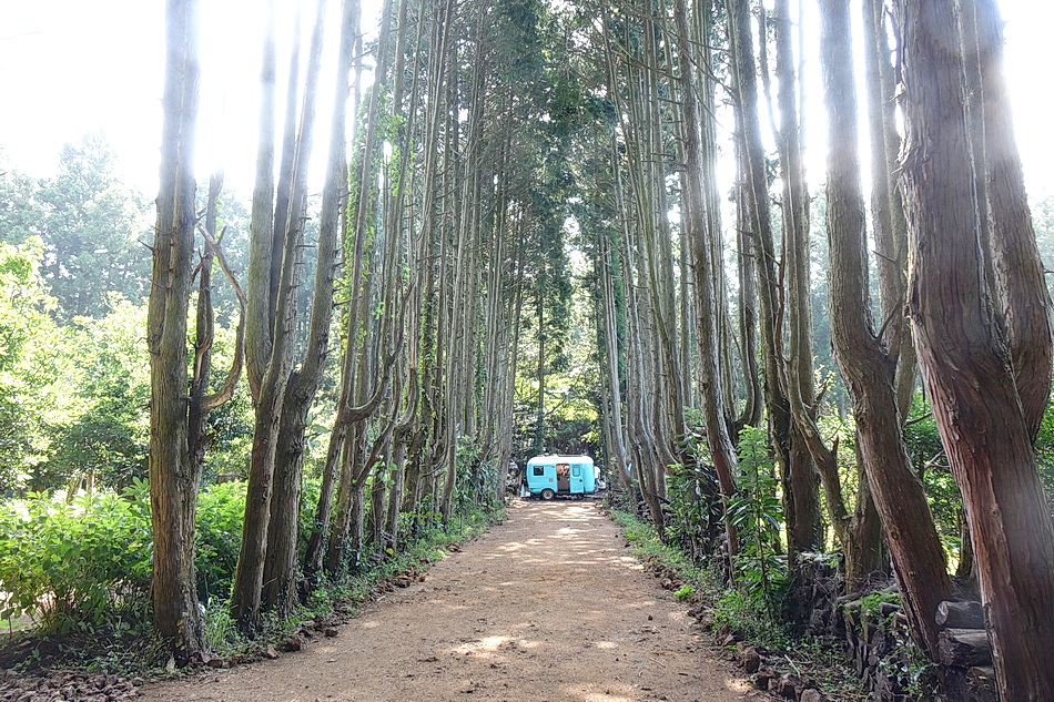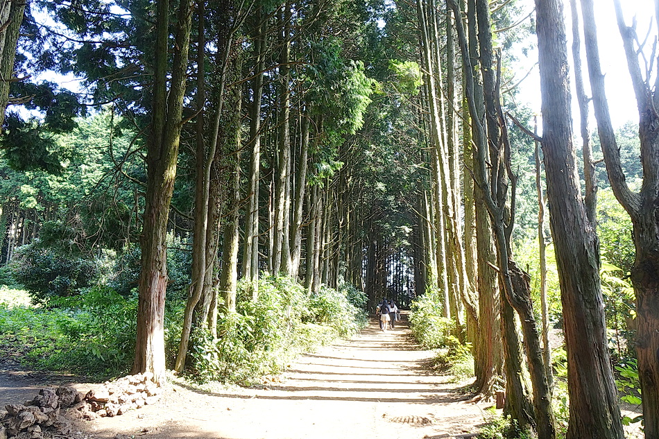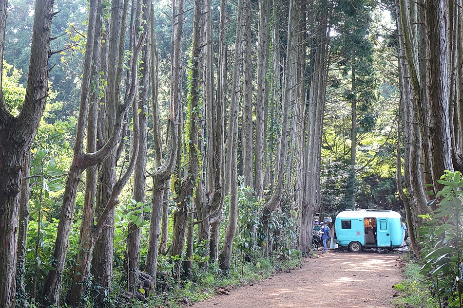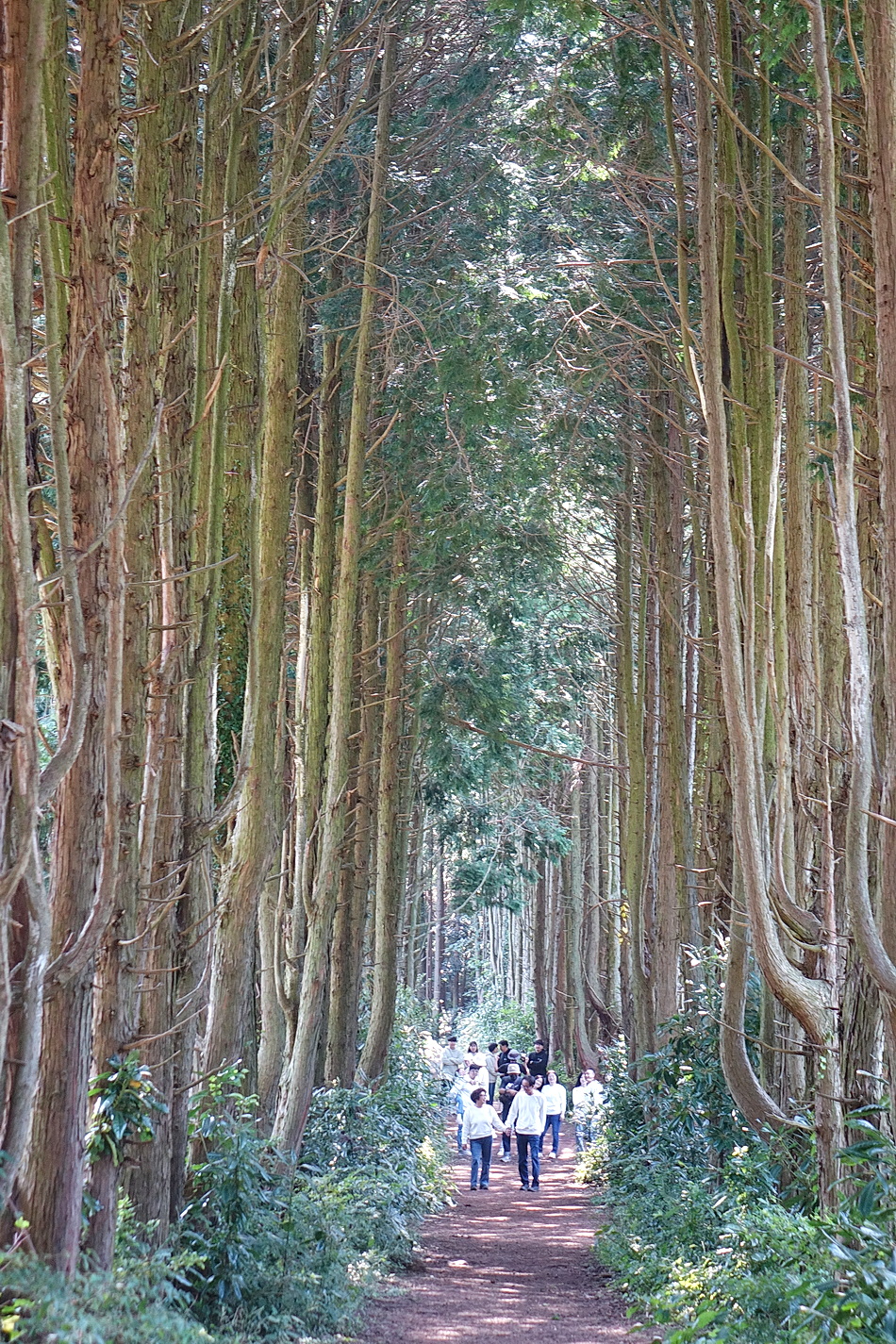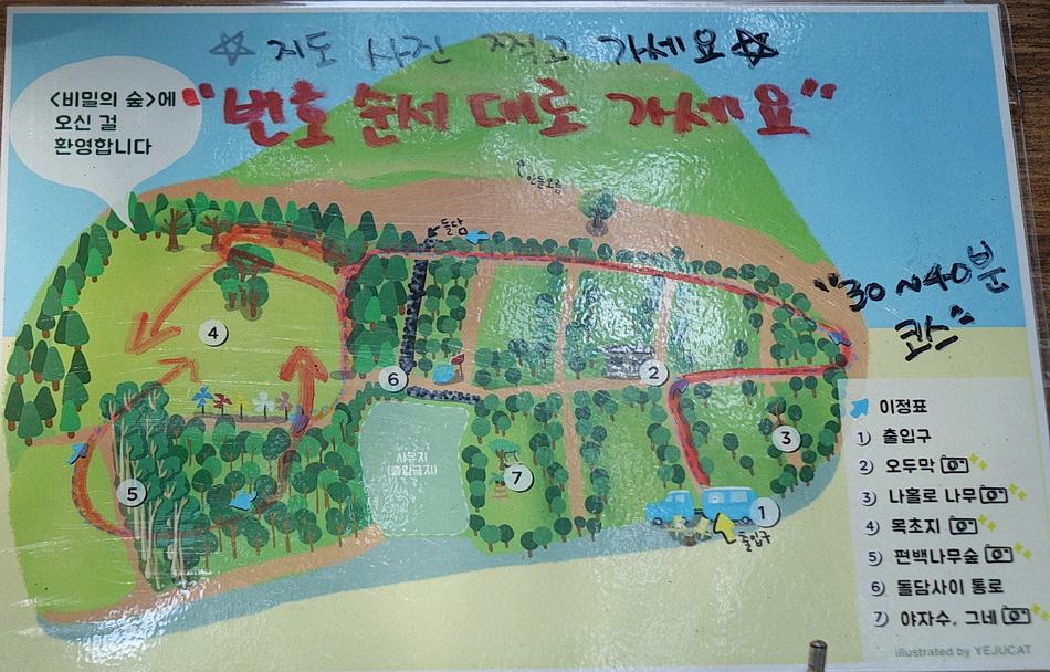 최근에 인기가 있는 제주 비밀의 숲은 특이한 Y자 형태의 키가 큰 편백나무들이 양옆으로 늘어서 있는 미로 같은 좁은 산책로를 따라 시계 반대 방향으로 환상으로 간 후 원점으로 돌아오는 작은 산림욕장(3-~40분 소요) 같은 곳이었다. 아쉬운 점은 쉴 수 있는 공간이나 벤치들이 입구 외에는 거의 없다는 점이다.