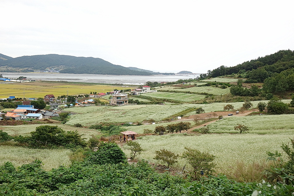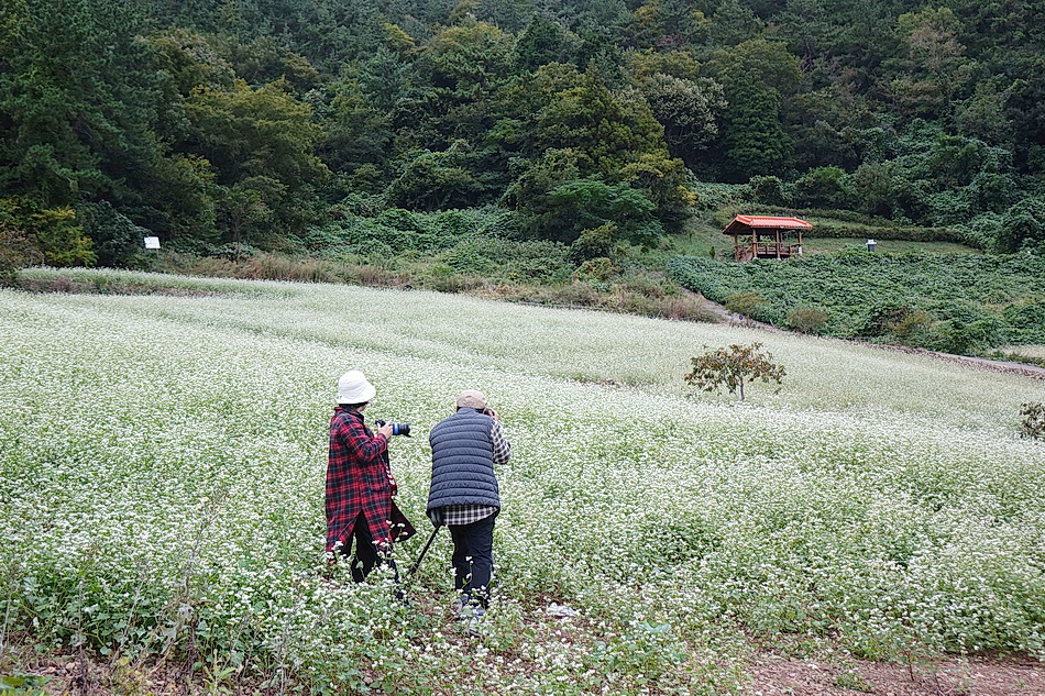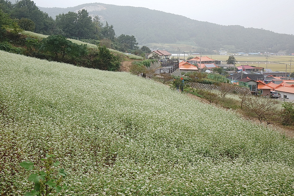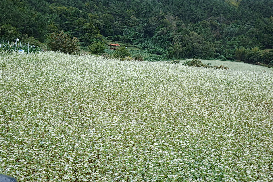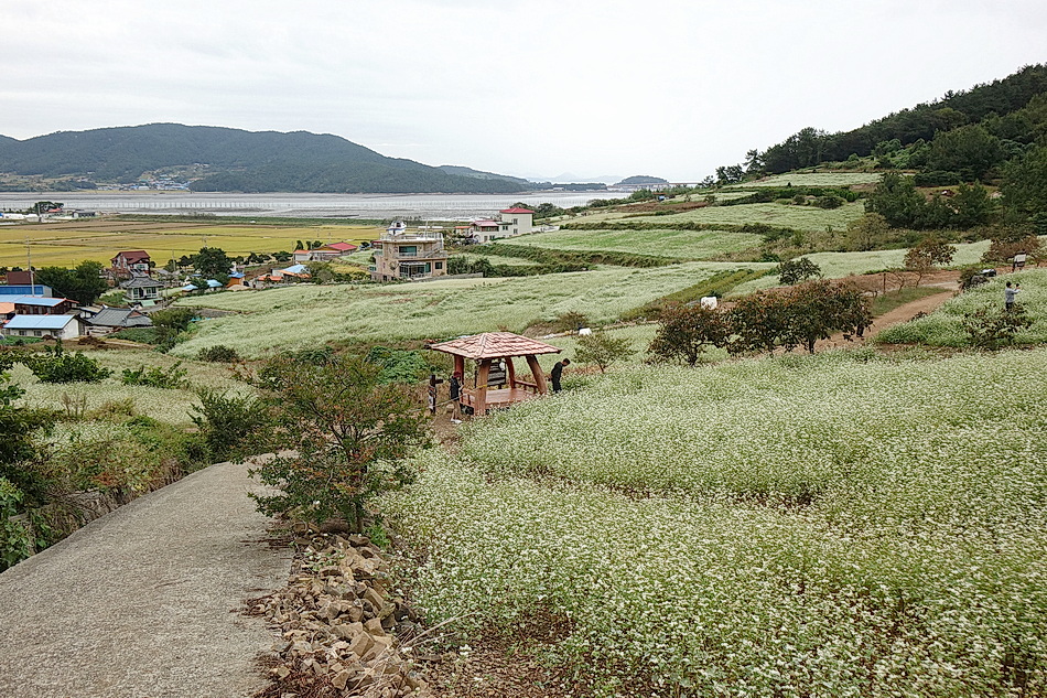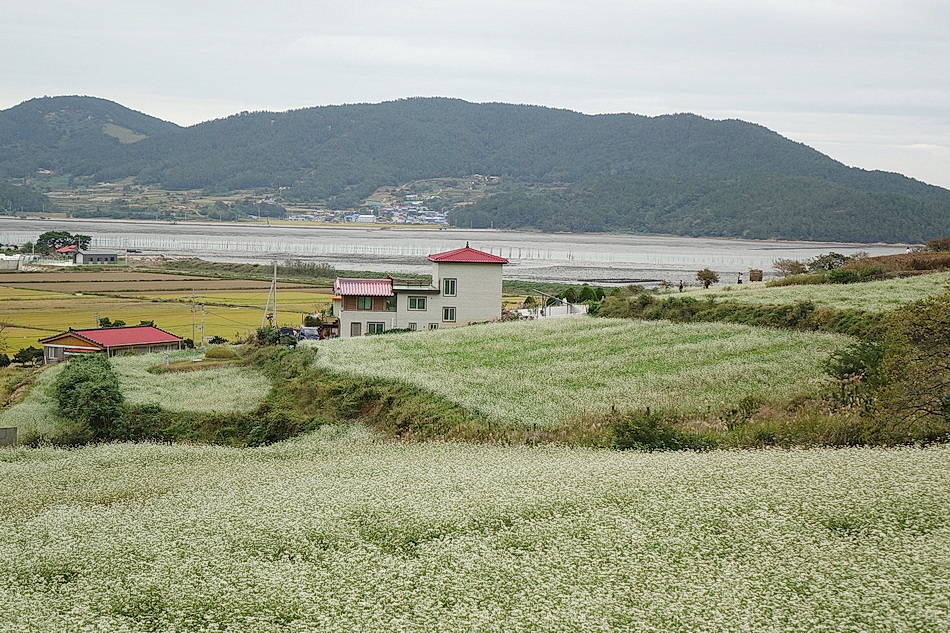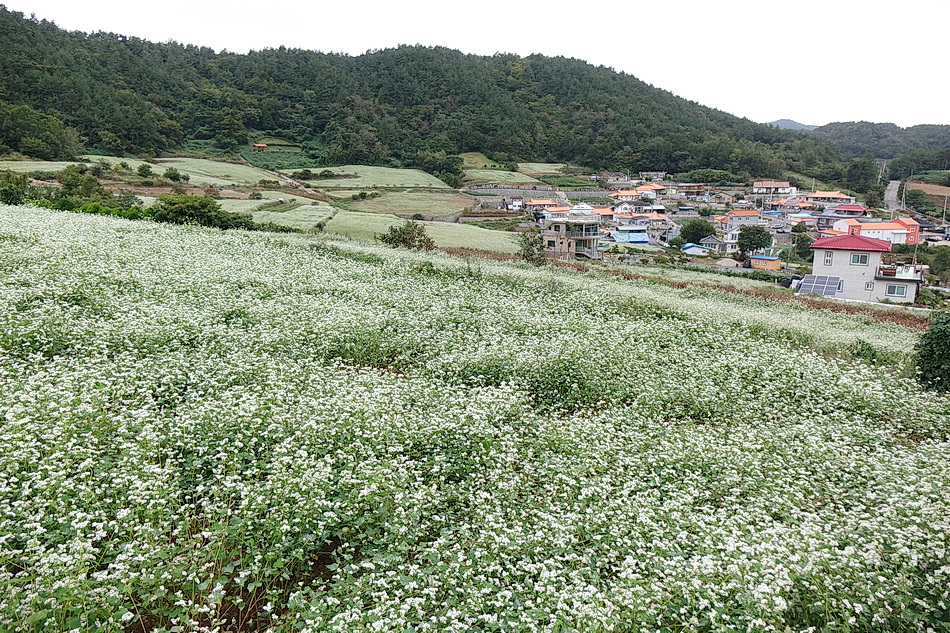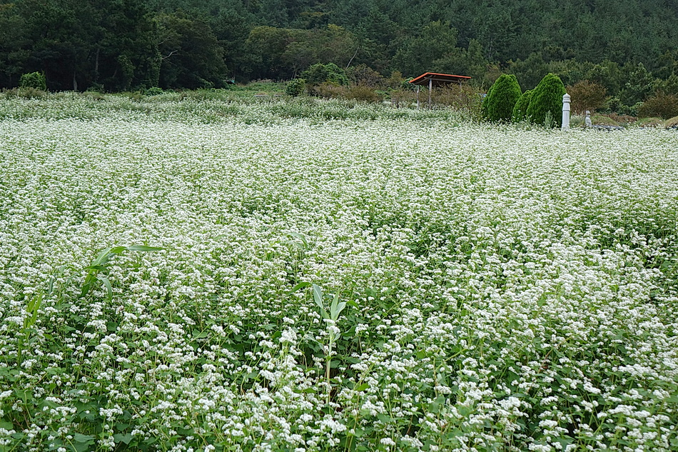 장흥 선학동의 유채꽃은 여러 번 가봤으나 이번에는 메밀꽃이 만개했다고 해서 가보았다. 메밀꽃이 흔히보는 키가 큰 메밀이 아니고 키가 작은 메밀꽃이라 전체가 진한 하얀색을 보지 못해 약간 아쉬웠다.