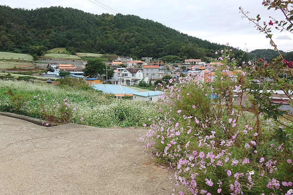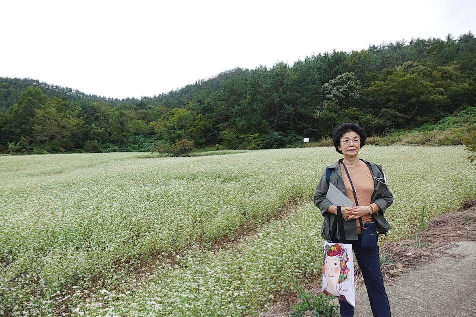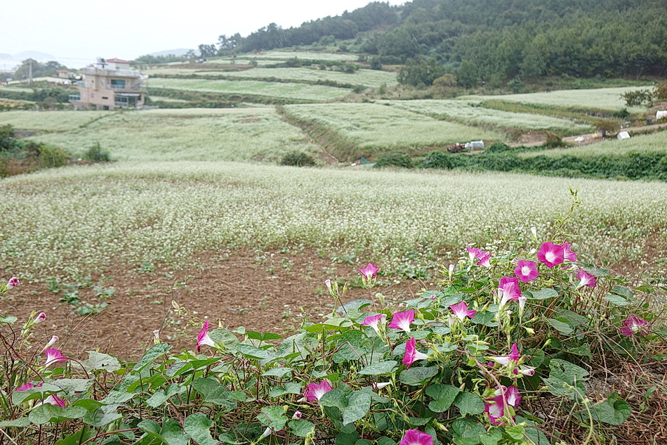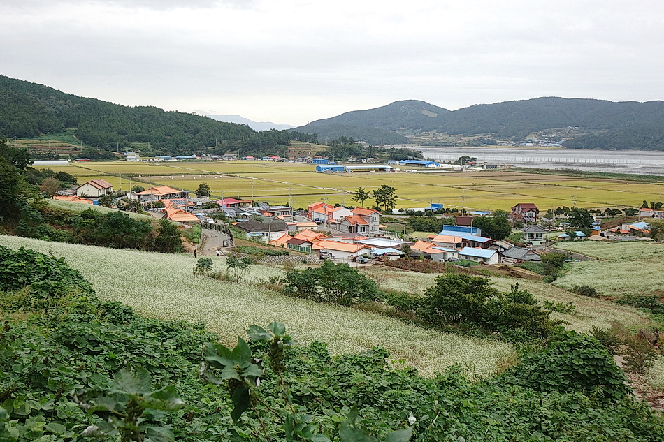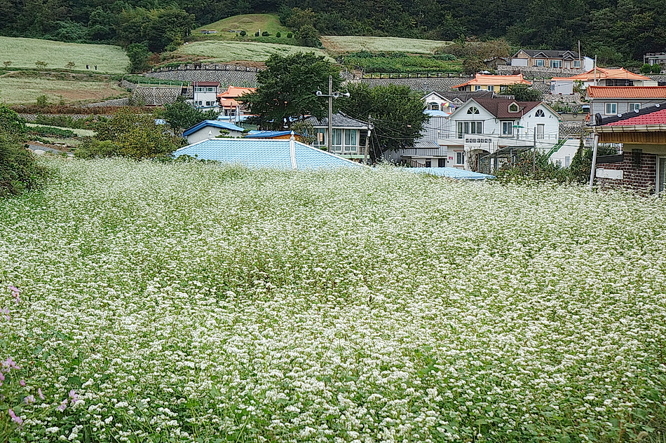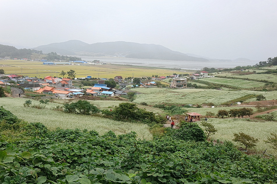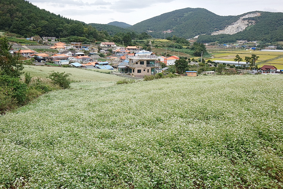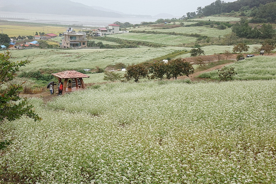 장흥 선학동의 유채꽃은 여러 번 가봤으나 이번에는 메밀꽃이 만개했다고 해서 가보았다. 메밀꽃이 흔히보는 키가 큰 메밀이 아니고 키가 작은 메밀꽃이라 전체가 진한 하얀색을 보지 못해 약간 아쉬웠다.
