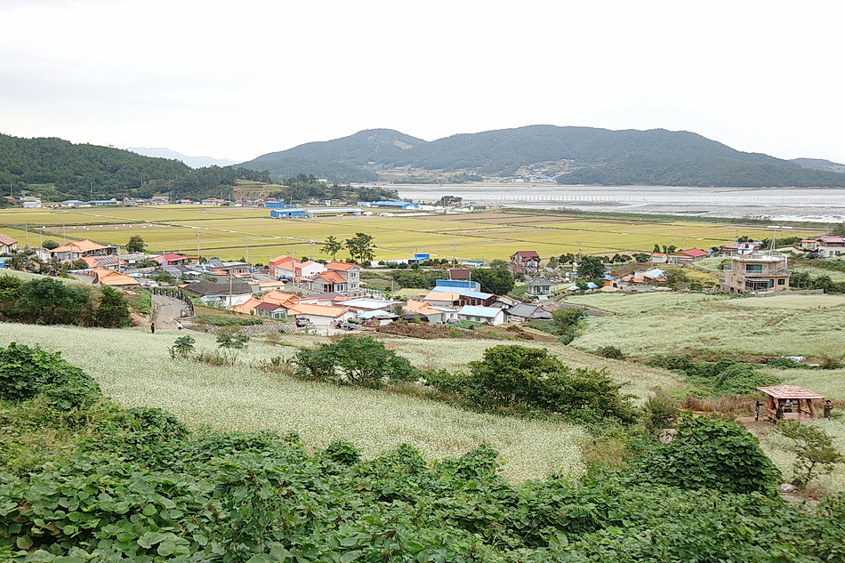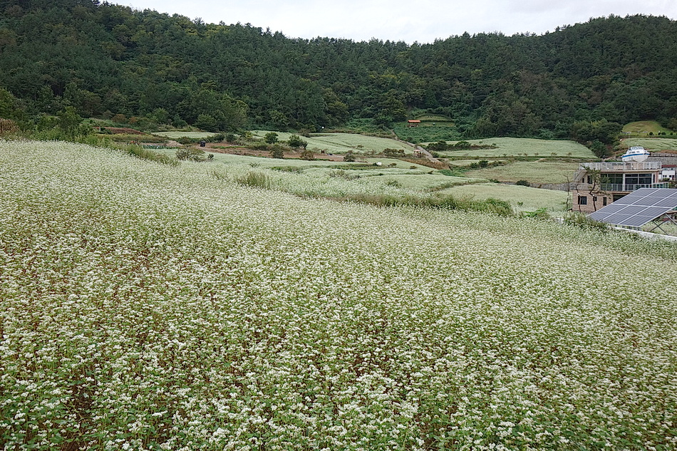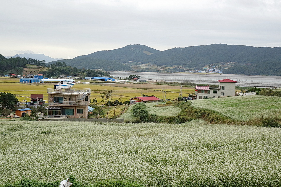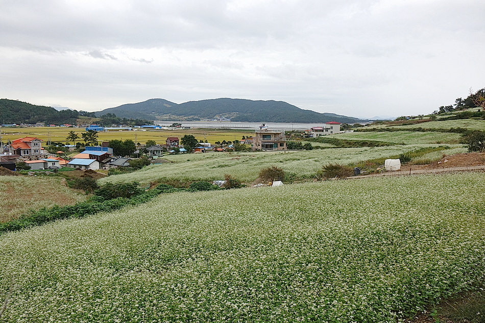 장흥 선학동의 유채꽃은 여러 번 가봤으나 이번에는 메밀꽃이 만개했다고 해서 가보았다. 메밀꽃이 흔히보는 키가 큰 메밀이 아니고 키가 작은 메밀꽃이라 전체가 진한 하얀색을 보지 못해 약간 아쉬웠다.