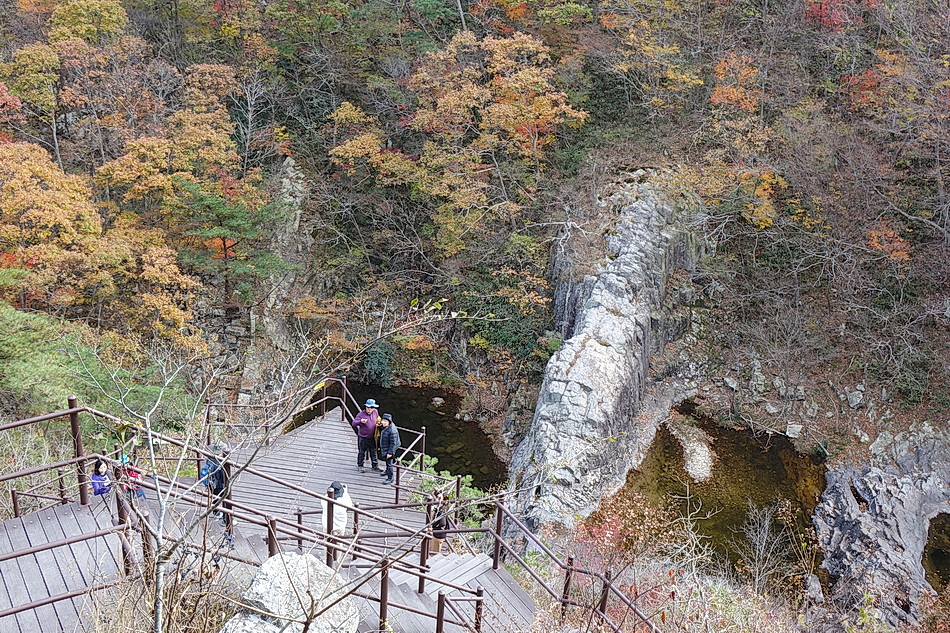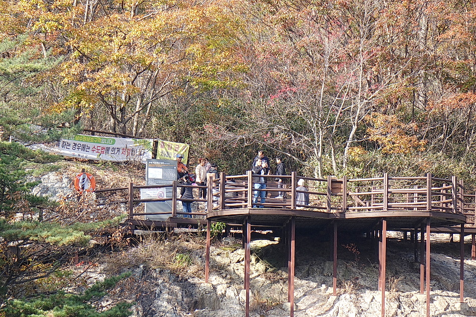 단풍시즌이어서 가는 곳마다 인파가 붐벼서 가능한 호적한 곳을 찾기 위해 변산 직소폭포에 가보았다. 전보다 관광객들이 많이 늘었으나 이곳은 젊은 사람들보다 연로하신 부모님들을 동반한 가족단위의 관광객들이 많았다. 사시사철 추천하는 관광코스인데 다만 아쉬운 점은 긴 가을 가뭄으로 직소폭포의 수량이 말라버렸다는 점이었다.