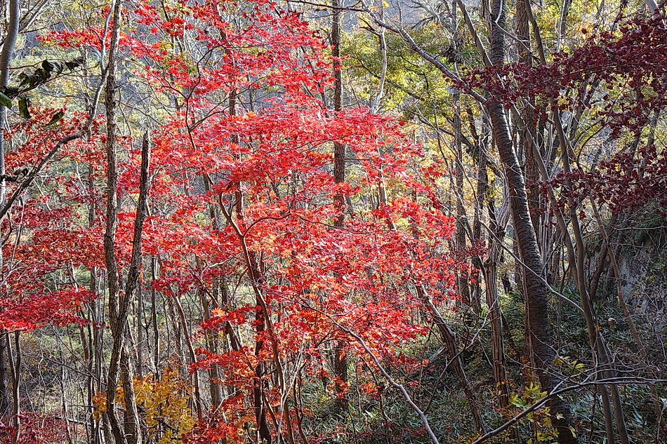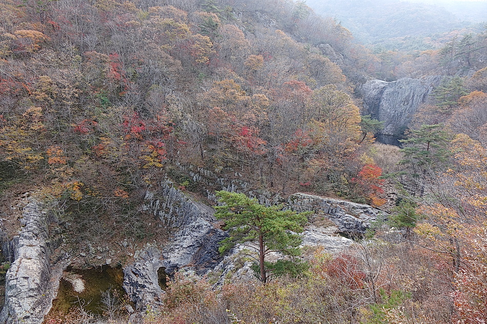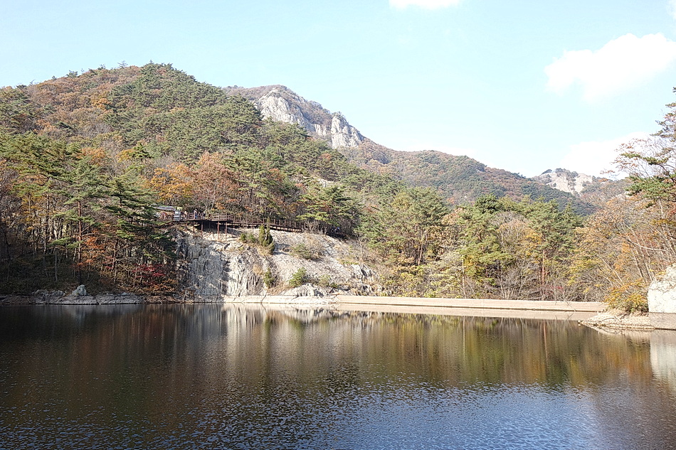 단풍시즌이어서 가는 곳마다 인파가 붐벼서 가능한 호적한 곳을 찾기 위해 변산 직소폭포에 가보았다. 전보다 관광객들이 많이 늘었으나 이곳은 젊은 사람들보다 연로하신 부모님들을 동반한 가족단위의 관광객들이 많았다. 사시사철 추천하는 관광코스인데 다만 아쉬운 점은 긴 가을 가뭄으로 직소폭포의 수량이 말라버렸다는 점이었다.