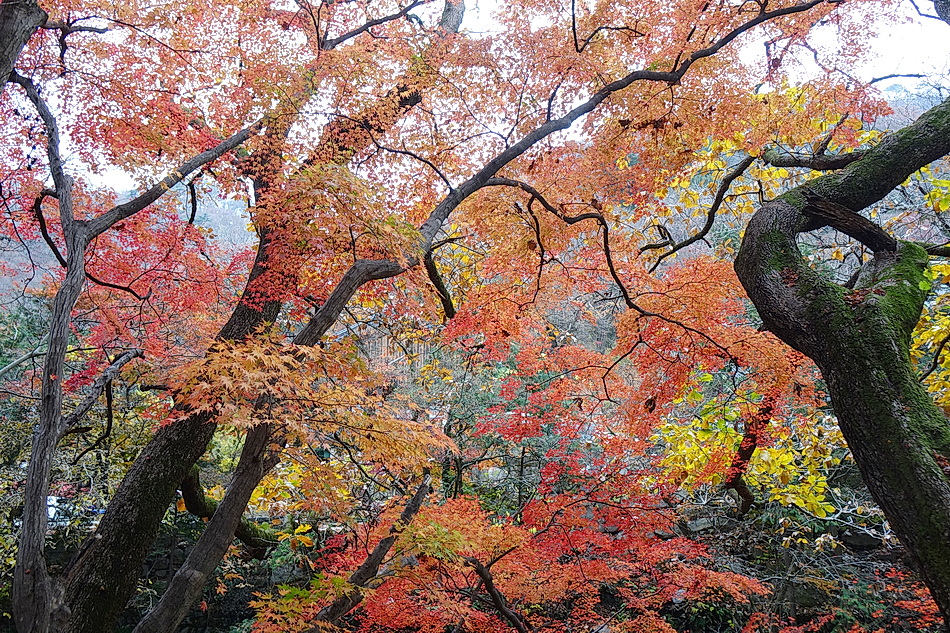 지난 주가 백양사 단풍의 피크라고 생각하고 산책하기 위해 오후 늦게 백양사에 도착해 보니 아직도 붉은 단풍들이 많이 남아있었다.