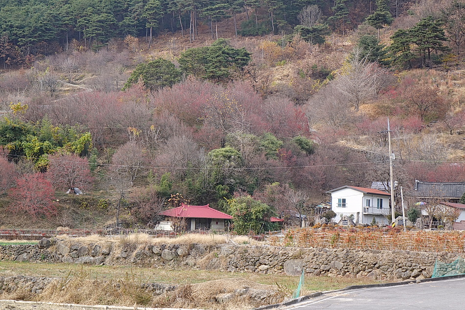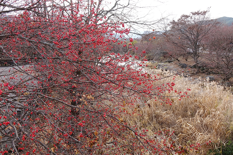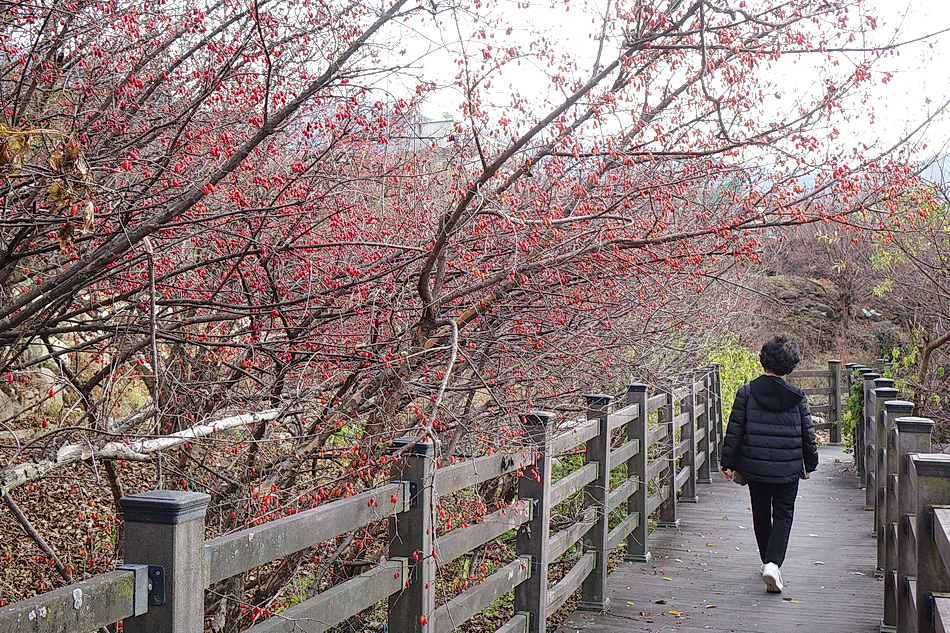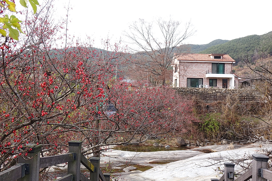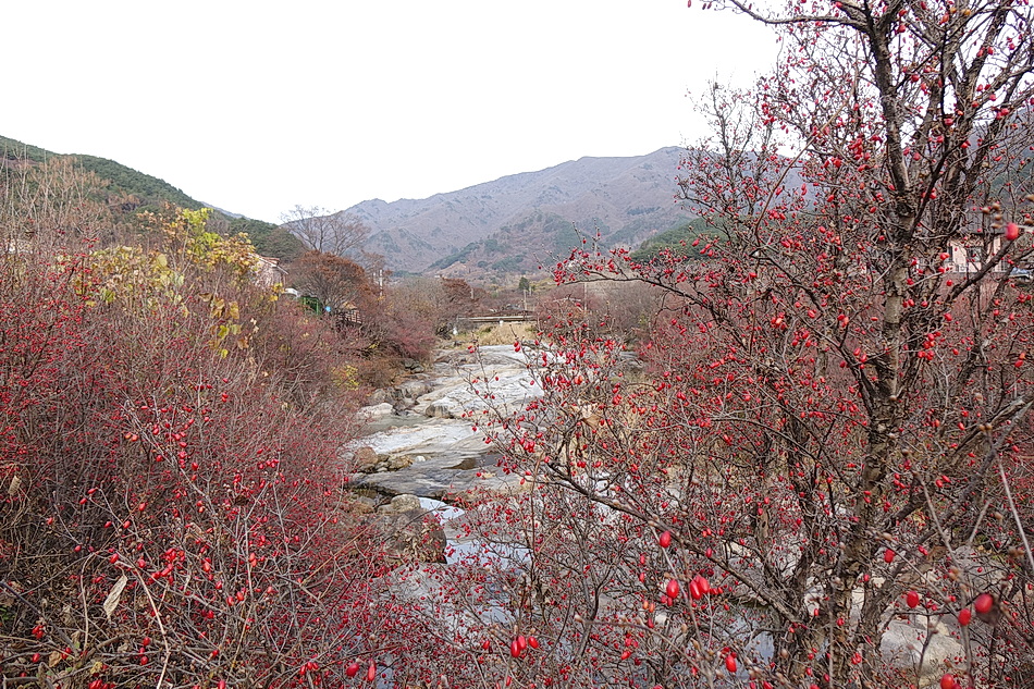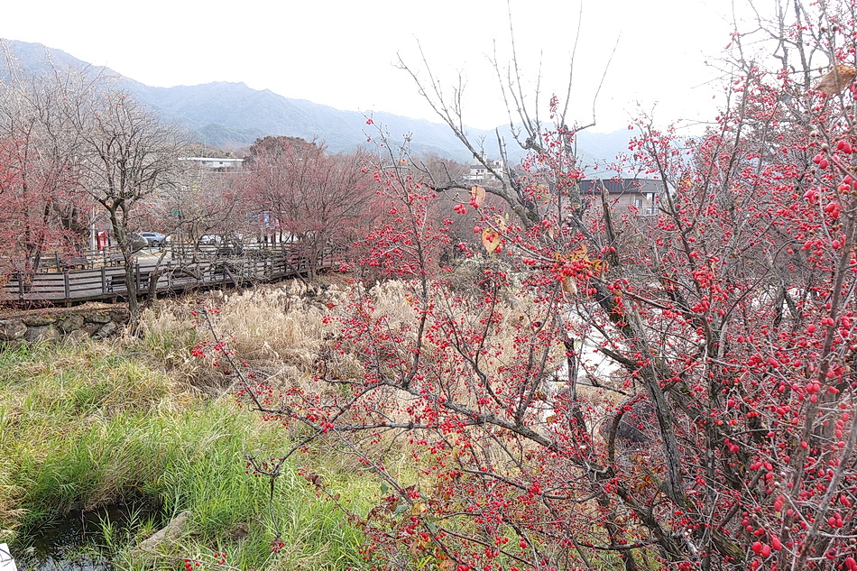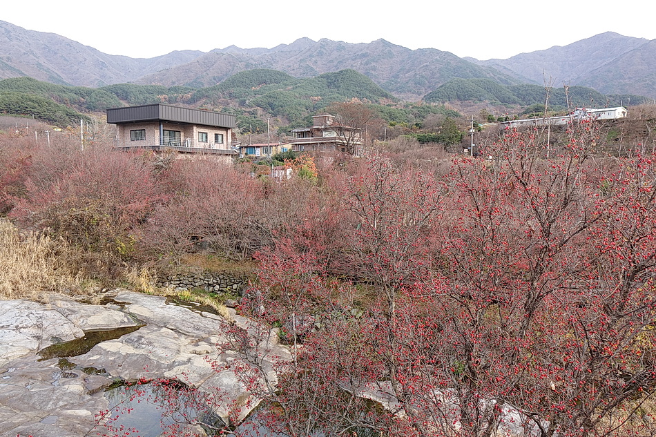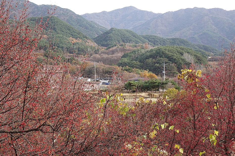 현천 마을을 산책 후에 대음 마을과 반곡 마을에 가보니 여기에도산수유 꽃담길인 산책로를 따라 붉은 산슈유 열매들이 가득하였다.