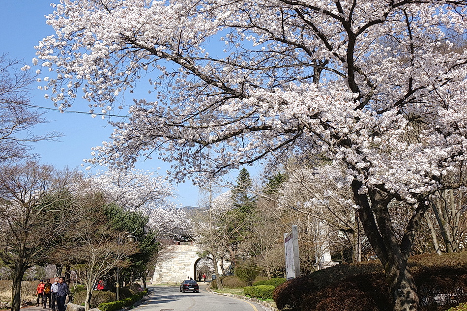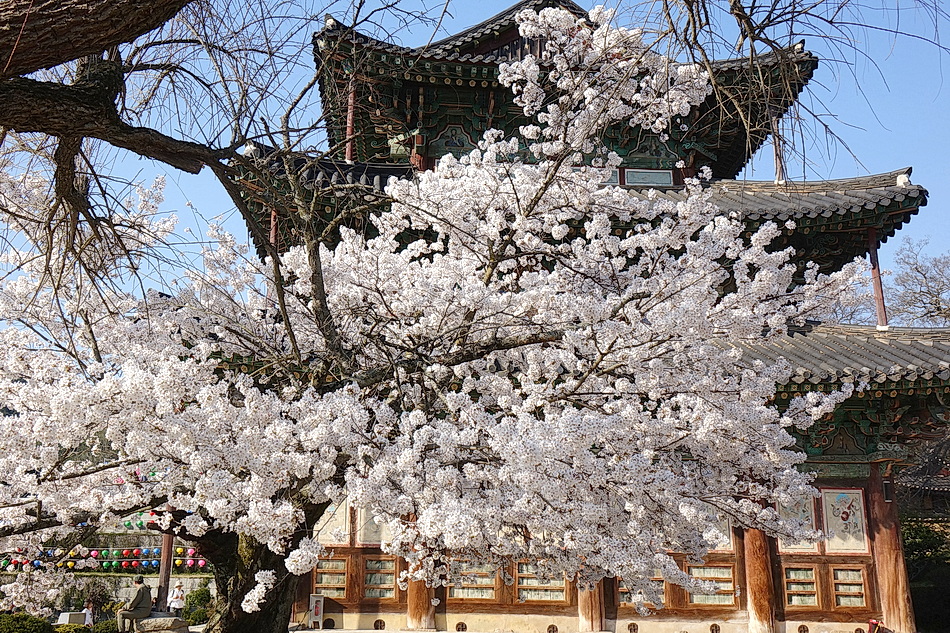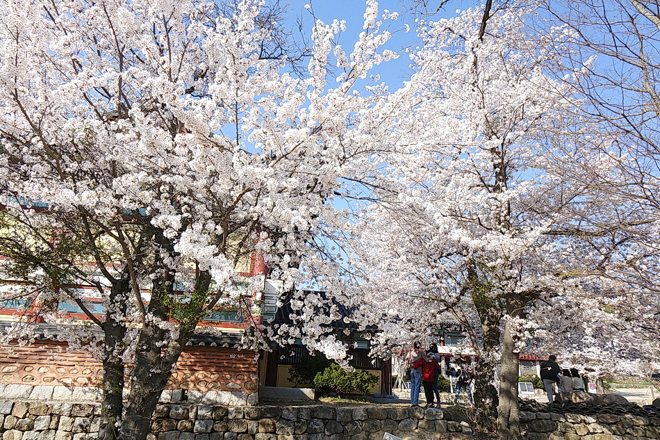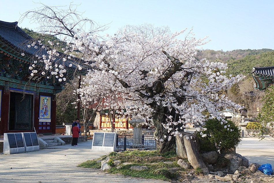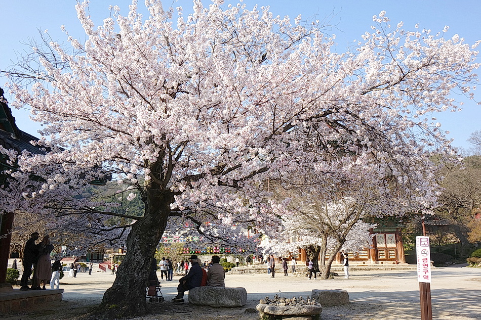 본래는 보성강과 섬진강의 벚꽃 길들을 드라이브할 목적으로 석곡을 경유해 보성강을 따라 섬진강의 압록에 도착해 보니 섬진강가의 벚꽃들이 이미 절정을 지나 꽃비를 내리고 있었고 꽃잎들은 갈색으로 변해 있었다. 그래서 목적지를 급히 금산사로 변경하여 도착해 보니 금산사의 벚꽃들은 수량이 많지 않지만 경내의 3그루의 분재 같은 고목의 벚꽃들은 멋지게 만개해 있었다. 벚꽃이 작년보다 약 7일 빨리 피었다.